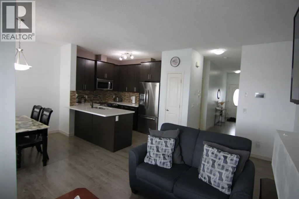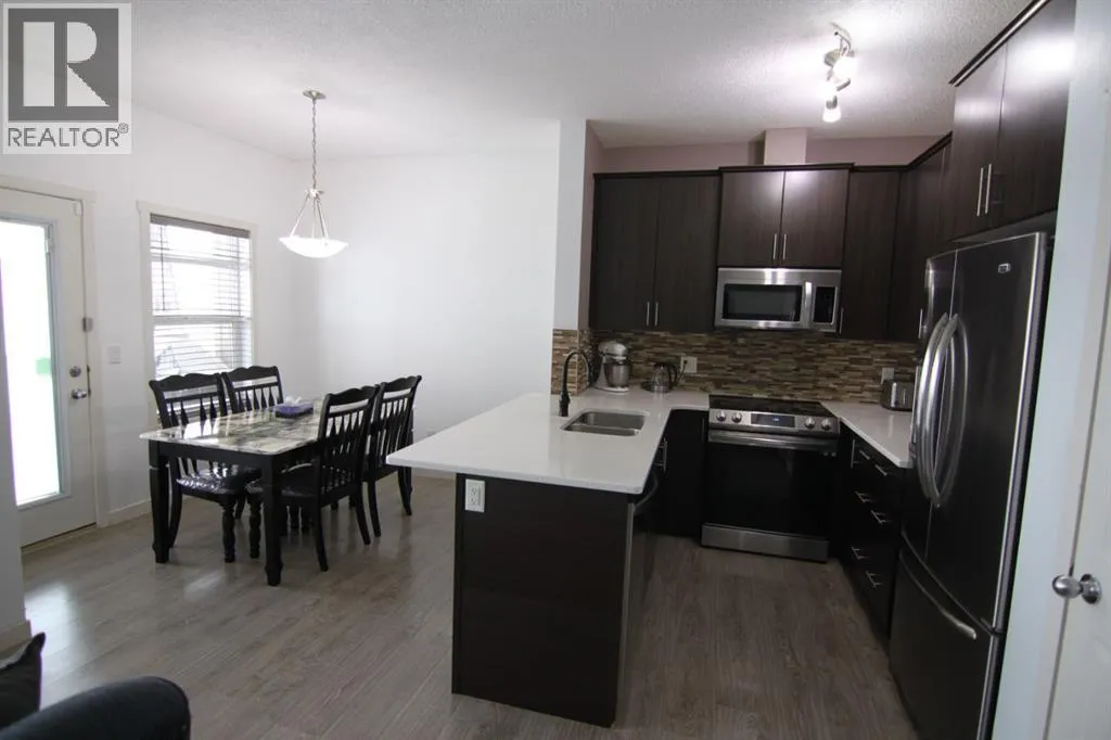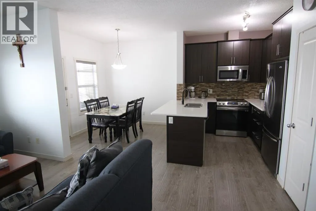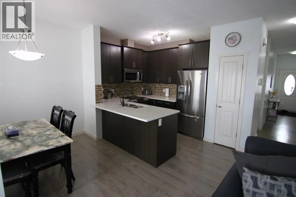 Experience the perfect blend of tranquility and modern design in this impeccably maintained townhouse, uniquely positioned with no neighbours behind for ultimate privacy. The open-concept main floor exudes sophistication, featuring gleaming hardwood floors and a gourmet kitchen equipped with premium quartz countertops, designer cabinetry, and a high-end stainless steel appliance package. Whether hosting in the spacious dining area or relaxing by the tile-faced fireplace, every corner of this home reflects thoughtful craftsmanship. Upstairs, the primary suite serves as a serene retreat, complemented by two versatile bedrooms and a full 4-piece bath. With an attached garage and an unspoiled basement ready for your bespoke touch, this residence offers an elevated lifestyle in the heart of one of Calgaryâs most desirable SE communities. Close to school, shopping, public transportation, playground and so on. (id:27476)
