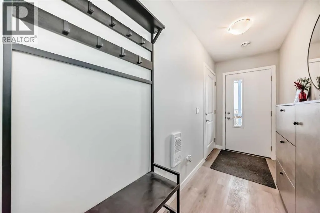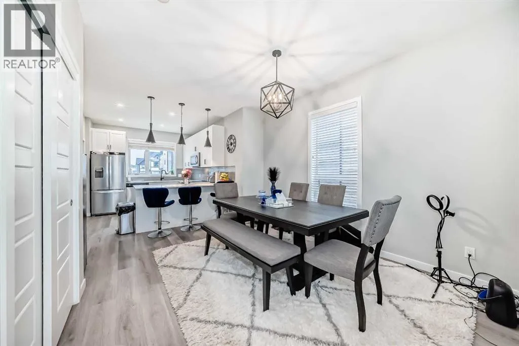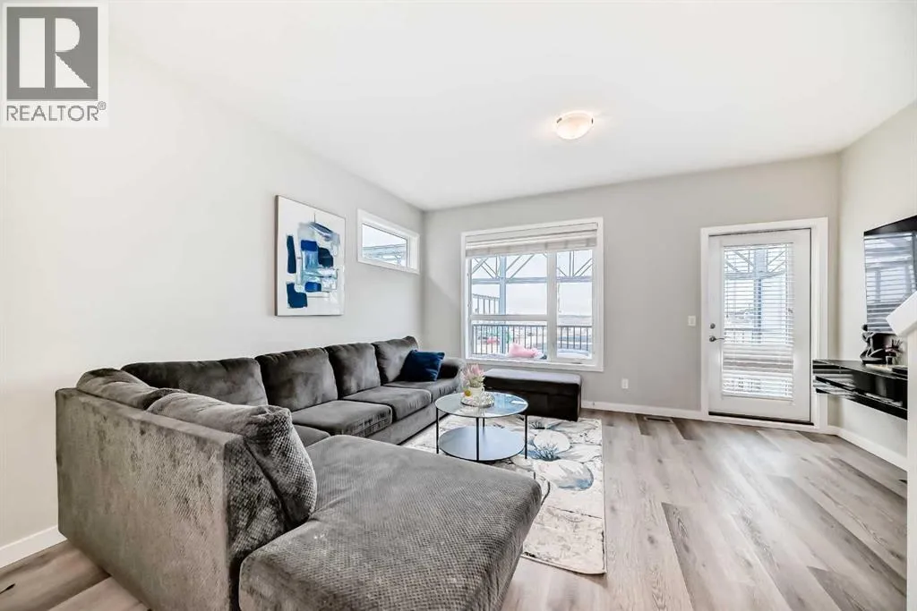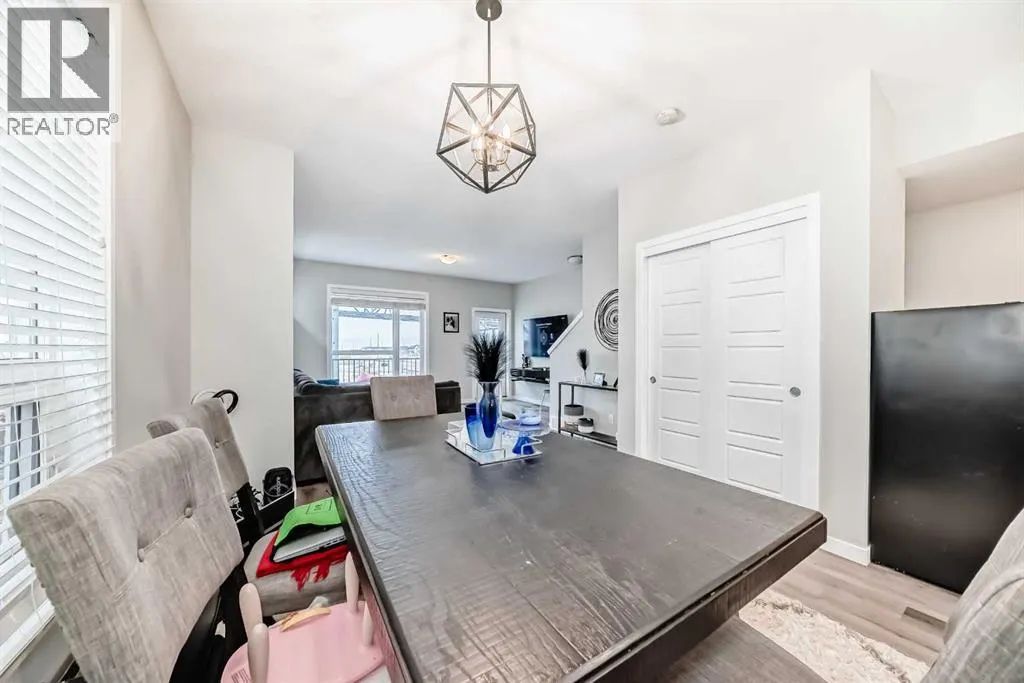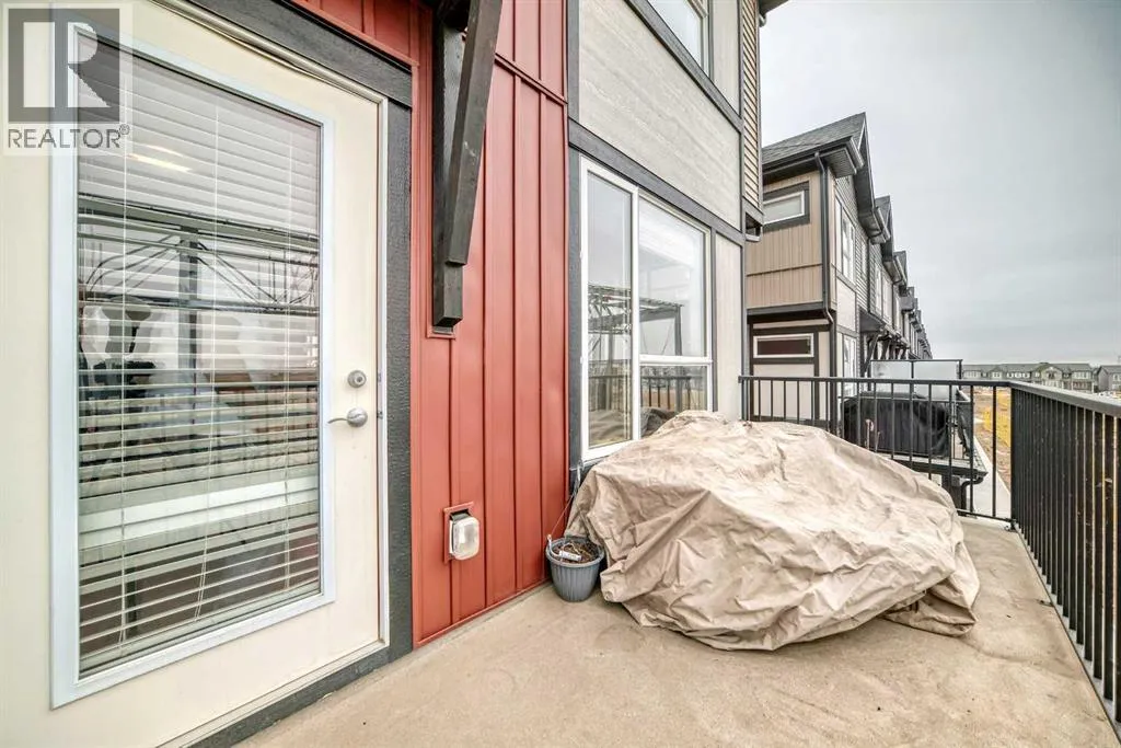Welcome to elevated townhome living in Belmont. This beautifully upgraded 3-bedroom, 2.5-bath home offers 1511.8 sq. ft. of thoughtfully designed space with 9â ceilings on the main level and 8â ceilings upstairs, creating a bright, airy feel throughout. The main floor features an open-concept layout ideal for everyday living and entertaining. At the heart of the home is a chef-inspired U-shaped kitchen with exceptional counter space and storage, highlighted by a striking waterfall-edge island, upgraded sink, and under-cabinet lighting for added style and function. A dedicated breakfast bar adds flexibility for casual meals and hosting. The spacious great room flows seamlessly into the dining area, while roller shades and upgraded window coverings (including the balcony door) provide a polished, modern finish. Step out to the upper-level balcony, perfect for morning coffee or winding down in the evening. Upstairs, the primary suite offers a well-appointed ensuite. Two additional bedrooms provide excellent flexibility for family, guests, or a home office, and the upper-floor laundry completes the level.Additional upgrades include a bold black lighting package, elevated hardware and fixtures, and cohesive designer finishes throughout. A standout feature is the oversized tandem attached garage (11.3â x 38.1â)âideal for parking, storage, a workshop, or hobby space.Enjoy a convenient location close to parks, pathways, shopping, dining, and major routesâplus walking distance to the new City Field House currently being built in Belmont. Move-in ready and loaded with upgradesâthis is a standout opportunity for modern, low-maintenance living. (id:27476)