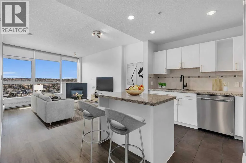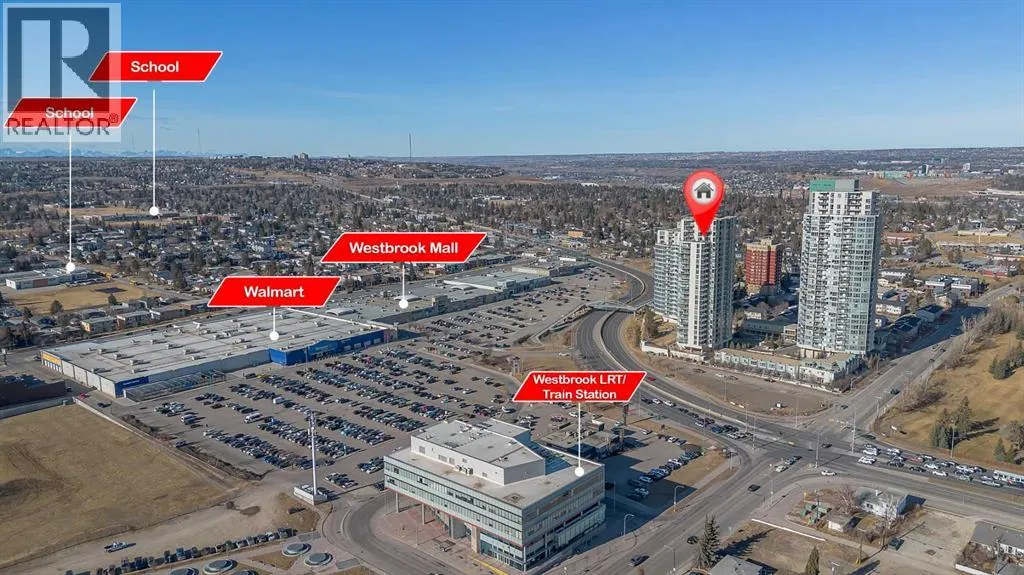 Perched on the 20th floor, this bright and well laid out 2 bedroom, 2 bathroom condo offers the kind of experience that truly sets it apart. Prepare to enjoy mountain views, along with an abundance of natural light pouring in through the bright generous windows. The open concept layout is both practical and inviting, perfect for everyday living and effortless hosting. Step inside to enjoy a home thatâs been beautifully renovated. Sleek new LVP flooring spans the living and bedroom areas, refreshed cabinetry with modern hardware brightens the kitchen, and granite countertops paired with updated appliances complete the move-in ready space.The living room features a corner gas fireplace that adds warmth and character, while central air conditioning keeps the space comfortable year round. The bedrooms are thoughtfully positioned, making this layout ideal for professionals, small families, roommates, or those working from home. Step outside to your balcony and take in the open sky and endless views. This well managed complex offers exceptional amenities that add real value to everyday living, including an indoor pool and hot tub, a fully equipped fitness centre, games room, party rooms, on site management, and full time security for peace of mind. The unit also comes with one titled parking stall, assigned storage, and secure visitor parking on the first level of the parkade, offering convenience for both you and your guests. Location truly elevates the experience. The Westbrook LRT station is less than a block away, making commuting downtown simple and quick. Walmart, Safeway, restaurants, and other amenities are directly across the street, giving you true walkable access to daily essentials. If you are looking for comfort, convenience, and incredible views in a prime location, this home checks all the boxes! Welcome Home. (id:27476)