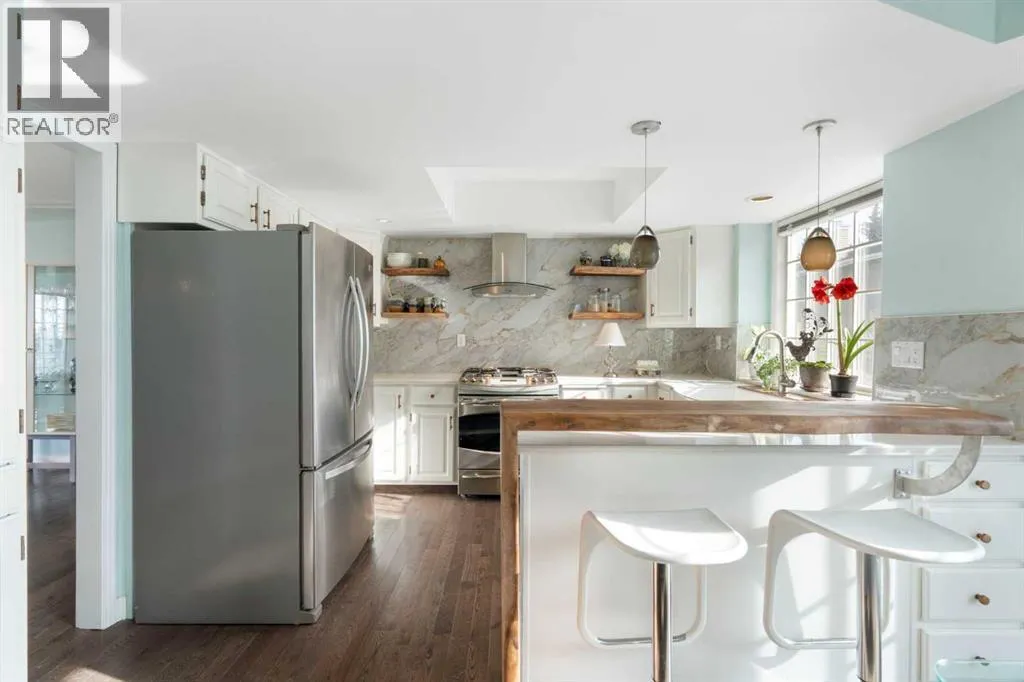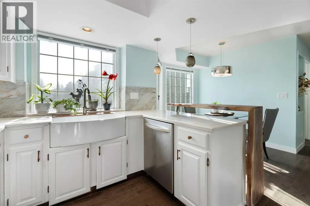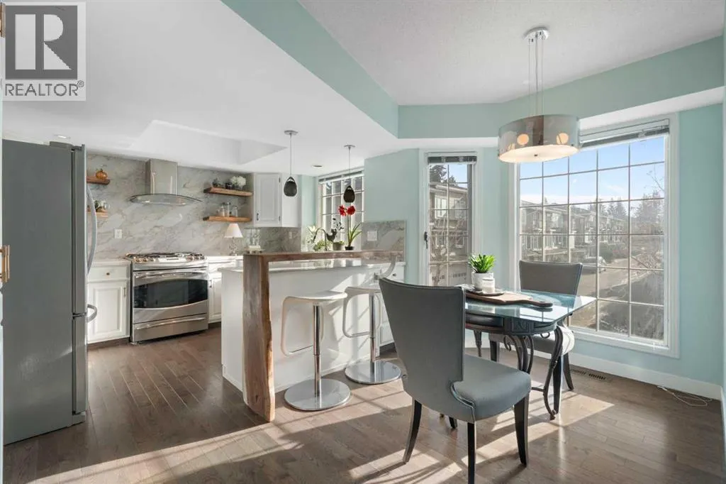 Welcome to Landmark Estates â an address that is in the heart of Calgaryâs NW.This rare three-bedroom residence offers over 1,836 square feet above grade, complemented by a fully finished lower level â a scale of living that feels expansive and increasingly rare at this price point. From the moment you step inside, the sense of space is immediate. Generous principal rooms, balanced proportions, and natural south-facing light create an atmosphere that feels both uplifting and inviting.The main floor flows effortlessly between living and dining spaces, ideal for both quiet evenings and larger gatherings. Expansive windows fill the home with natural light, creating an open yet inviting atmosphere. Upstairs, three true bedrooms offer rare flexibility and privacy. The spacious primary suite includes its own ensuite and generous closet space, while the additional bedrooms adapt easily for family, guests, or a home office.The finished lower level expands your lifestyle possibilities â a media lounge, fitness studio, creative workspace, or quiet escape â adapting as your needs evolve.There is an attached garage and manageable condo fees of $600 per month support effortless ownership within a well-maintained community.Just moments from the University of Calgary, Market Mall, University District, Foothills Hospital and major transit routes. This location offers enduring value in one of Calgaryâs most respected neighbourhoods. This is a home that delivers substance with style. (id:27476)