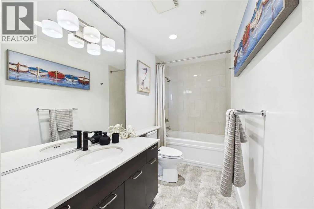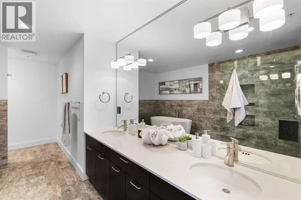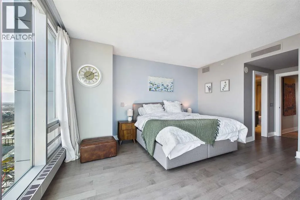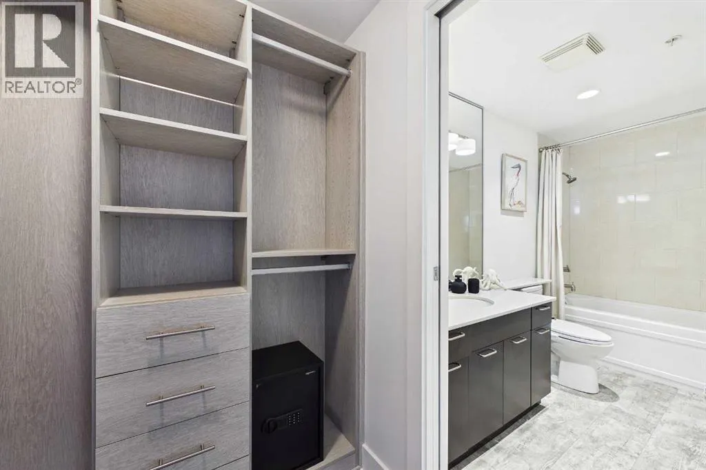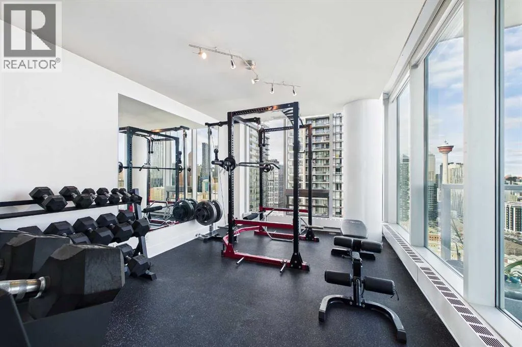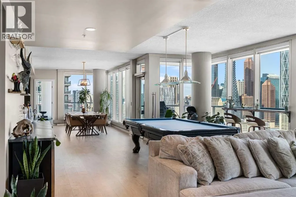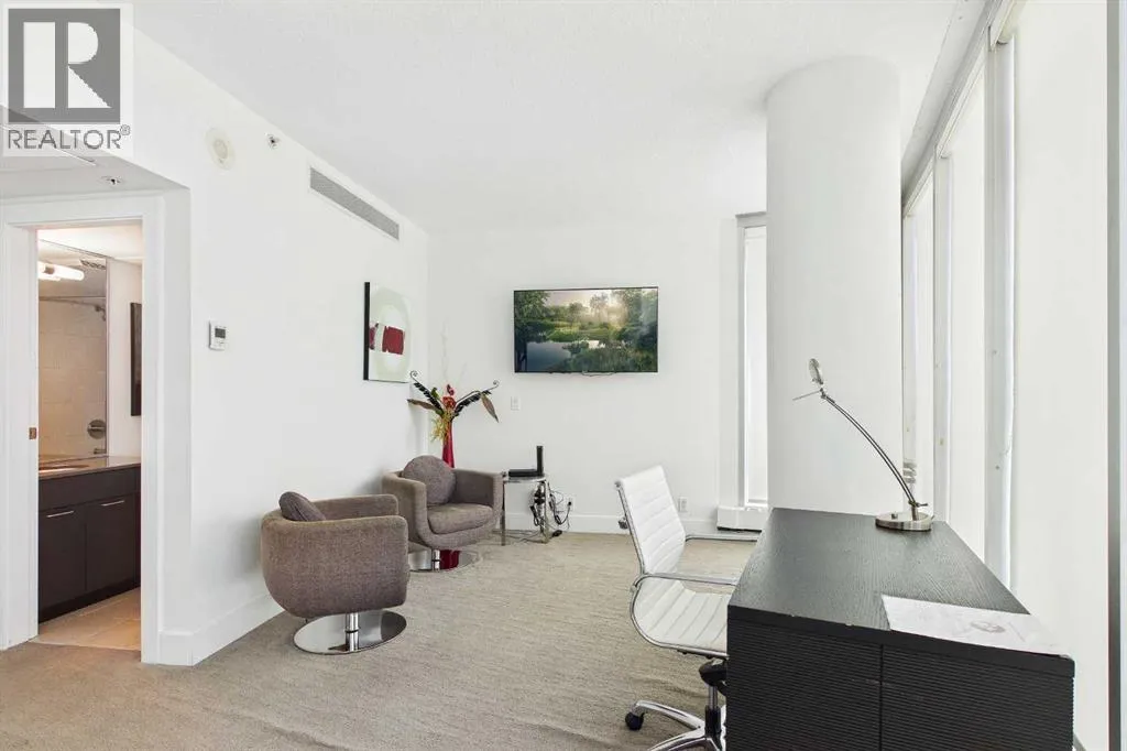 Your day begins with the soft glow of the morning sun spilling through floor-to-ceiling windows, offering panoramic views of downtown Calgary from every room. After a workout in your private home gym, you enjoy breakfast at the leathered granite counter perfectly positioned by the window to take in the city skyline. This 2,600+ sq ft sanctuary is a masterclass in executive hosting; as evening nears, the gentle trickle of the custom stone waterfall sets the mood while you select a vintage from your full-size, dual-zone wine fridge. Whether you are preparing drinks at the sophisticated leathered granite dry bar or a gourmet meal using the suite's high-end appliances, the space flows effortlessly for any occasion. The layout offers unmatched privacy with two spacious primary bedrooms, each featuring its own ensuiteâincluding a lavish 5-piece spa retreat in the main suite. When youâre ready to head out, your private elevator opens directly into your suite, whisking you down to the vibrant pulse of the Beltline. You are perfectly positioned in the new Entertainment District, just steps from the new Calgary Flames arena, Stampede grounds, and river pathways. Living at the Arriva means effortless luxury, supported by 24-hour security and concierge services, a rooftop garden, ownerâs lounge, guest suites, and central A/Câall complemented by modern updates including a new washer and ventless dryer. (id:27476)