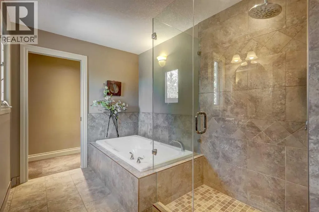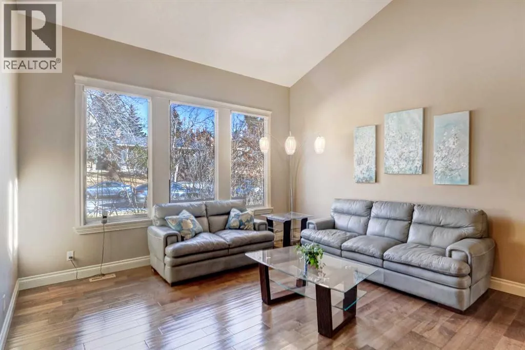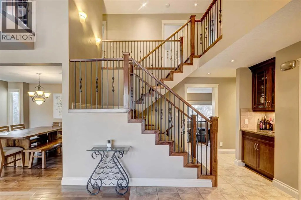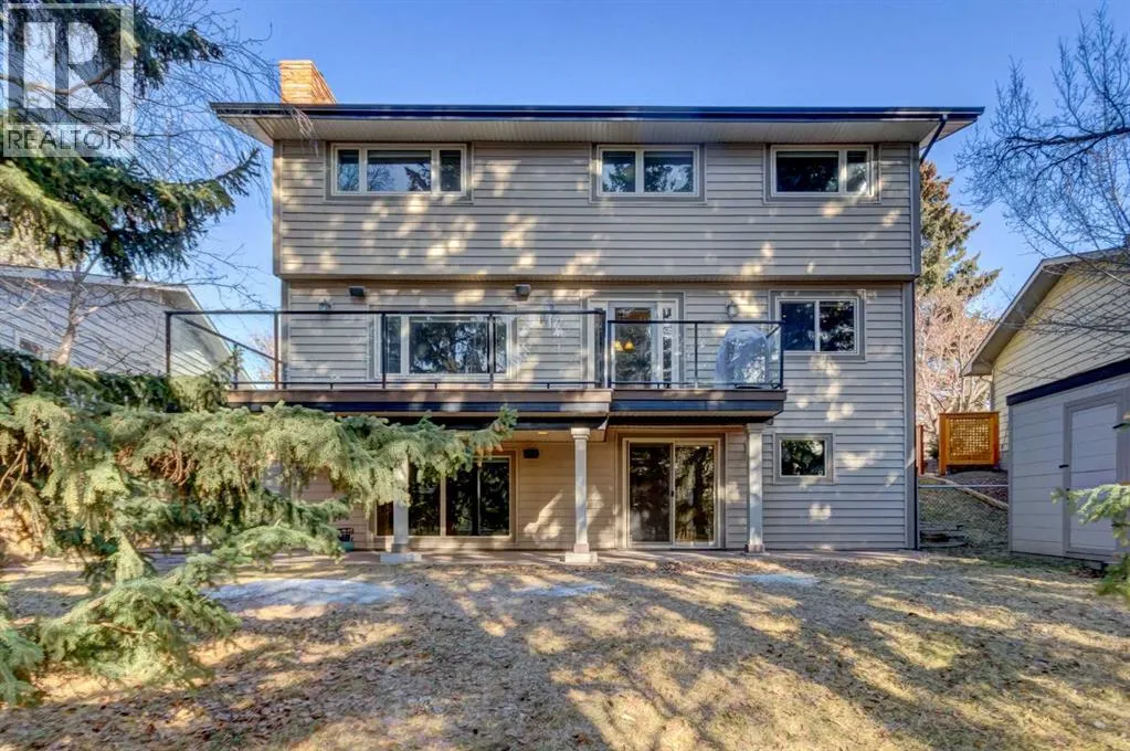 Welcome to this Fully RENOVATED Estate Home(by previous owner) with VAULTED HIGH ceiling, close to 3500 sqfeet living area and a WALKOUT Basement offers 4 bedrooms, 4 bathrooms, and a Private South-Facing backyard. Exceptional craftsmanship and thoughtful upgrades define this beautiful estate home, ideally situated in a quiet, park-like setting. Stunning curb appeal welcomes you with mature trees, lush landscaping, and a charming front patio enhanced with outdoor speakers creating an inviting first impression. Inside, soaring vaulted ceilings and rich hardwood flooring elevate the elegant formal living and dining areas. The renovated kitchen is both stylish and functional, featuring full-height cabinetry, granite countertops, undermount sink , Garburator and stainless steel appliances including NEW washer/dryer, NEW dishwasher, NEW microwave and cooktop(2024). The bright breakfast nook opens onto a spacious deck and overlooks the sunken family room, complete with custom built-ins, a dramatic stone fireplace, and integrated sound system. Upstairs, hardwood flooring continues through the hallway and versatile loft with built-in workspace. Three generously sized bedrooms include a luxurious primary retreat offering heated floor in spa-inspired ensuite, a jetted jacuzzi tub, oversized glass shower, dual vanities, and a large walk-in closet. The additional bedrooms feature custom built-in desks and storage, sharing a well-appointed 5-piece bathroom. The fully finished walkout basement expands your living space with a fourth bedroom, full bathroom, spacious recreation area with a second fireplace, open games area, and a bar ideal for entertaining. A built-in sound system extends throughout the main floor, basement, backyard, and front patio for seamless indoor-outdoor enjoyment. This home is equipped with two furnaces, dual central air conditioning units, a central vacuum system, and quality finishes throughout for year-round comfort and efficiency. Step outside to the ex tremely private, south-facing backyard, fully fenced and surrounded by mature trees complete with a maintenance-free deck and large covered patio, perfect for relaxing or hosting gatherings. The backyard has a large Built in garden shed with sloped asphalt shingle roof to store and organize gardening tools and materials. oversized double attached garage, with plenty installed tool hangers and cabinet completes the package. Located just minutes from schools, shopping, restaurants, major roadways, and the expansive pathways of Nose Hill Park. Also steps to a large off-leash park and a short walk to John Laurie Park featuring tennis courts and seasonal outdoor skating. A rare opportunity to own a truly turnkey estate home offering luxury, privacy, and exceptional functionality. (id:27476)