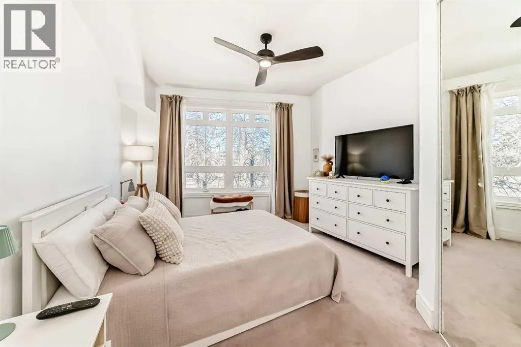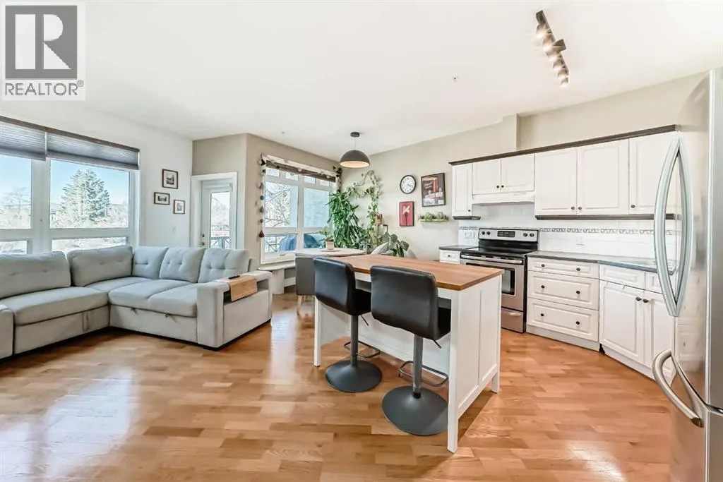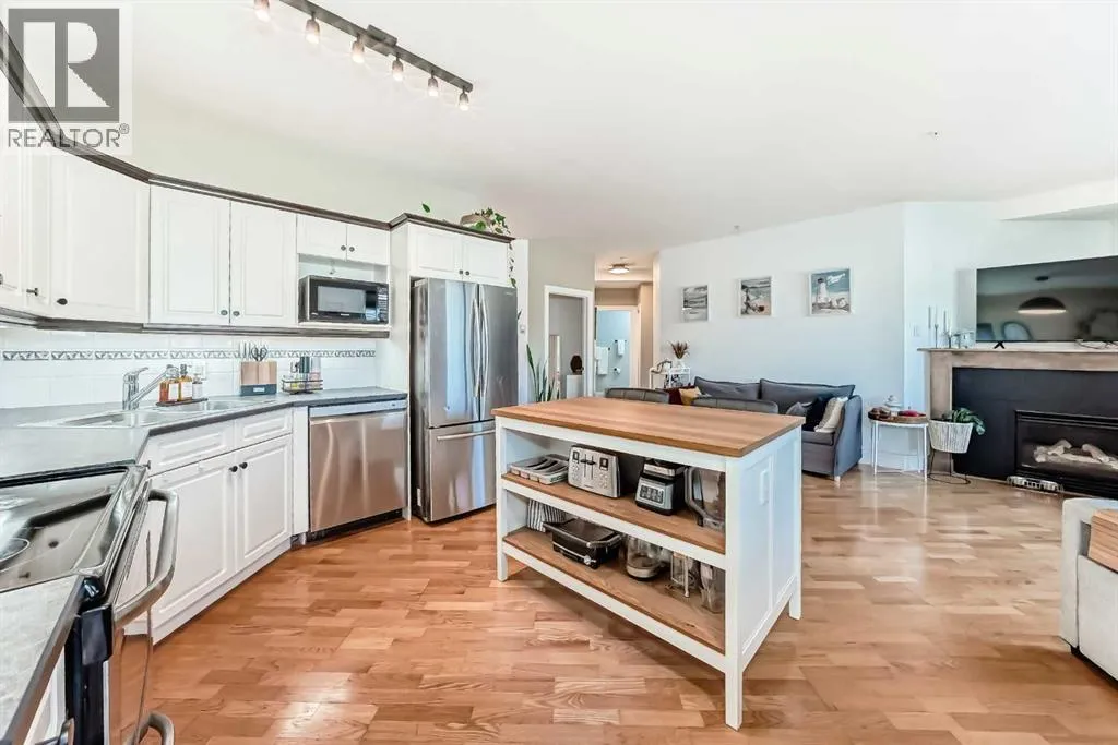 Welcome to Kensington Mews I, where refined urban living meets one of Calgaryâs most dynamic and walkable communities. Ideally located on sought-after 14 Street NW, this beautifully maintained second-floor condo offers 909 sq ft with two bedrooms and one updated bathroom (2026). Floor-to-ceiling west-facing windows flood the open-concept kitchen, dining, and living space with natural light, Stainless Steel appliances, new dishwasher (2025) while the central island and cozy gas fireplace create a warm, inviting atmosphere. Step onto the sunny west-facing balcony with gas hookup to enjoy evening sunsets and effortless summer entertaining. The spacious and bright primary bedroom easily accommodates a king-sized bed, while the versatile second bedroom is ideal for a nursery, office, or creative studio. An oversized front storage room with pantry potential, full-sized washer (2024) and dryer, titled heated underground parking, and a separate assigned storage locker provide exceptional everyday convenience. Living in Kensington means embracing a truly connected lifestyleâmorning coffee at one of the many independent cafés, grocery shopping just steps from your door (many with underground parking), and quick access to downtown whether you choose to walk, bike, or commute with ease. Spend summers floating down the Bow River, fishing along the nearby riverbanks, exploring the Bow River pathway system, or enjoying the neighbourhoodâs vibrant festivals and seasonal events. Surrounded by boutique shopping, acclaimed restaurants, parks, and direct access to Memorial Drive, 14 Street NW, and the downtown core, this residence offers the perfect balance of private retreat and urban energy in one of Calgaryâs most sought-after locations... (id:27476)