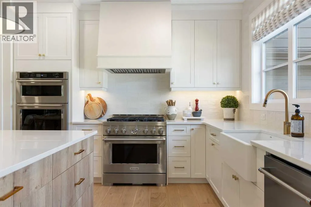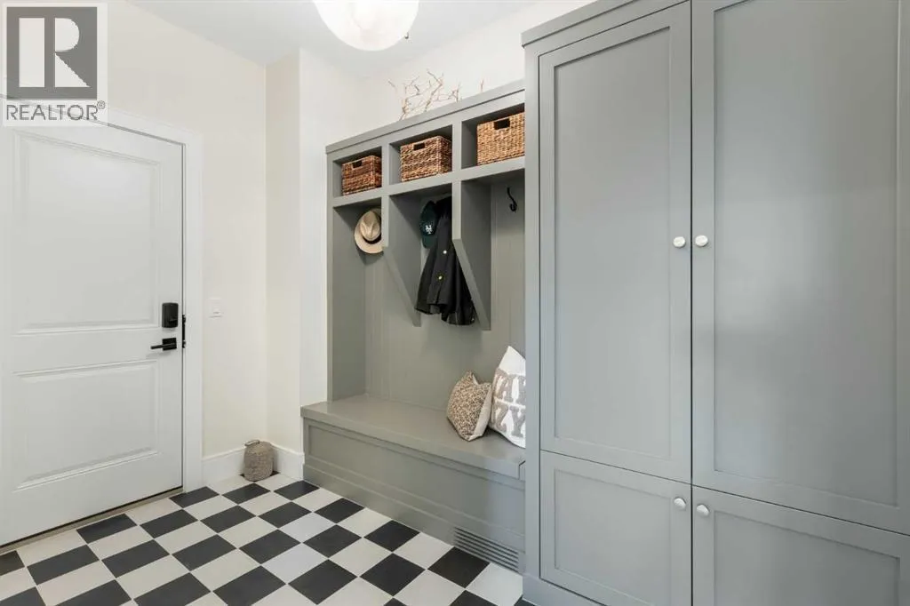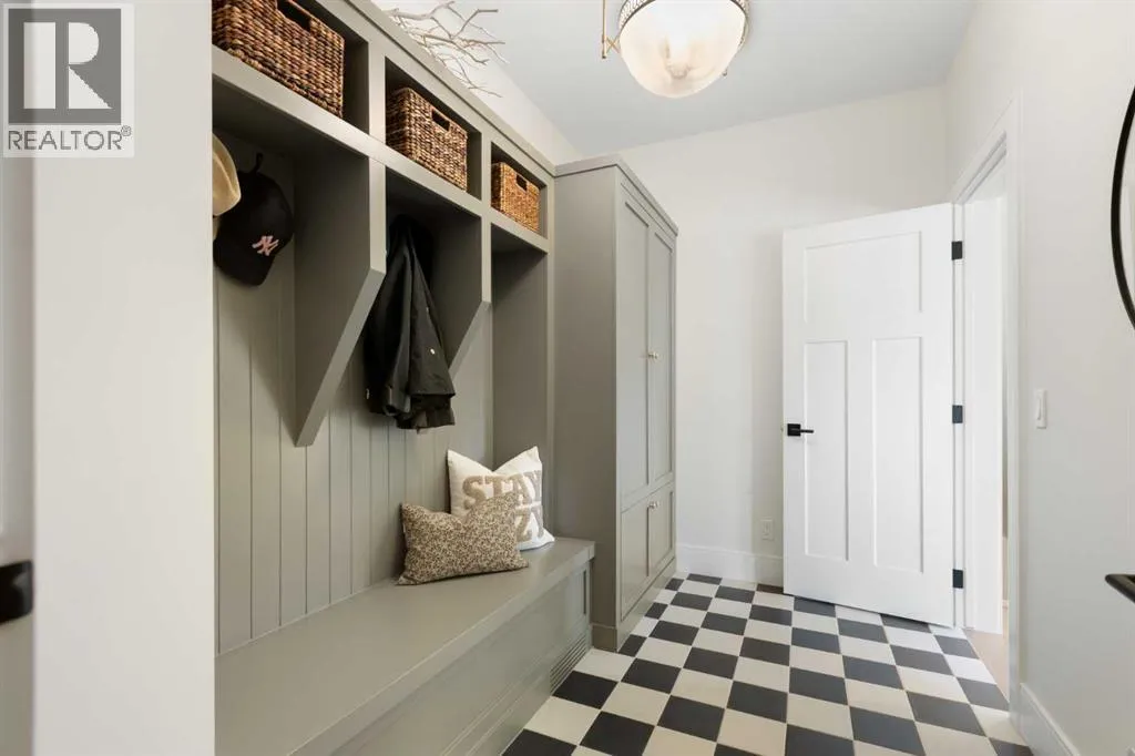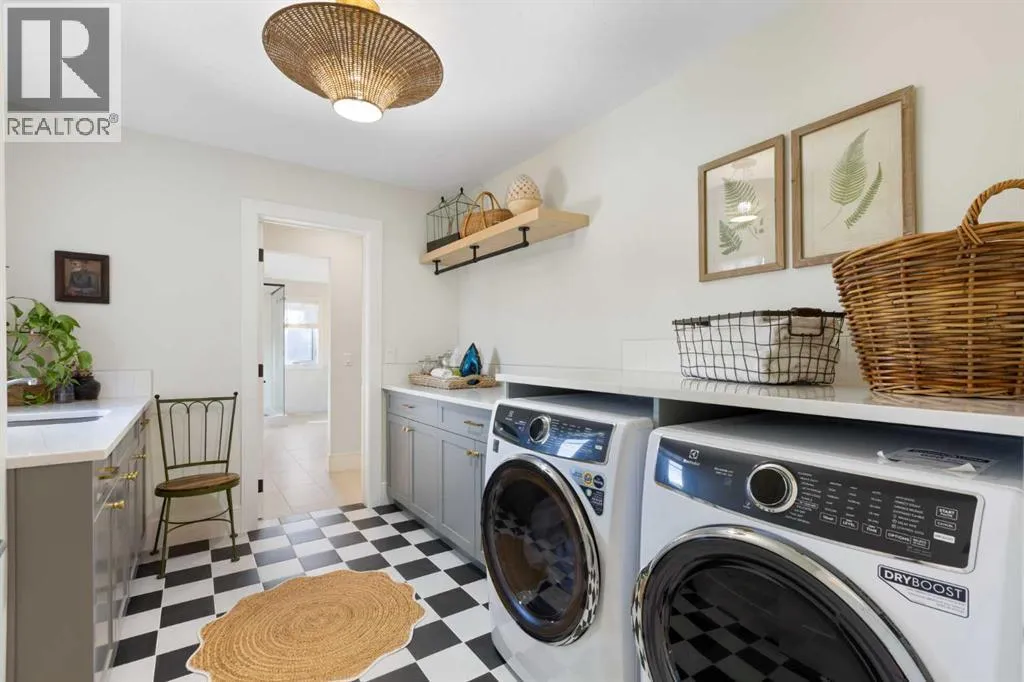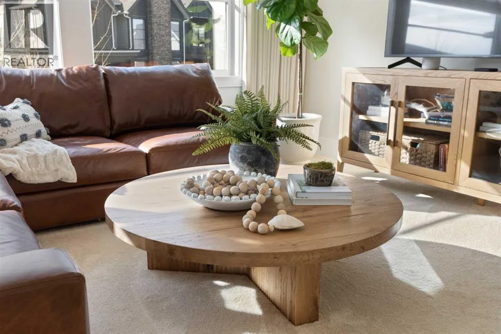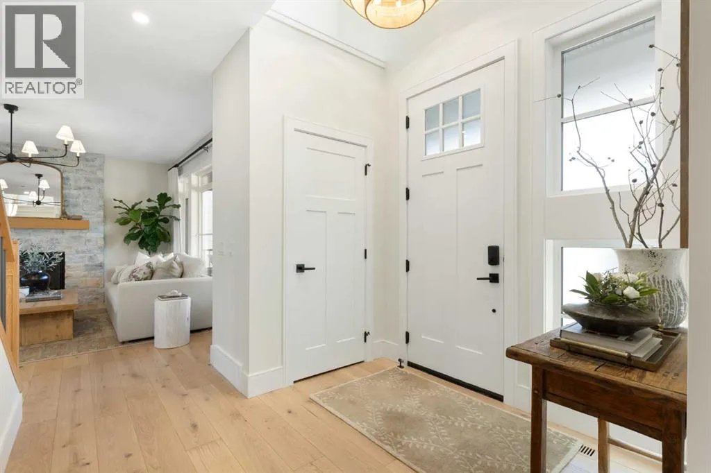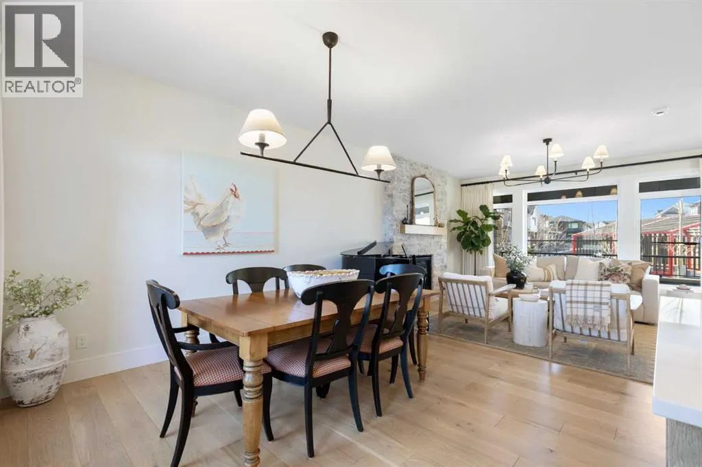 Welcome to this exceptional executive family home, perfectly positioned on one of the premier wide lots in the vibrant and thoughtfully designed community of Alpine Park, facing directly onto Orchard Green, a beautiful park featuring fruit trees, open play spaces, a community garden, and a Harvest Table for gatherings and picnics, offering a rare combination of privacy, scenery, and lifestyle. Set on an impressive 60 ft wide lot, the property enjoys peaceful park views from the front deck, living room, family room, and primary bedroom, with mature trees providing natural privacy, and offers over 3,600 sq ft of developed living space across three levels, showcasing outstanding craftsmanship and upgrades throughout while presenting like a builderâs showhome with the warmth and functionality of a true family home. Upon entry, you are immediately struck by the attention to detail and thoughtful design, with a bright main floor living room featuring large south-facing windows and a stunning floor-to-ceiling stone gas fireplace, flowing seamlessly into the heart of the home, a beautifully appointed kitchen with crisp white cabinetry, large island, stainless steel appliances, built-in oven, expansive north-facing window, and walk-in pantry. The spacious dining area is ideal for hosting large gatherings and features sliding patio doors leading to the upper deck and landscaped, fenced yard, along with a shaded lower patio perfect for summer relaxation. A stylish two-piece powder room and generous home office with park views and private deck access provide both convenience and versatility, while a custom-designed mudroom with closet and bench with lift-up storage completes the main level. The second level is a private retreat featuring a spacious family room with large park-facing windows, a unique bridge leading to the primary suite with expansive south-facing windows and a sliding barn door into the luxurious ensuite with dual vanities, large walk-in shower with dual shower heads, and elegant soaker tub. The custom walk-in closet connects to a well-appointed laundry room with folding counter and built-in sink, while two additional generously sized bedrooms and a five-piece main bathroom complete this level. The fully developed basement offers excellent additional living space with a large rec room ideal for teens, guests, or movie nights, a fourth bedroom, and a four-piece bathroom, plus rough-in plumbing for a future wet bar and an oversized utility and storage area for exceptional organization. The double attached garage is oversized in height, allowing for the potential addition of a vehicle lift or extra storage. Facing directly onto parkland, this home offers a quiet, traffic-free setting where you can relax on the front deck, enjoy your favorite beverage, and watch children play, delivering the perfect balance of luxury, comfort, and community-focused living in one of Calgaryâs most exciting new neighbourhoods. (id:27476)