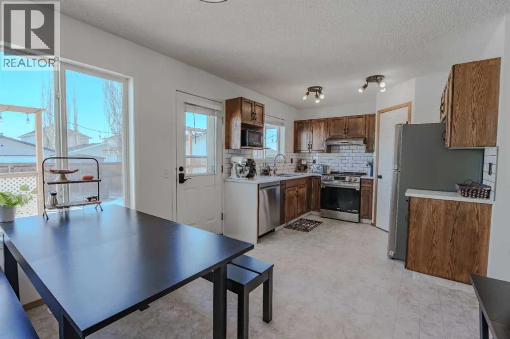 ** OPEN HOUSE Sat Mar 21 from 12:00-2:00pm and Sun Mar 22 from 2:00-4:00pm ** Welcome to this well maintained, fully developed two storey home in the sought after community of Bridlewood. Freshly painted throughout, this inviting property delivers comfort, functionality, and value with over 1,700 sq ft of thoughtfully designed living space, plus added peace of mind with a new roof and siding completed in 2023.Inside, you will find a practical layout featuring four bedrooms, 1.5 bathrooms, and convenient main floor laundry. The refreshed kitchen shines with new quartz countertops and stainless-steel appliances installed in 2024, along with a spacious separate dining area that is ideal for family meals or entertaining. Additional upgrades include updated door hardware throughout the main and upper levels in 2025.The west facing living room is bright and welcoming, filled with natural light. Upstairs, the generous primary bedroom includes a walk-in closet and is complemented by two additional large bedrooms and a 4-piece bath. The fully finished basement expands your living space with a versatile bedroom/office, a large family room, and excellent storage.Step outside to enjoy the spacious east facing backyard, featuring an extended deck, a large parking pad, and two storage sheds, including a new shed added in 2024.Located in Bridlewood, this home sits in a well-established neighborhood close to major roadways, public, private, and Catholic schools, shopping with Costco just a short drive away, dining, everyday amenities, and Spruce Meadows. This move-in-ready home is a fantastic opportunity in a family-friendly neighborhood. Donât miss your chanceâbook your showing today and come see all that this wonderful home has to offer! (id:27476)