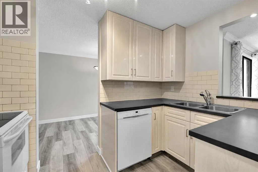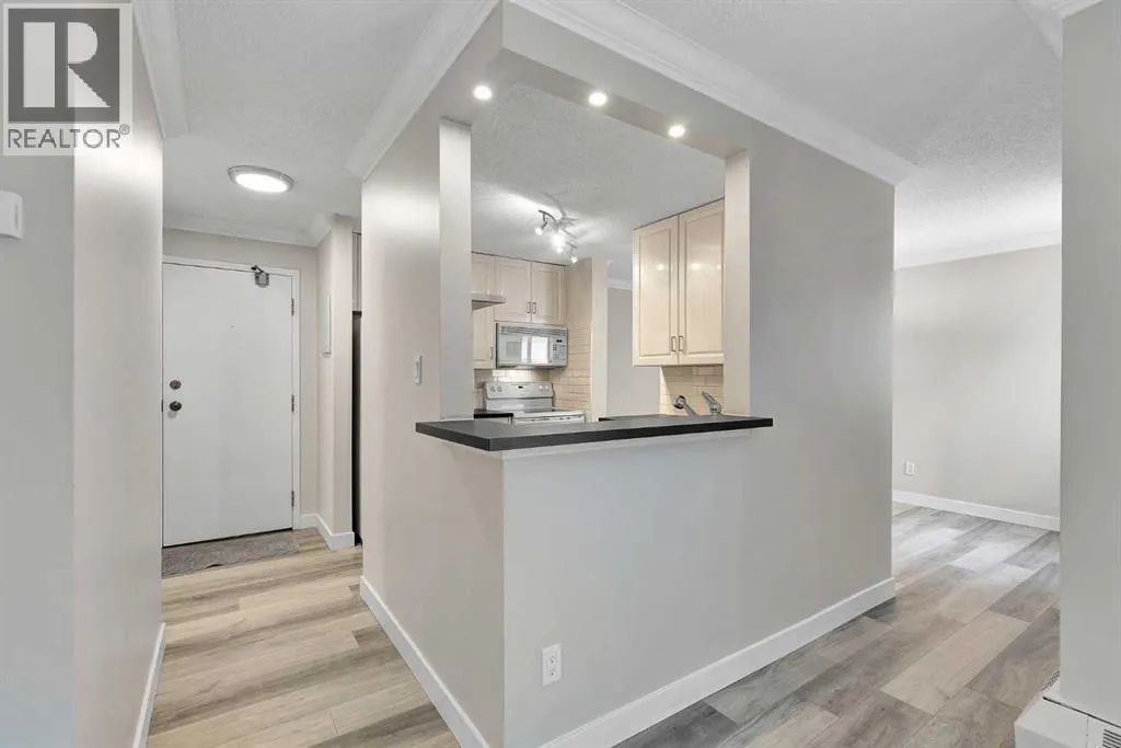Pristine apartment condo located in quiet adult -oriented building . This immaculate unit has been updated and extremely well taken care of . The perfect location within the building , set in the corner away from other units and offers a private balcony with views . This bright and inviting unit offers an open plan , updated kitchen and breakfast bar opening up to the main living room and offers a large separate dining room . The oversized primary bedroom has room for a king sized bed, armoire and additional furniture . There is a walk-in closet with cheater door to a fully renovated 3 piece bath . There is in suite laundry ( stackable unit ) and additional storage within this well laid out floor plan . There is underground parking in the secured garage with one of the largest stalls in the building . Stall # 60 is conveniently located 3 floors below using the stairs and you are at your vehicle (id:27476)