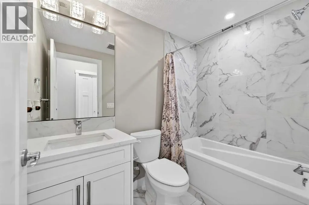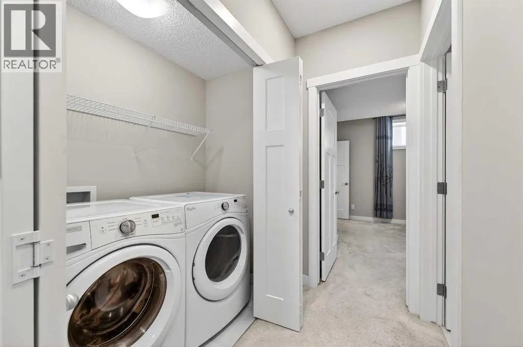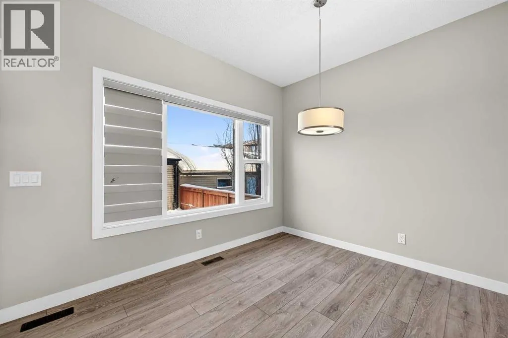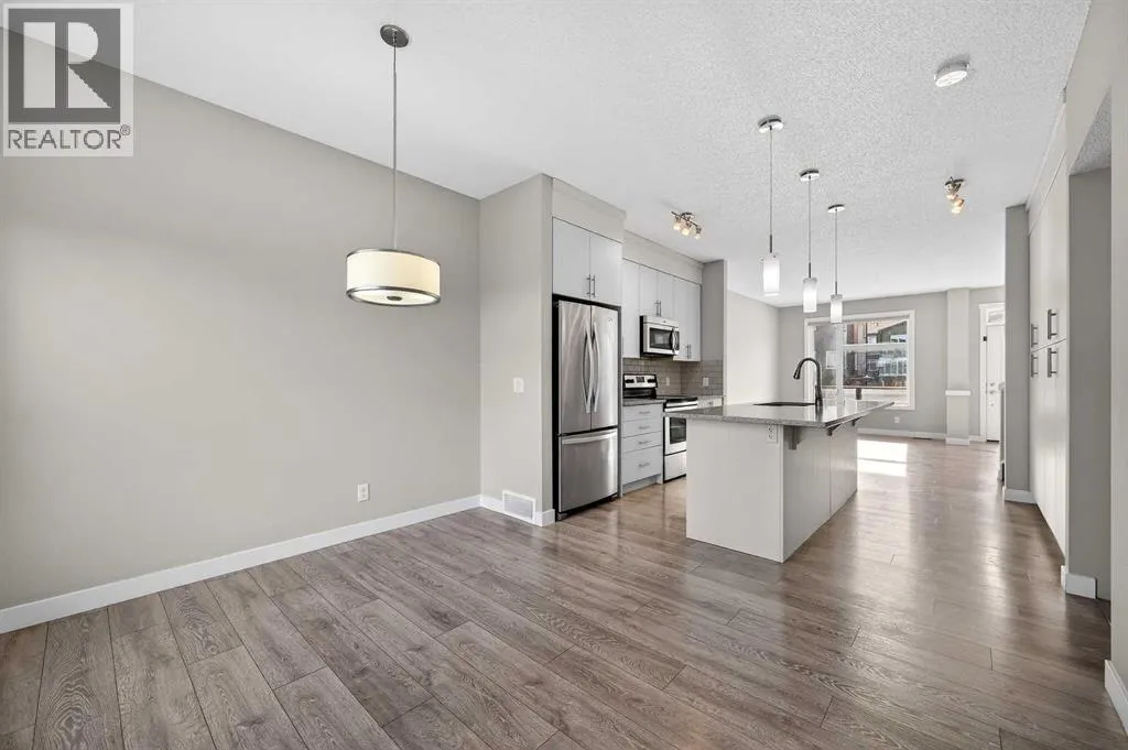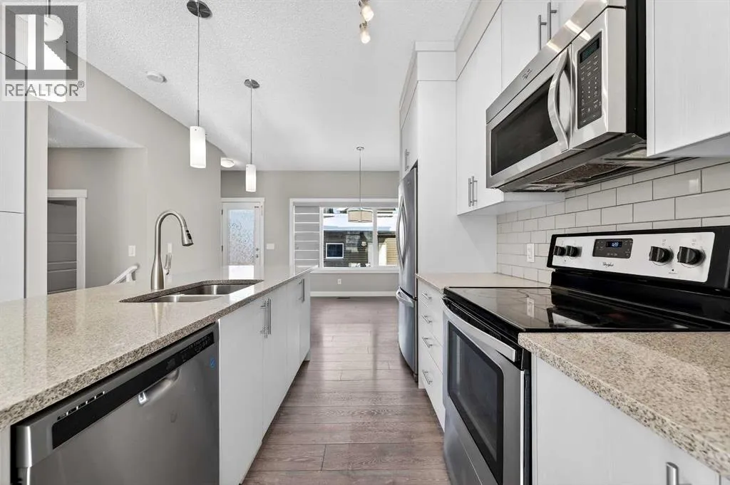 Beautifully designed 4 bedroom home offering over 2,000 sq. ft. of fully developed living space. With three bedrooms upstairs and one in the fully finished lower level, this thoughtfully laid out property combines modern finishes with functional design, perfect for families or those seeking flexible living space. A welcoming foyer opens to a bright, open concept main floor featuring 9 foot ceilings and luxury vinyl plank flooring. The stylish kitchen showcases an extended island, stainless steel appliance package, soft close cabinetry, and ample counter and cupboard space, ideal for everyday living and entertaining. Just off the dining nook, you will find access to the private back deck and fenced backyard, creating seamless indoor outdoor flow. A convenient 2 piece powder room completes the main level, along with access to the extra wide double detached garage. The fully developed lower level also features 9 foot ceilings and includes a spacious media or recreation room, versatile flex space perfect for a home office or gym, a large fourth bedroom with generous closet space, a 4 piece bathroom, and a dedicated laundry area with washer and dryer included. Upstairs, soaring ceilings and abundant natural light enhance the space. The primary suite offers a vaulted ceiling, large windows, a 4 piece ensuite, and an impressive walk in closet. Two additional bedrooms and another 4 piece bathroom complete the upper level. Adding to the homeâs charm, a lovely front deck welcomes you as you walk up the front stairs, the perfect place to enjoy your morning coffee. Ideally located close to some of Calgaryâs top rated schools, parks, pathways, shopping, dining, and everyday amenities, this home offers the perfect balance of lifestyle and convenience. Thoughtfully finished across all three levels, it delivers space, style, and functionality in an exceptional setting. (id:27476)