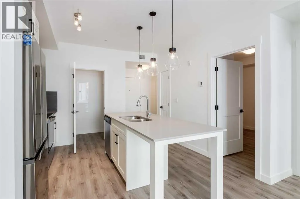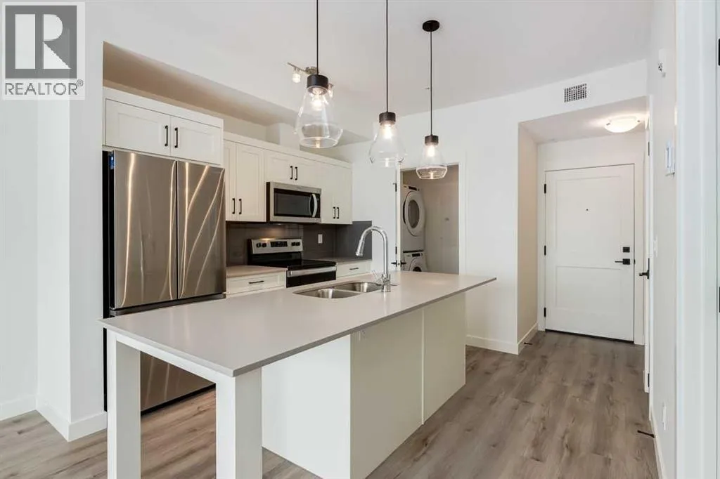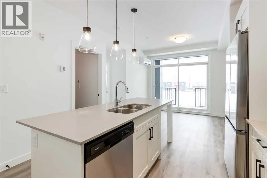 Welcome to this beautifully upgraded 2-bedroom, 1-bathroom main-floor unit in the sought-after community of Seton, located in the Seton West complex. Featuring 9â ceilings, luxury vinyl plank flooring, and a bright open-concept layout, this home offers modern comfort and effortless living. The contemporary kitchen showcases quartz countertops, stainless steel appliances, and a large island with built-in dining. Oversized patio doors lead to your private, full-width east-facing patio overlooking greenspace â complete with a gas BBQ hookup and convenient ground-floor access. Two well-sized bedrooms, a pristine 4-piece bath, walk-in laundry with custom cabinetry, pantry storage, titled underground parking, and a separate storage locker add everyday functionality. Enjoy unbeatable walkability to shopping, dining, schools, South Health Campus, and the YMCA Calgary - Brookfield Residential YMCA at Seton, with quick access to Deerfoot Trail and Stoney Trail. Perfect for first-time buyers, downsizers, or investors â move-in ready and not to be missed! (id:27476)