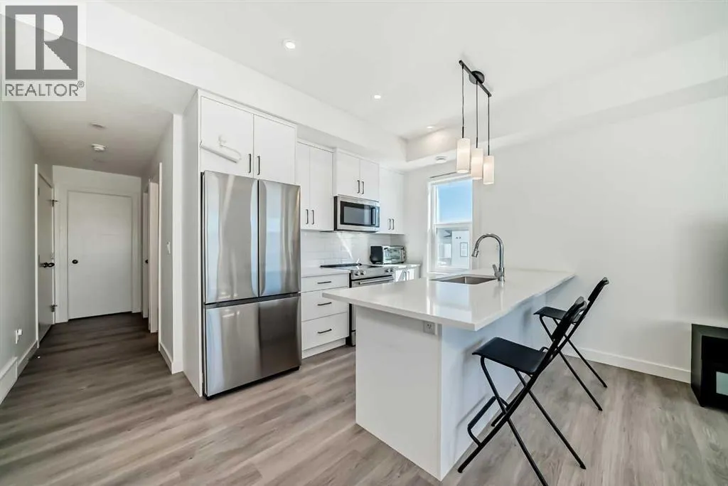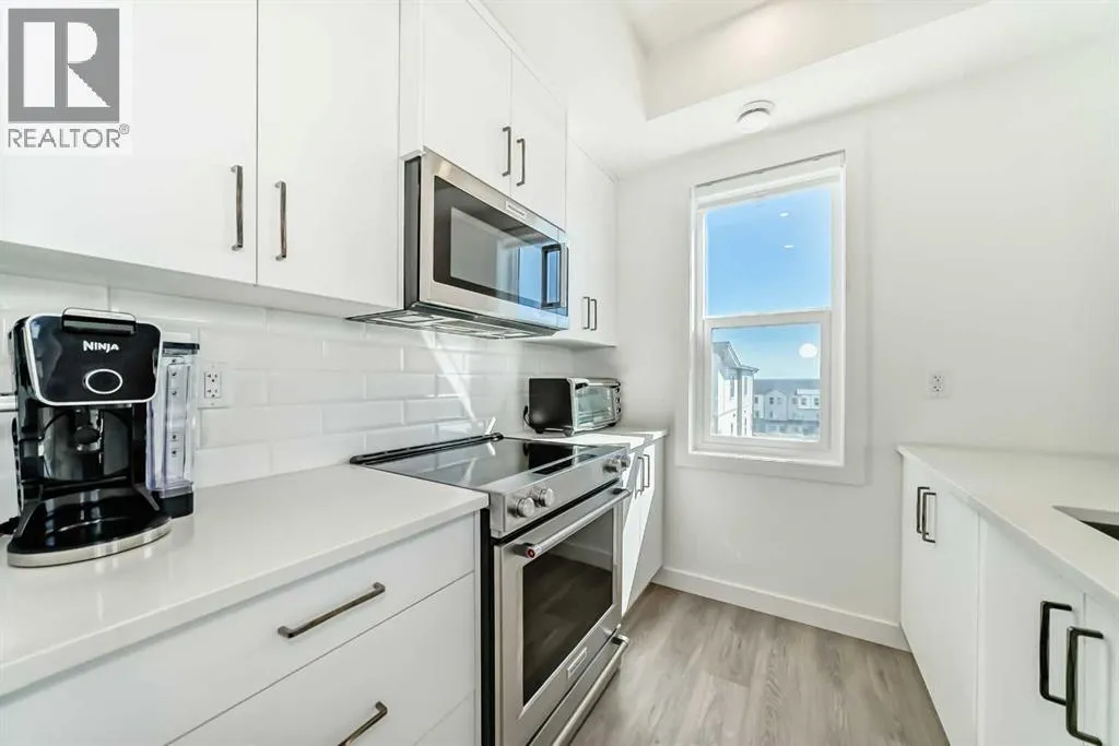 New 2024 townhome is now available! Privileged corner upper unit with better privacy and facing direction, this condo unit also features 2 spacious bedrooms with one of them having an ensuite, an open and sunny balcony, an attached garage and a private laundry room. Well-lit kitchen featuring quartz countertop, next to it is a spacious and bright living room sharing the stunning views of the balcony. The dining nook is besides and spacious enough for 4-6 seats and a dining table. Private balcony big enough for tables and barbeque stove with gas line provided. The primary suite includes a 4-pieces ensuite, the home also features a secondary bedroom, a secondary full bathroom, and laundry/utility room. East, South, West are windowed so this suite has full supply of sunlight especially from the West. Aspen landing center featuring gas station, shopping center, grocery store are just 5 minutes walk. Moreover, C-train station is just 20 minutes walk plus 3 bus lines are just 2 minutes to the 69 street C-train station. They are respectively the #164, #98 and #156. This townhome is ideal for young couple and small family, come check this out! (id:27476)