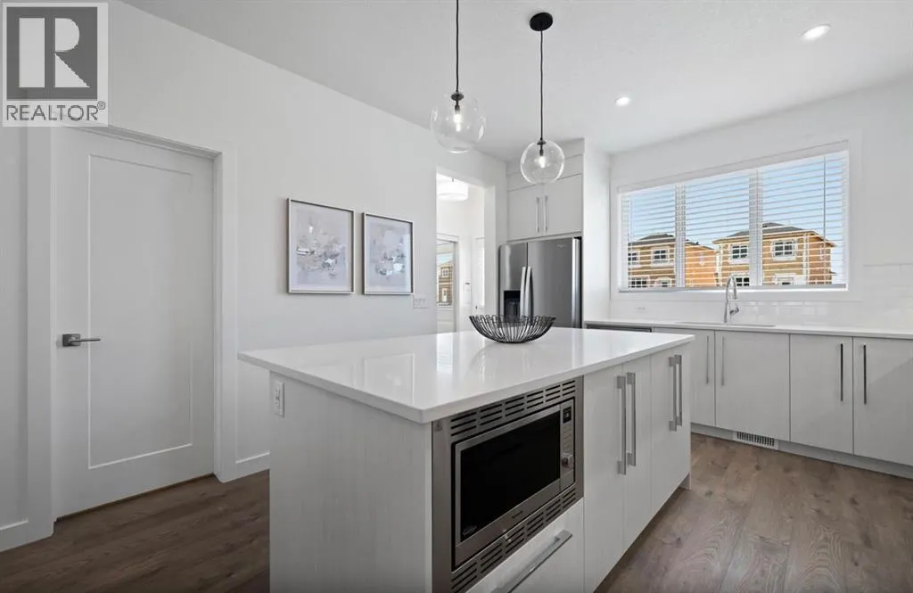 Beautifully crafted Truman-built 3-bedroom home with a bonus room and separate side entrance presents an exceptional opportunity in the sought-after community of Rangeview Springs.Thoughtfully designed with contemporary architecture and refined finishes, this home offers a bright, open-concept layout that effortlessly supports modern living. The main floor is elevated by soaring 9' ceilings and durable luxury vinyl plank flooring, creating a seamless transition between the living and dining spacesâideal for both relaxed family time and entertaining.At the rear of the home, the chef-inspired kitchen anchors the space with full-height, soft-close cabinetry, elegant quartz countertops, and a premium stainless steel appliance package that includes a gas range, chimney hood fan, and built-in microwave. A generous pantry with custom built-in shelving provides exceptional storage and organization while maintaining a clean, streamlined aesthetic.Upstairs, a spacious bonus room offers flexible living spaceâperfect for a media area, playroom, or quiet retreat. The primary bedroom delivers comfort and privacy with a walk-in closet complete with custom built-in organizers and a sleek 3-piece ensuite featuring a beautifully tiled shower. Two additional bedrooms are well-sized for family, guests, or a home office, each thoughtfully finished with custom built-in closet systems. A 4-piece main bath and convenient upper-level laundry with washer and dryer included complete the level with everyday ease.The unfinished basement, enhanced by a separate side entrance, offers tremendous future potential for additional living spaceâideal for customization to suit your needs. A poured concrete sidewalk leads to the side entry, adding both durability and convenience.Life in Rangeview Springs blends tranquility with connectivity. Surrounded by parks, pathways, and green space, the community encourages an active outdoor lifestyle while keeping you close to major routes, shopping, and essential amenities.Photo gallery shown is of a similar home, finishes vary. (id:27476)