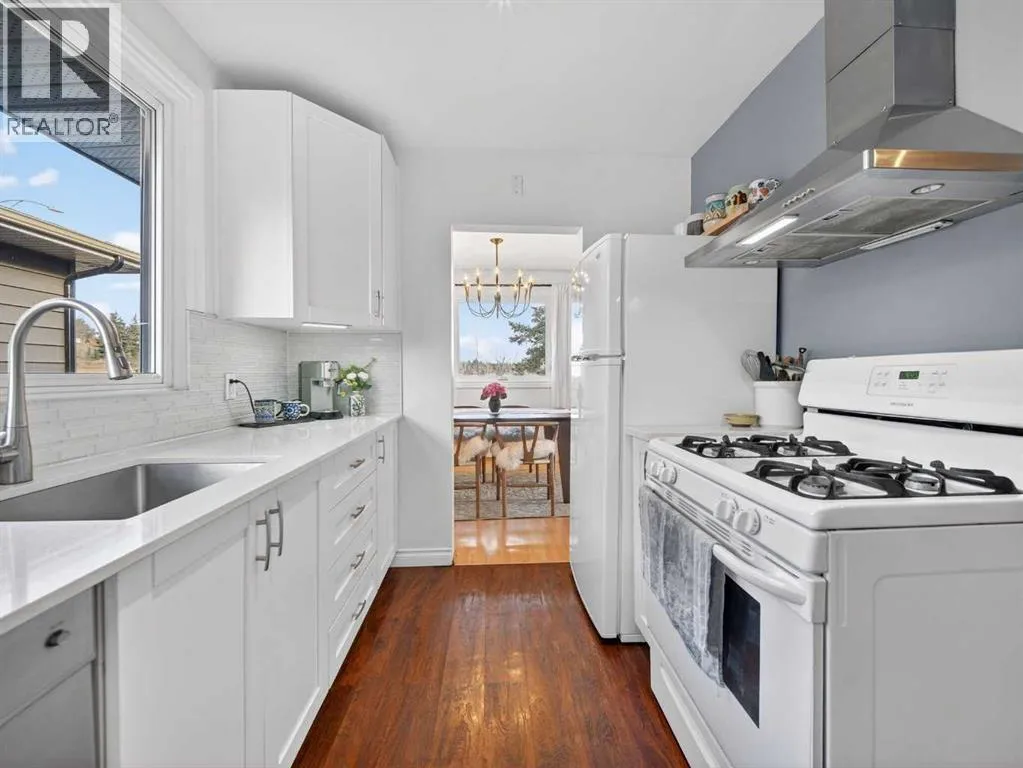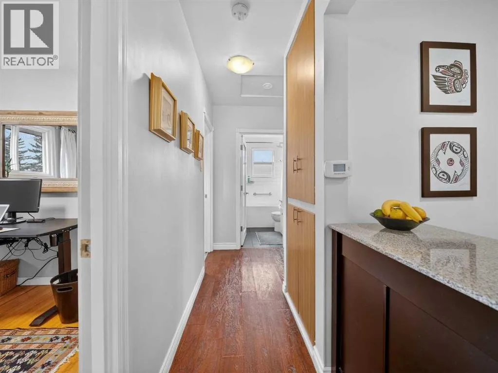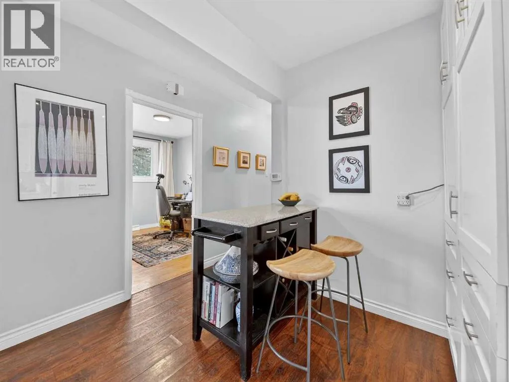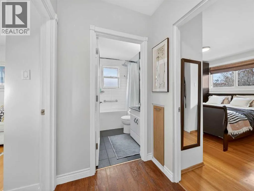 Renovated bungalow perfectly positioned on a sunny corner lot with alley access and picturesque park views. This home blends timeless charm with modern updates, offering versatility for families, investors, or those seeking additional income potential.The main floor features rich hardwood flooring, two spacious bedrooms plus a dedicated office, and a stylish 4-piece bathroom. The renovated kitchen is both functional and elegant, complete with quartz countertops, a gas stove, and ample cabinetry â ideal for everyday living and entertaining. A cozy wood-burning fireplace anchors the living space, adding warmth and character.Step outside to enjoy the brand-new front porch overlooking the park â the perfect spot for morning coffee. The property also includes a detached single-car garage with convenient alley access.Downstairs, the fully LEGAL basement suite offers a separate entrance, providing excellent rental potential or private space for extended family.An exceptional opportunity in a sought-after NW location. (id:27476)