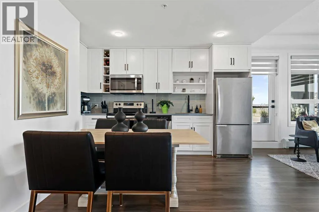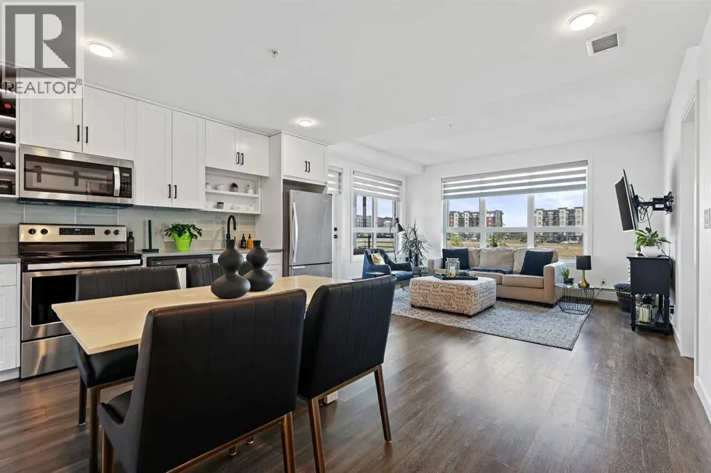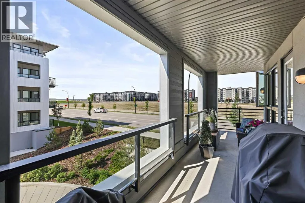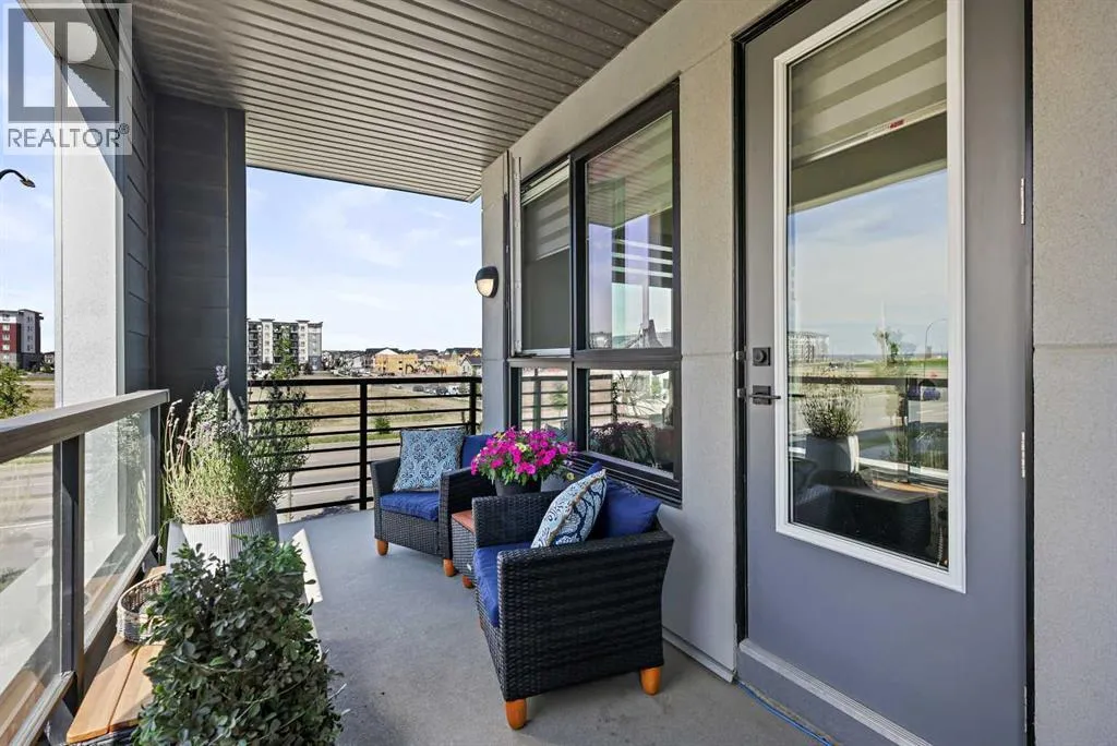 OUCH ALERT â â2â Hot To Handle Price: $349,900Sunny south-facing balcony views, immediate possession, and two titled parking stalls make this upgraded two-bedroom, two-bath second-floor home an absolute standout in the highly sought-after community of Livingston. Located in the popular Maverick building, this bright and beautifully maintained unit offers exceptional value and modern comfort in one of north Calgaryâs most vibrant neighbourhoods.With 855 RMS square feet of well-designed living space, the open-concept layout feels both spacious and inviting. The upgraded shaker-style white maple kitchen features tall upper cabinets, generous counter space, a pantry with extra storage and freezer space, full-height tile backsplash, dual-basin stainless steel sink, and a pull-out faucet. The kitchen flows seamlessly into the dining and living areas, perfect for everyday living or entertaining. Modern white-painted casings, doors, and baseboards add a crisp finish throughout, while convenient in-suite laundry with a stacked washer and dryer offers additional storage.Step outside to the impressive 26.5' x 6.1' glass-railed balcony and enjoy sunny south exposureâideal for morning coffee or evening relaxation. Rarely do you find two titled parking stalls included at this price point, adding tremendous value and flexibility.Living here means enjoying full access to the Livingston Hub and community amenities, including a banquet hall, splash park, skating rink, tennis and badminton courts, and gym facilities. Everything you need is within walking distance, from dining and shopping to everyday essentials. With quick access to Country Hills Boulevard, Stoney Trail, and Deerfoot Trail, commuting is simple and convenient. The complex is pet-friendly with board approval, making it a perfect fit for a variety of lifestyles.Move in now and start enjoying the unmatched community experience Livingston is known for. This one checks all the boxes for location, lifestyle, and va lue. Call your friendly REALTOR® today to book your private viewing. (id:27476)