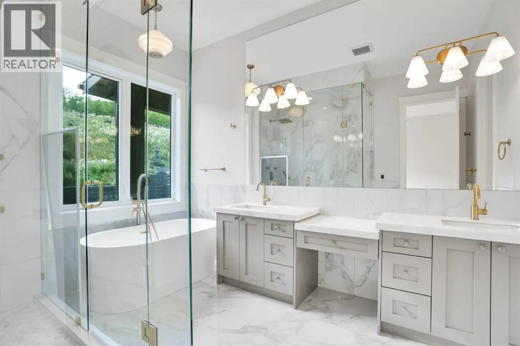 Absolutely stunning New Home with elevator in the prestigious Community of Patterson Point, where luxury meets Contemporary design in a Luxurious 3-Story home spanning 7000 Sq. Ft. on all three levels: Open floor plan, Two master suites, Elevator, RI E-Car charger, City view decks, private back patio with gas fireplace, 2 bedroom legal basement suite. Tankless toilets. Total of 7 bedrooms and 7 & half baths. This luxurious home is thoughtfully designed to take advantage of all the elements resulting in a healthy and comfortable home filled with natural air and light, offering high ceilings and unobstructed panoramic views of the City. Elevator access on all three floors. On the entry level is your reverse walk-out basement, open staircase w/ walnut railing which feels like anything but a basement. Luxury vinyl plank flooring, in-floor heat, Rec room with bar sink and wine cooler / beverage fridge and full bath with steam shower. This level also has a spacious 2-bedroom legal basement suite with fridge, electric stove, dishwasher, hood fan, microwave, washer, dryer and separate entrance. Double attached garage, heated, insulated drywalled and Rough in E-car charger. Combining functionality and esthetics Second floor (or main floor) : has 10â ceiling, engineered hardwood flooring, chefâs dream kitchen, quartz counter tops, high-end appliances, Thermador 36â gas cook top, built-in dishwasher, 48â fridge and built-in triple combo oven, speed oven & warming drawer, high efficiency hood fan, Cabinets w/ soft close doors huge pantry Plus large spice kitchen w/ electric stove, hood fan, sink and another fridge. Just off the kitchen is a Coffee station w/ beverage fridge, Large dinning room with 8 ft. high glass patio doors leading to a covered deck with gas fireplace. This floor also has one of the two Master bedroom with walk-in closet, 5 pc bath w / free standing air jetted jacuzzi tub and 8 ft. high glass patio doors leading to back yard, powder room, spacious Den / offi ce w / built-in wall unit and deck with city views. Top Floor: Has 9â high ceiling, high quality silk Carpet, 2nd Master Bedroom with walk-in closet, 5 pc bath with free standing air jet jacuzzi tub and a deck of the bedroom with unobstructed city views, 3 more bedrooms with en-suite and walk-in closets, spacious Bonus room, a coffee station w/ wine cooler and sink, laundry room w/ built-ins for storage and a loft w / built-in wall unit and big windows with city views. Fully landscaped, exposed aggregate driveway and back patio. Central A/C R.I. Basement with in-floor heat, all tiled bathrooms & laundry room have in-floor heat. This cozy home has emerged Elegance and comfort for you and your family. Area development has architectural control to create a beautiful community. (id:27476)