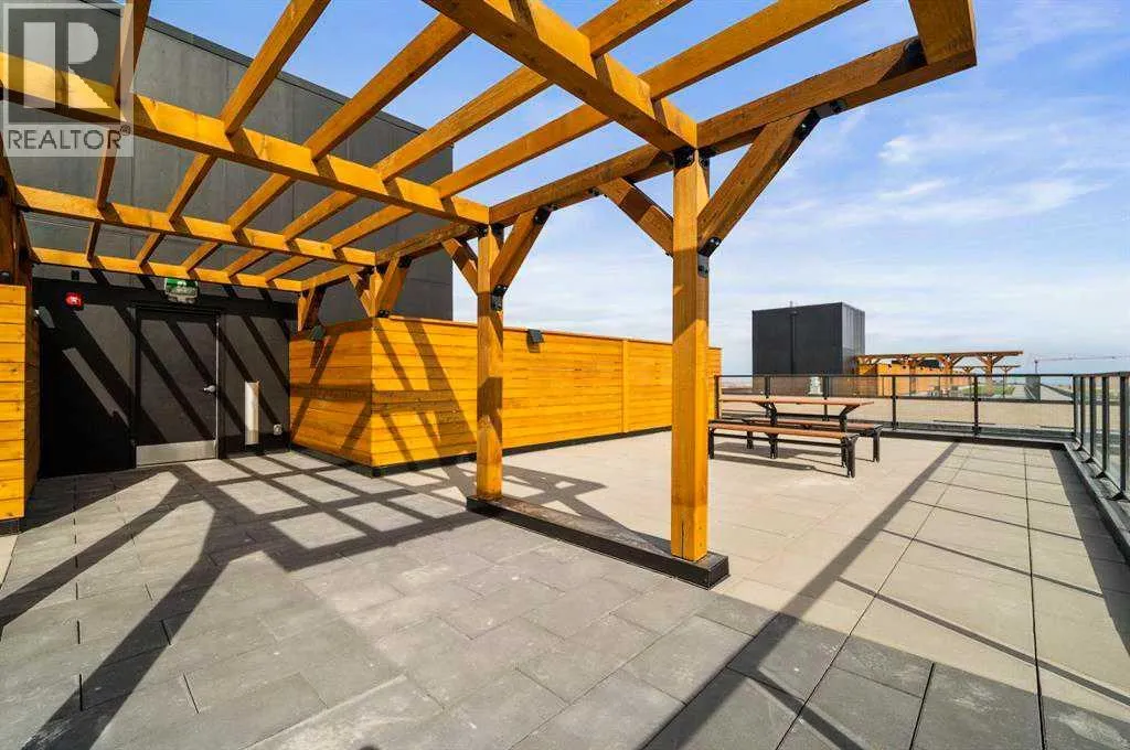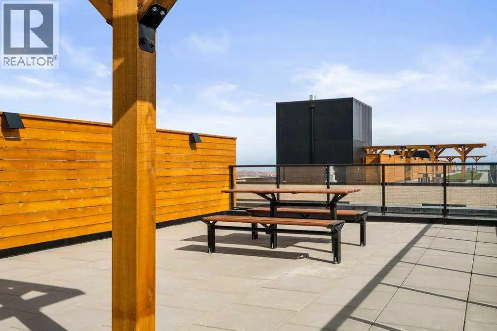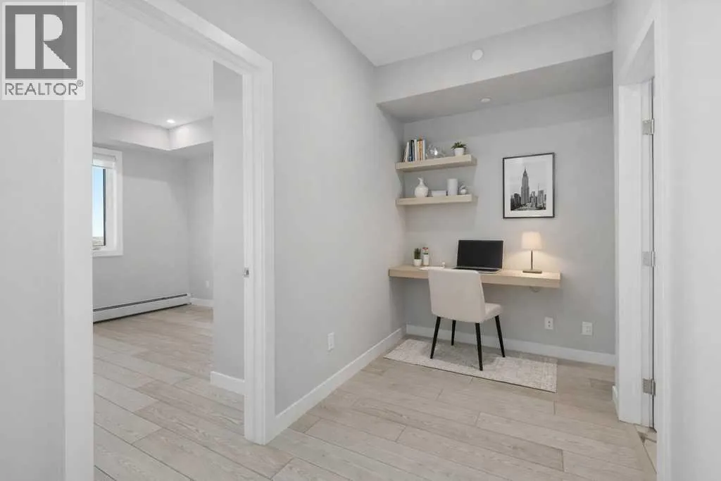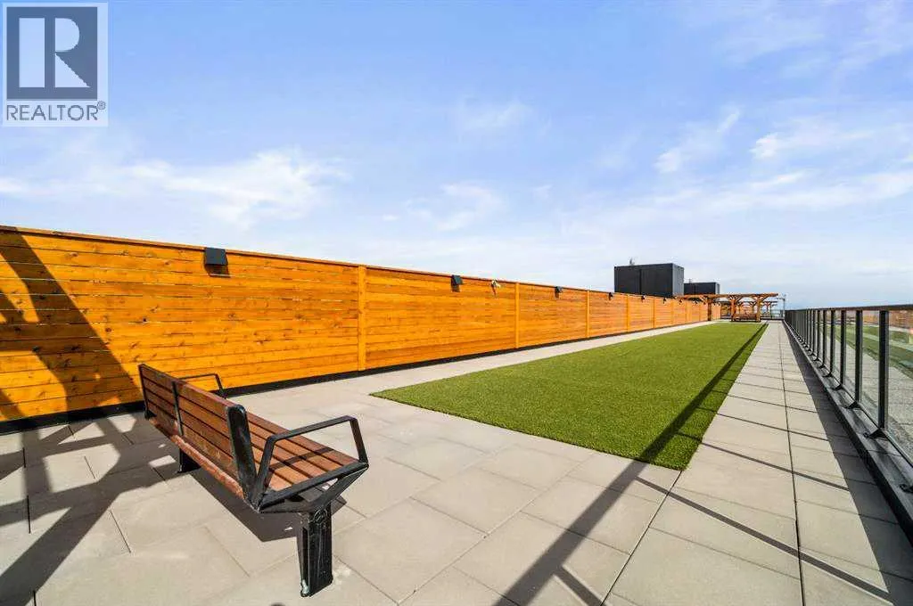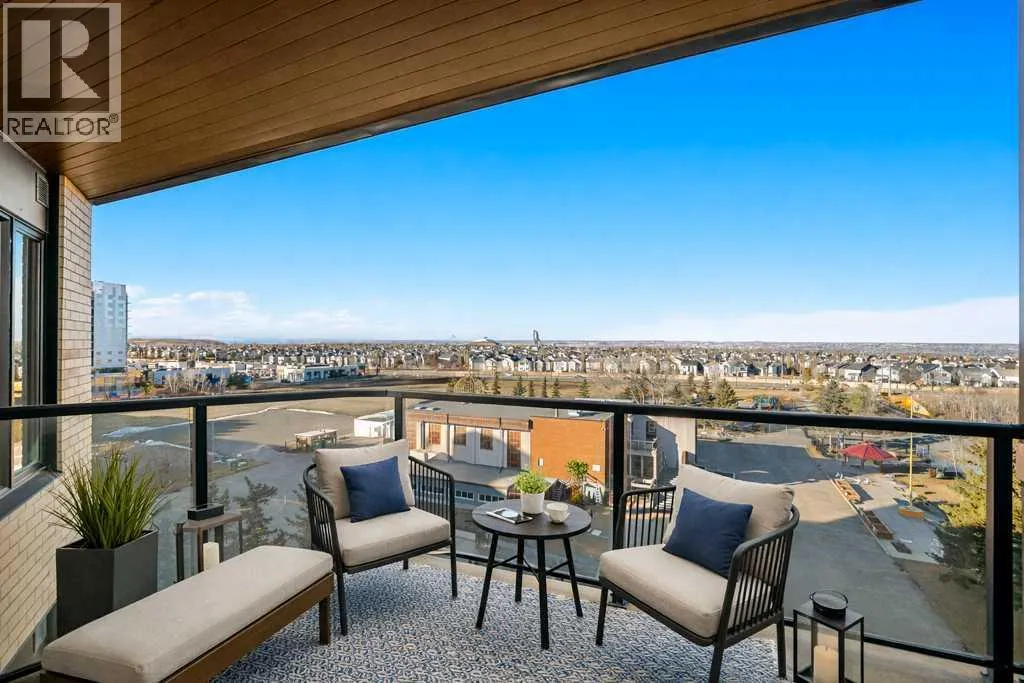 Contemporary living awaits at The Mondrian. This stylish 2 bedroom, 2 bathroom residence is beautifully curated by Trumanâs award-winning design team and delivers a true âwowâ factor with 9-foot ceilings, air conditioning, roller-shade window coverings, premium LVP flooring with acoustic underlay, and custom energy-efficient LED lighting throughout.The contemporary kitchen impresses with high-end, energy-saving stainless steel appliances, floor-to-ceiling ergonomic cabinetry, polished quartz countertops, and deep drawers designed for everyday function and clean modern style.Retreat to the expansive primary suite featuring a spacious walk-through closet leading to a luxe spa-inspired ensuite with a modern square-edge countertop, designer vanity, and environmentally conscious fixtures.The open-concept living area flows seamlessly to your private balcony, perfect for morning coffee or evening downtime. Enjoy the convenience of in-suite laundry, plus titled underground parking and a secure storage locker.Top it off with access to the breathtaking rooftop lounge with incredible views, all set in a vibrant community surrounded by cafés, restaurants, and boutique shopsâand just a short drive to downtown or the mountains. **Some images have been virtually/digitally staged to illustrate possible furnishings and layout. (id:27476)