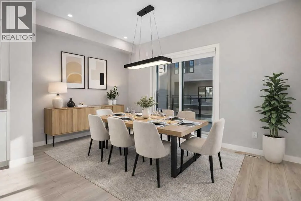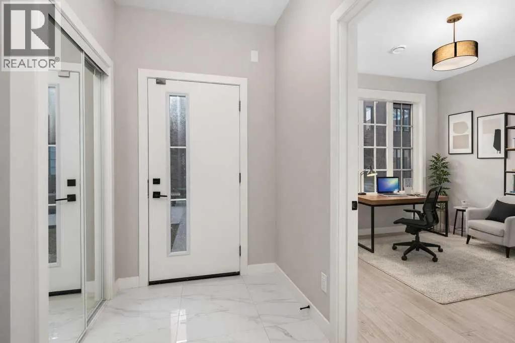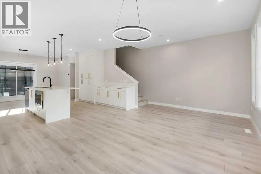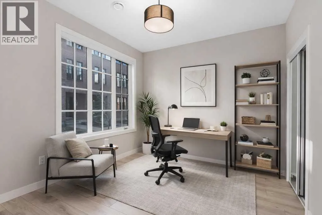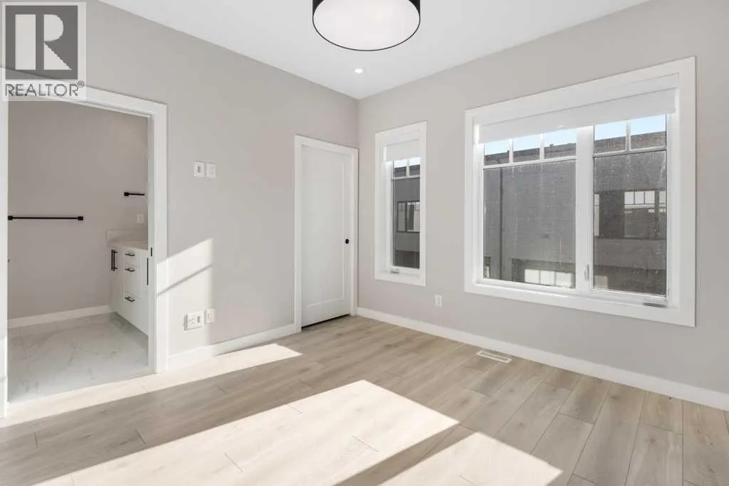 Welcome to District Townhomes in West Springs, where modern luxury meets everyday convenience in one of Calgaryâs most desirable Westside communities. Built by Truman Homes, this stylish 3-storey, 3-bedroom, 2.5-bathroom townhome is thoughtfully designed for todayâs lifestyleâclean lines, smart function, premium LVP flooring, roller-shade window coverings throughout and elevated finishes throughout.The entry level offers a flexible den/home office, plus a utility area, extra storage, and direct access to the attached double garageâperfect for commuting, working from home, or keeping life organized.Upstairs, the bright and airy main living level impresses with 9-foot ceilings, wide-plank luxury vinyl flooring, and an open-concept layout made for entertaining. The chef-inspired kitchen is the centerpiece, featuring full-height cabinetry with soft-close doors, quartz countertops, elegant gold accents, a gas range, built-in refrigerator, built-in microwave, and a massive quartz island with generous seating for casual meals or hosting friends. Step outside to your large private deckâideal for morning coffee, summer BBQs, or unwinding at the end of the day.The upper level features three well-planned bedrooms, including a standout primary retreat with a walk-in closet and a private 4-piece ensuite with dual vanities. Youâll also love the convenience of upper-floor laundry right where you need it.Perfectly located just minutes to West 85th, Radio-Park, Aspen Landing, top-rated schools, playgrounds, boutique fitness, grocery stores, cafés, and some of Calgaryâs best diningâplus quick access to Stoney Trail and Bow Trail for an easy downtown commute or a fast escape to the mountains.A move-in ready West Springs townhome with high-end finishes, a double garage, and a prime locationâthis is the one youâve been waiting for. **Some images have been virtually/digitally staged to illustrate possible furnishings and layout. (id:27476)