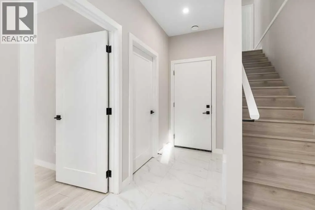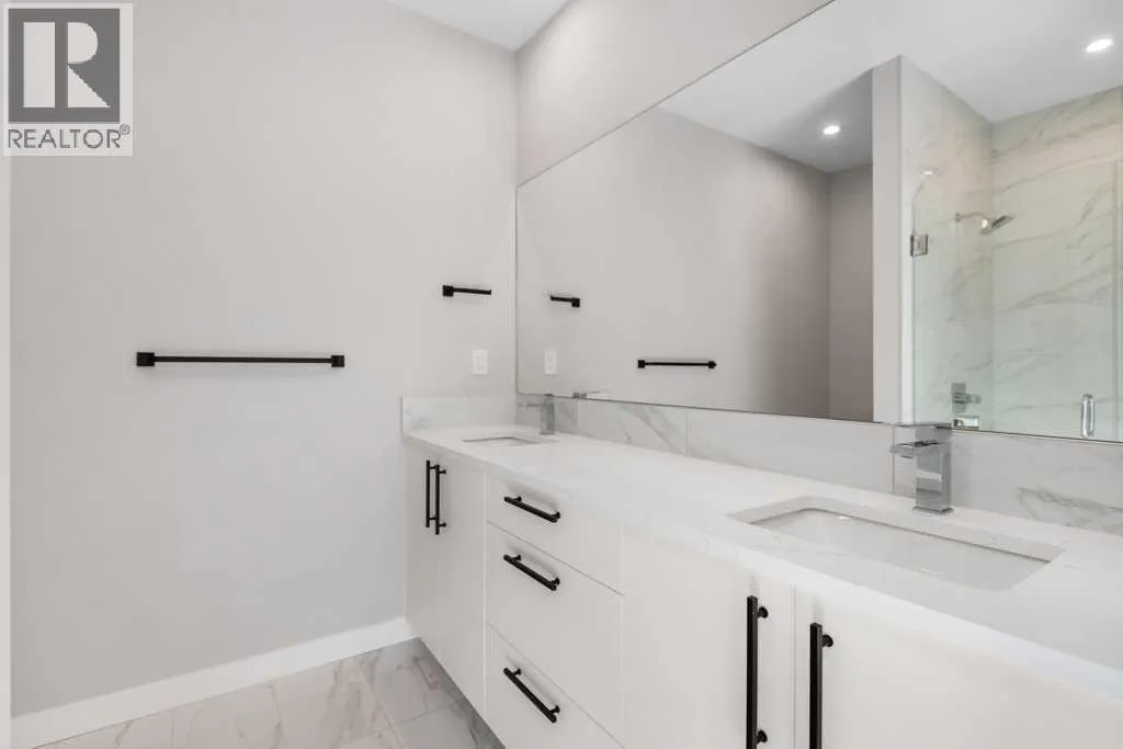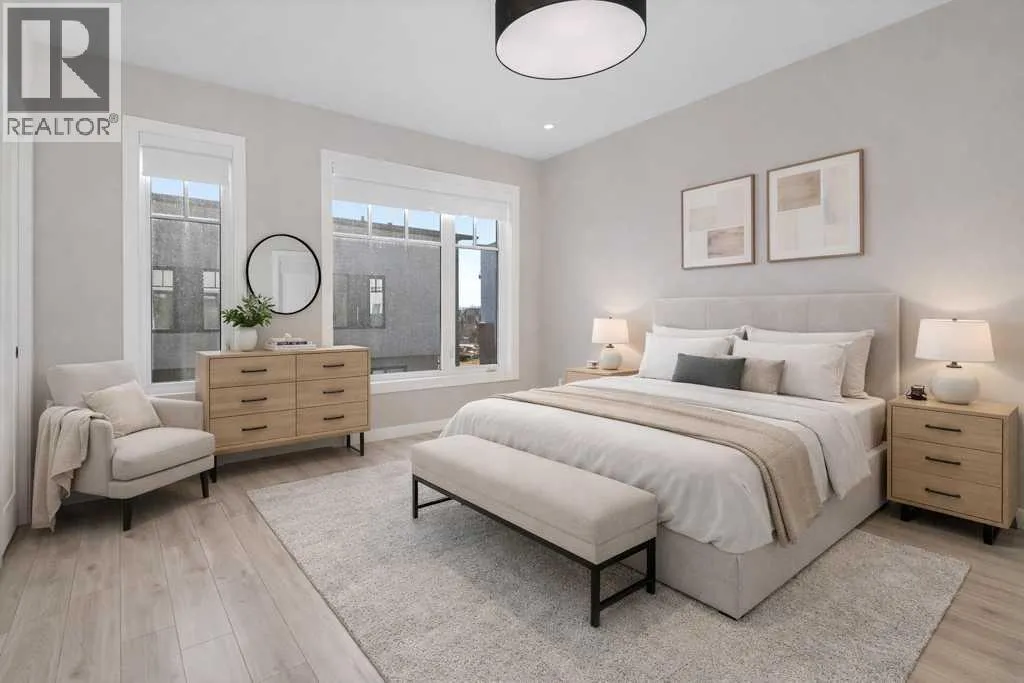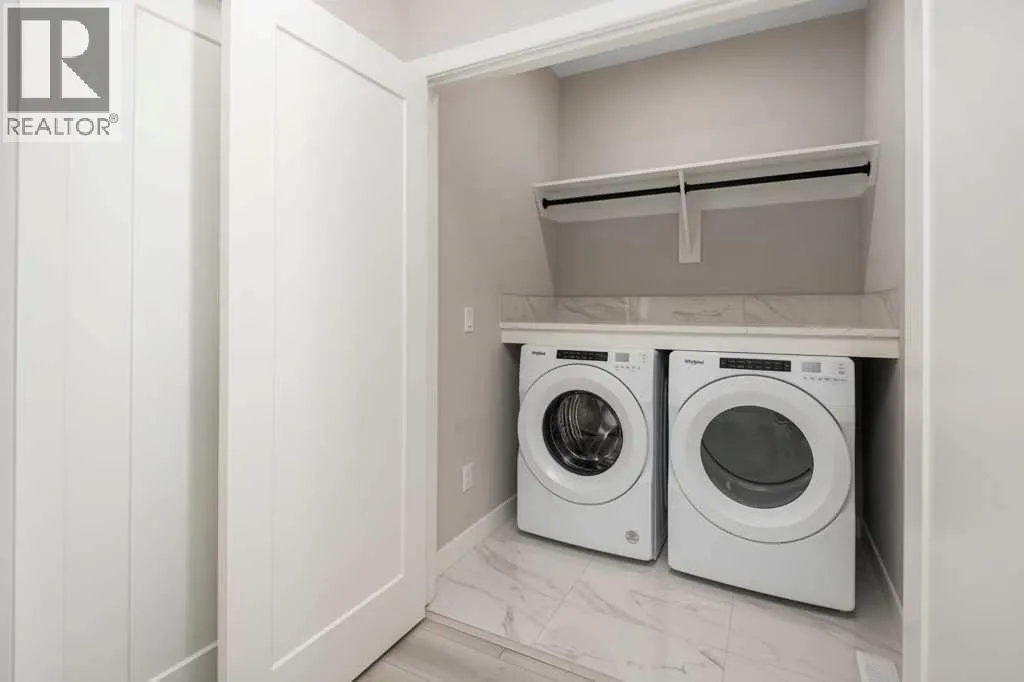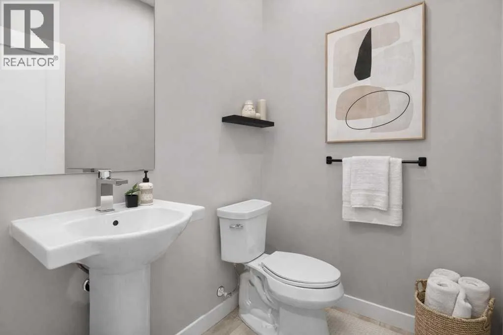Welcome to District Townhomes in West Springs, where modern luxury meets everyday convenience in one of Calgaryâs most desirable Westside communities. Built by Truman Homes, this stylish 3-storey, 3-bedroom, 2.5-bathroom townhome is thoughtfully designed for todayâs lifestyleâclean lines, smart function, premium LVP flooring, roller-shade window coverings throughout and elevated finishes throughout.The entry level offers a flexible den/home office, plus a utility area, extra storage, and direct access to the attached double garageâperfect for commuting, working from home, or keeping life organized.Upstairs, the bright and airy main living level impresses with 9-foot ceilings, wide-plank luxury vinyl flooring, and an open-concept layout made for entertaining. The chef-inspired kitchen is the centerpiece, featuring full-height cabinetry with soft-close doors, quartz countertops, elegant gold accents, a gas range, built-in refrigerator, built-in microwave, and a massive quartz island with generous seating for casual meals or hosting friends. Step outside to your large private deckâideal for morning coffee, summer BBQs, or unwinding at the end of the day.The upper level features three well-planned bedrooms, including a standout primary retreat with a walk-in closet and a private 4-piece ensuite with dual vanities. Youâll also love the convenience of upper-floor laundry right where you need it.Perfectly located just minutes to West 85th, Radio-Park, Aspen Landing, top-rated schools, playgrounds, boutique fitness, grocery stores, cafés, and some of Calgaryâs best diningâplus quick access to Stoney Trail and Bow Trail for an easy downtown commute or a fast escape to the mountains.A move-in ready West Springs townhome with high-end finishes, a double garage, and a prime locationâthis is the one youâve been waiting for. **Some images have been virtually/digitally staged to illustrate possible furnishings and layout. (id:27476)