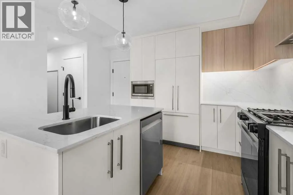 Experience sophisticated urban living at West Plaza. Brand new and never occupied, this beautifully appointed 2 bedroom, 2 bathroom condo showcases interiors curated by Trumanâs award-winning design team.What truly sets this home apart is the huge balcony that lives like a private patioâan incredible outdoor extension of your living space, perfect for entertaining, summer BBQs, or creating your own outdoor lounge.Inside, comfort meets style with air conditioning, a smart Wi-Fi thermostat, and roller-shade window coverings throughout. The open-concept layout features 9-foot ceilings, abundant natural light, and custom contemporary LED fixtures that keep the space bright and inviting. Youâll also appreciate the dedicated office/flex area, ideal for working from home, a reading nook, or extra storage and organization.The kitchen is a showpiece, offering floor-to-ceiling ergonomic cabinetry, polished quartz countertops, deep drawers, a full-height contemporary backsplash, and a gas rangeâbuilt for both daily living and hosting.The primary suite is a true retreat with a spa-inspired ensuite featuring quartz countertops, a sleek glass-enclosed shower, and environmentally conscious fixtures for a clean, elevated finish.The main 4-piece bathroom is finished with polished quartz countertops, a modern square-edge tub, and sleek contemporary fixtures for a clean, spa-inspired feel.Additional highlights include in-suite laundry, titled underground parking, and a dedicated storage locker. Residents also enjoy premium amenities including a fully equipped fitness centre, an inviting ownersâ lounge, and a 5-star hotel-style lobby with designer-inspired common spaces.All of this, just steps to boutique shopping, some of Calgaryâs best dining and cafés, and the greenery of Radio Park. ** Some images have been virtually/digitally staged to illustrate possible furnishings and layout. (id:27476)
