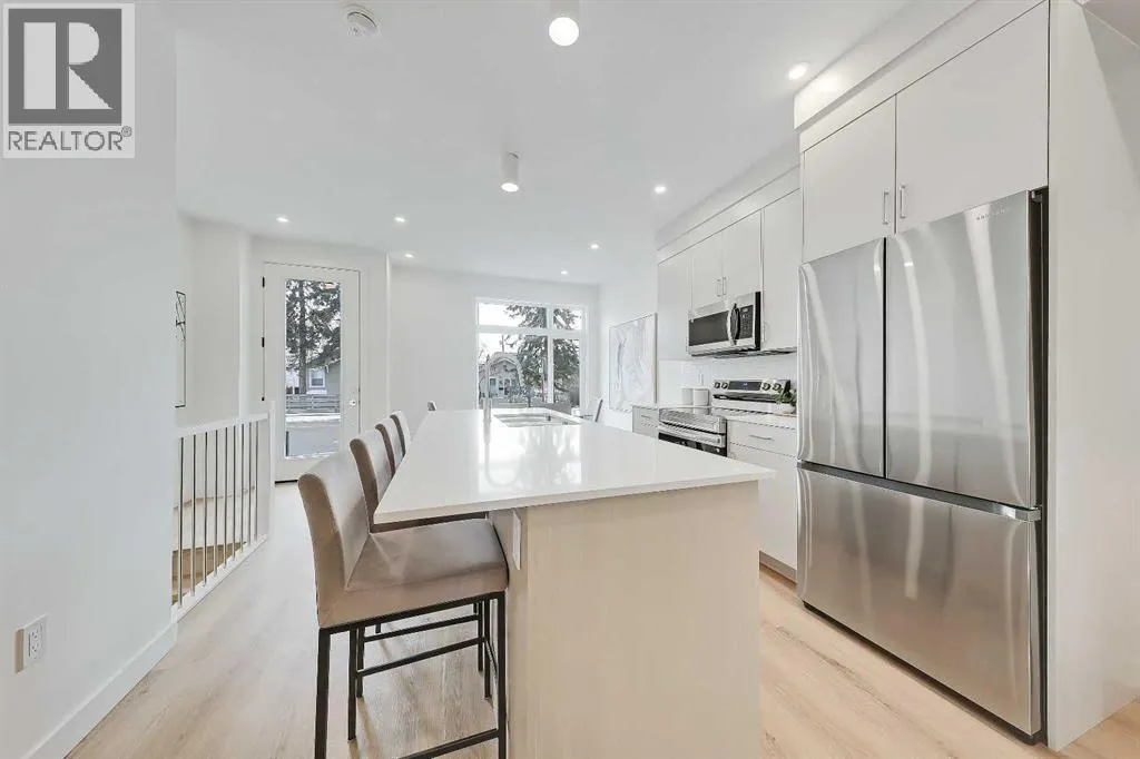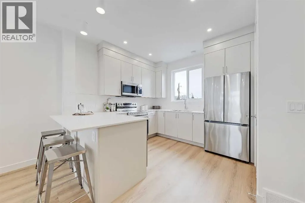 *VISIT MULTIMEDIA LINK FOR FULL DETAILS & FLOORPLANS!* BRAND NEW, MOVE-IN-READY TOWNHOME PROJECT FOR SALE IN RENFREW! With 4 upper-level units, and 4 lower-level units, this modern townhome project is sure to impress! This listing includes TWO titled units: one upper-level 2-storey unit (#7) featuring 1,020 sq ft, with 2 beds, 2.5 baths, and a single detached garage, PLUS one lower-level unit directly below (#2) boasting a sunny main floor plus a FULLY FINISHED BASEMENT totalling over 900 sq ft of developed living space, with 2 beds & 2.5 baths. Live in one and rent the other, or combine both for personal use and have a 4-bedroom townhome with 1,950+ sq ft of living space! Both units feature sunny and bright open-concept living space, with sleek luxury vinyl plank (LVP) flooring and large windows. The fully equipped modern kitchens boast modern slab-style cabinetry, quartz countertops, and Samsung stainless steel appliances, including a French-door refrigerator and a ceramic-top stove. Completing the main floor of both units is a spacious dining area perfect for family meals and entertaining, a living room with large windows for ample natural light and a stylish 2-piece powder room. The upper-unit level (#7) features a lacquered spindled railing leading to the upper floor, where 2 bedrooms, each with its own ensuite, await! Both ensuites feature a tiled tub/shower combo and vanities with quartz counters. The lower unit (#2), with a fully developed basement, features 2 bedrooms and 2 full bathrooms. Each bathroom boasts custom cabinetry, quartz counters, undermount sinks, and tiled tub/shower combos. Plus, both units feature a convenient in-suite laundry closet with a stacked washer/dryer. Stylish and durable, the exterior features Hardie Board and Smart Board detailing, and brushed concrete steps and walks. Long favoured by families, Renfrew is a tranquil community full of tree-lined streets and park space, featuring multiple schools such as Childrenâs Village Schoo l, Colonel Macleod School, St. Alphonsus School, and Stanley Jones School, along with sports fields and parks. The Renfrew Community Association is located just adjacent to this property, offering another playground and an ice rink in the winter - there is little need to venture outside the area! This neighbourhood is surrounded by numerous shopping and dining options, including Diner Deluxe, Boogieâs Burgers, and more, in the neighbouring community of Bridgeland. Enjoy convenient access to Calgaryâs downtown core and major roadways for quick travel around the city. *Interior photos are samples taken from show homes (Unit #1 and Unit #8). Schedule your private showing today! (id:27476)