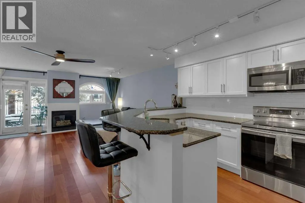Welcome to this beautifully maintained multi-level apartment in the heart of the city centre. This ground-floor unit offers the perfect blend of urban convenience and comfortable living, complete with an adorable private patio, ideal for morning coffee or evening relaxation.The main level features rich hardwood flooring, a spacious living area with a cozy gas fireplace, and a well-appointed kitchen showcasing granite countertops and stainless steel appliances. A convenient two-piece powder room completes this level.Upstairs, youâll find brand new carpeting and a highly functional double primary bedroom layout. Each generously sized bedroom includes its own private ensuite bathroom, offering exceptional comfort and privacy. Upper-level laundry adds everyday convenience.Additional highlights include ample in-unit storage and a titled underground parking stall.Located just steps from shops, boutiques, grocery stores, parks, restaurants, and vibrant 17th Avenue, this property offers unbeatable walkability and lifestyle appeal. An excellent opportunity for professionals, investors, or anyone seeking stylish inner-city living. (id:27476)