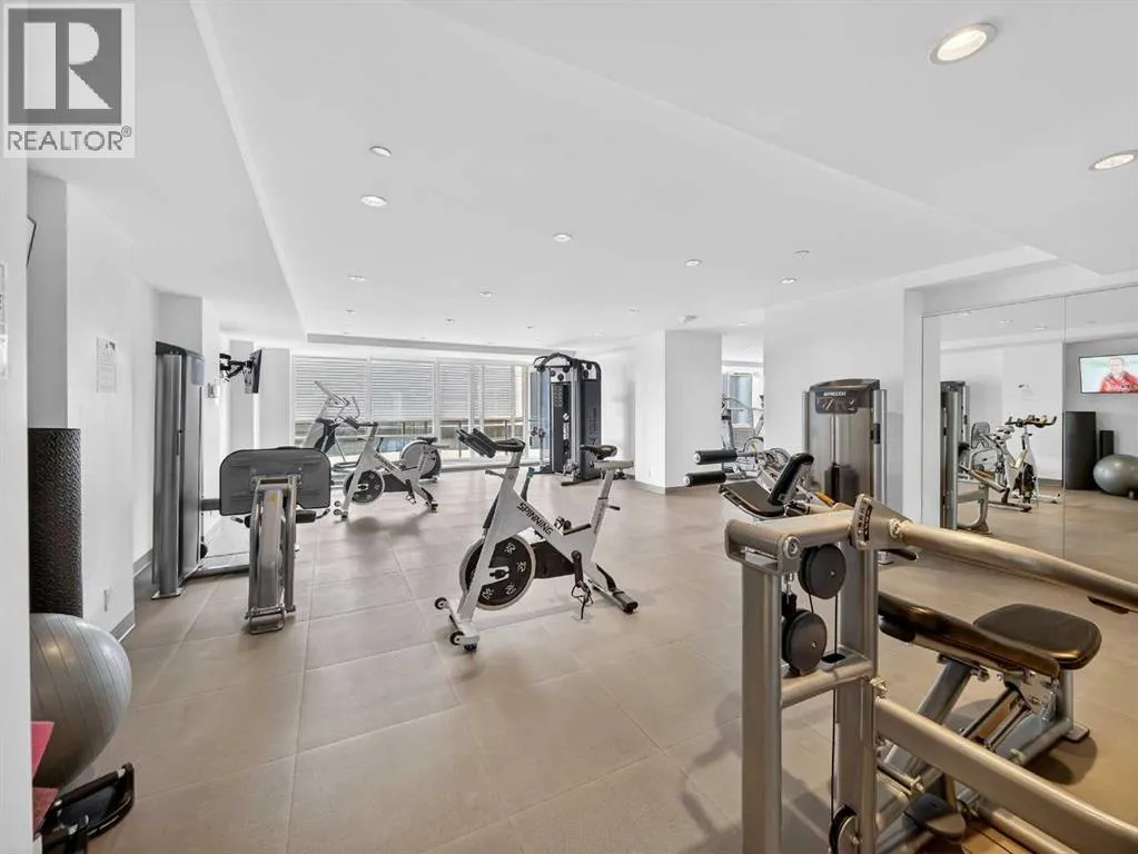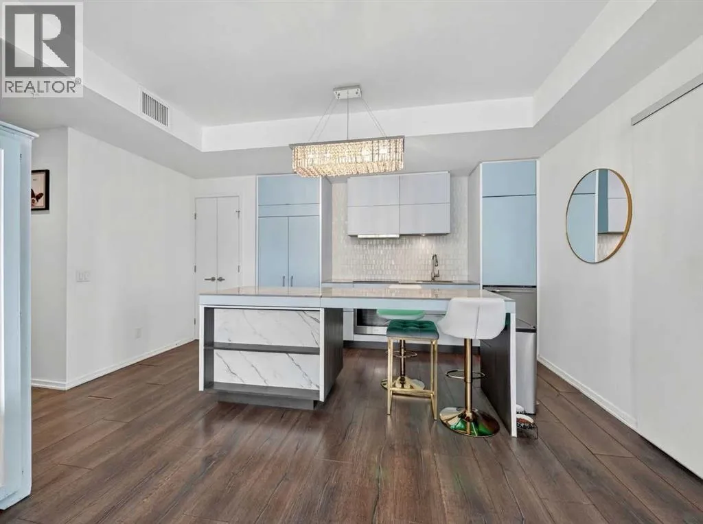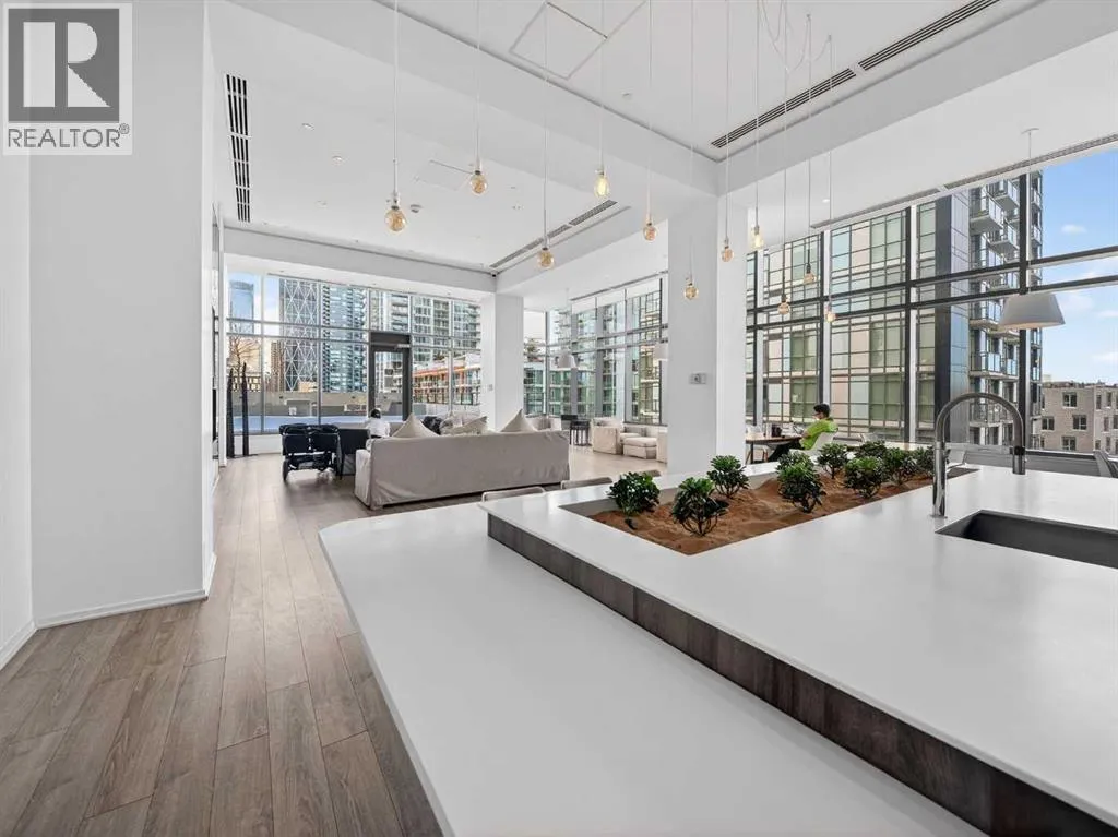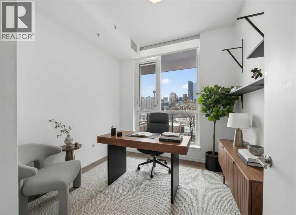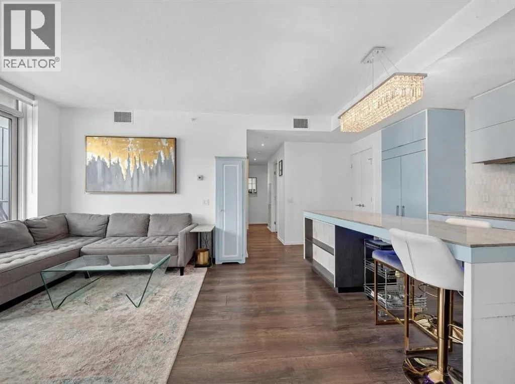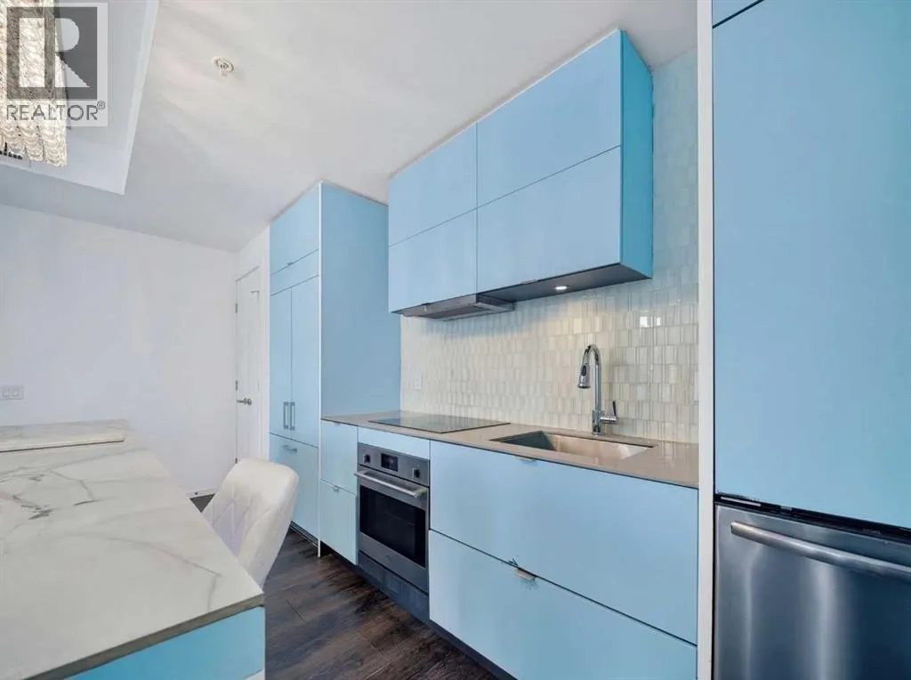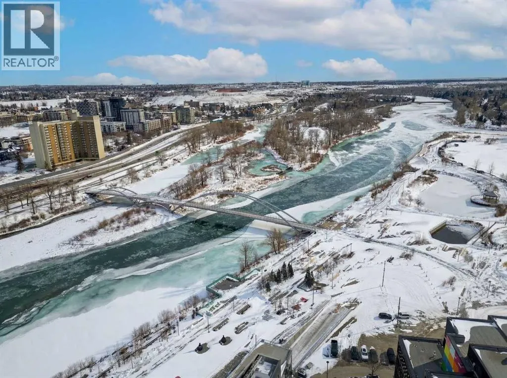 This is downtown living at its best. Welcome to this stunning corner unit in The Verve, located in the heart of East Village â one of Calgaryâs most vibrant and walkable communities. This modern 2-bedroom, 2-bathroom condo features floor-to-ceiling windows with panoramic west-facing views, an open-concept layout flooded with natural light, and a sleek kitchen complete with quartz countertops, built-in oven, electric cooktop, and fully integrated appliances. The bright corner primary bedroom offers a stylish 3-piece ensuite, while the second bedroom is thoughtfully positioned on the opposite side of the unit beside a full 4-piece bathroom â ideal for guests, roommates, or a home office. Additional highlights include full-size in-suite laundry, central A/C, custom blinds, and a covered west-facing balcony with a BBQ gas line and space for patio furniture. The Verve offers exceptional amenities including full-time concierge, a fully equipped fitness centre, large social lounge with outdoor patio and fire tables, guest suites, bike storage, visitor parking, and a spectacular 25th-floor rooftop patio with breathtaking views of the downtown core, mountains, and river valley. All just steps from the River Walk, Bow River pathways, St. Patrickâs Island, Studio Bell, the Central Library, restaurants, cafés, and more. Underground titled parking and assigned storage included â an exceptional opportunity to own a premium corner unit in one of Calgaryâs most desirable downtown locations. (id:27476)