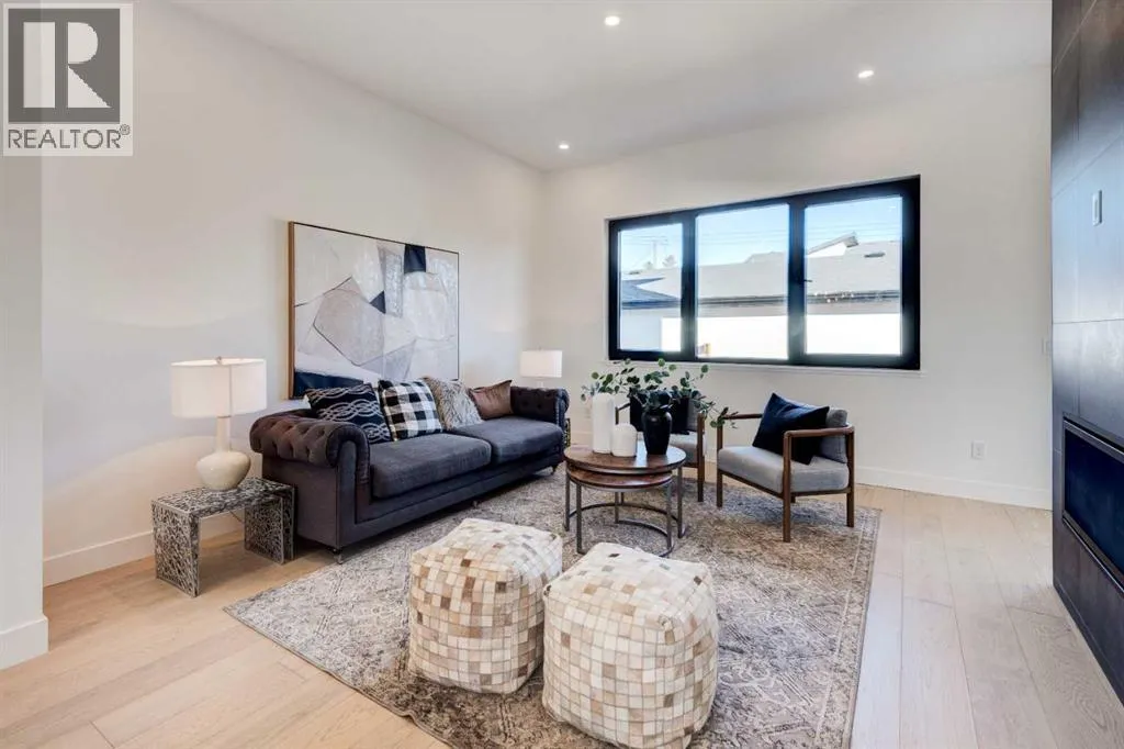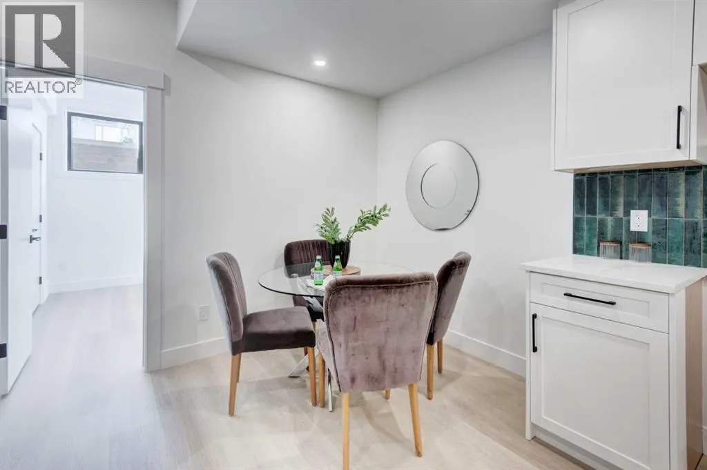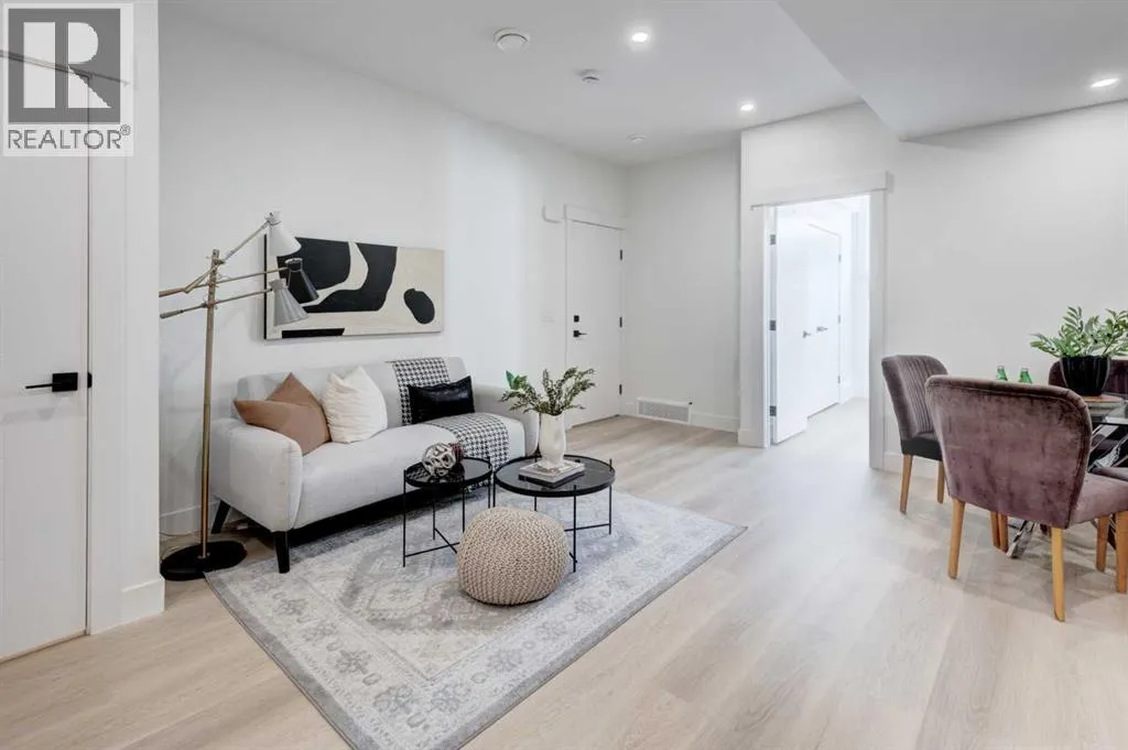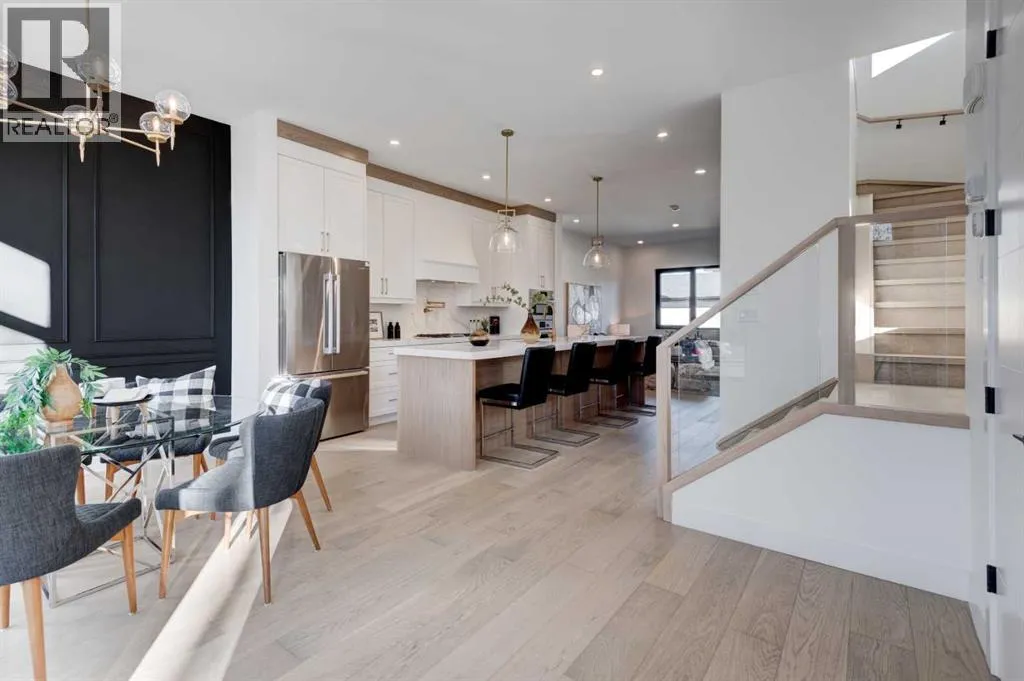 Welcome to 3716 44 Street SW, a brand-new, beautifully designed duplex with a fully legal basement suite located in the highly desirable community of Glenbrook. This thoughtfully built home offers over 2,600 sq. ft. of professionally developed living space and is perfectly suited for families, professionals, or investors seeking modern inner-city living with income potential. Built with quality craftsmanship and attention to detail, the property comes complete with comprehensive New Home Warranty coverage, providing peace of mind and long-term value.From the moment you arrive, the contemporary exterior design makes a strong first impression with clean architectural lines, large windows, and modern finishes that blend seamlessly into the neighborhood. The landscaped front approach welcomes you into a bright and functional interior designed for everyday living and entertaining. The main floor features a spacious open-concept layout and wide-plank engineered hardwood flooring that enhances the sense of space and warmth throughout. The front living area is highlighted by an elegant fireplace feature wall and oversized windows that allow natural light to pour in, creating an inviting atmosphere.The dining area transitions effortlessly into a stunning chef-inspired kitchen that serves as the heart of the home. Complete with quartz countertops, custom cabinetry, soft-close drawers, under-cabinet lighting, premium stainless steel appliances, and a large central island, this kitchen provides ample prep space and seating for casual dining or entertaining guests. The thoughtful layout ensures both style and functionality, making it ideal for hosting gatherings or enjoying family meals. A well-appointed two-piece powder room completes the main level.Upstairs, you will find three generously sized bedrooms, each offering privacy and comfort. The primary bedroom is designed as a luxurious retreat featuring a spacious walk-in closet and a spa-inspired ensuite complete with du al vanities, a freestanding soaker tub, a fully tiled glass shower, and heated flooring in the ensuite bathroom for added comfort during colder months. The additional bedrooms are well-proportioned and ideal for family members, guests, or home office use. Convenient upper-level laundry adds to the practicality of the layout.One of the most valuable highlights of this property is the fully developed legal basement suite, built to city standards with a separate private entrance. The suite includes its own modern kitchen, comfortable living area, spacious bedroom, full bathroom, dedicated laundry. Whether used as a mortgage helper, rental income opportunity, or private space for extended family, the legal suite significantly enhances the versatility and financial appeal of the home.This property has been constructed with comfort and efficiency in mind, incorporating energy-efficient windows, modern insulation (id:27476)