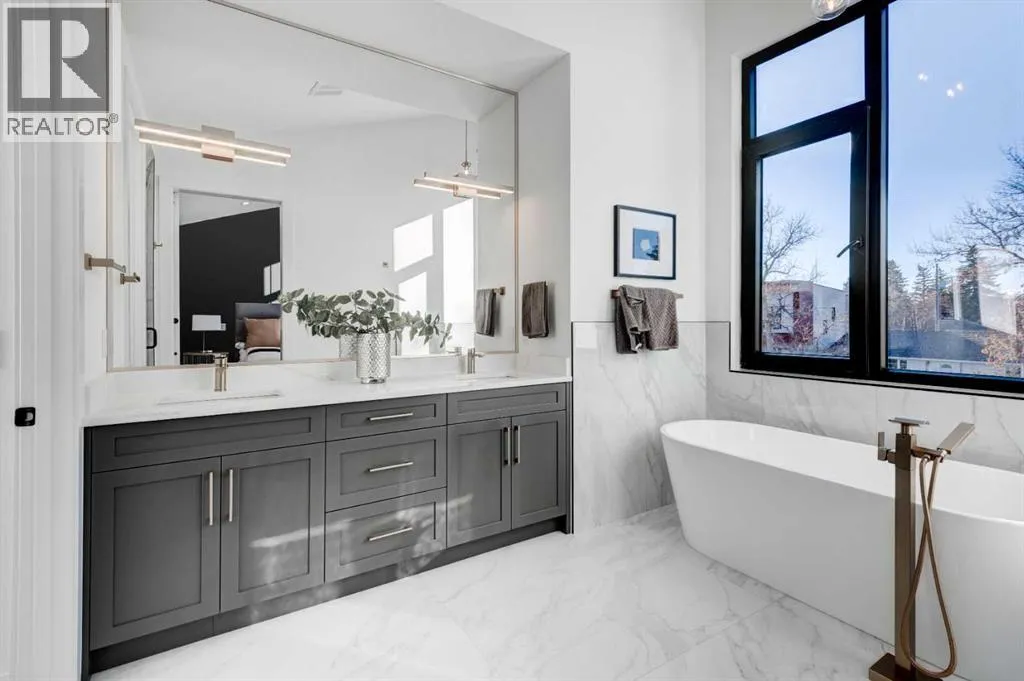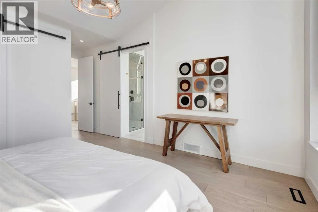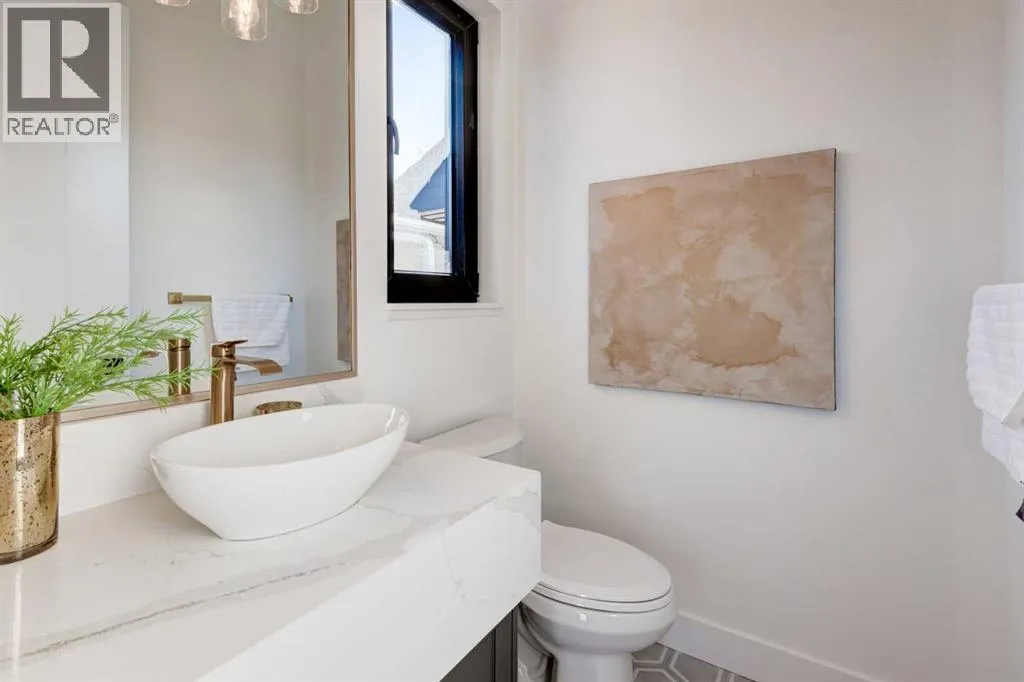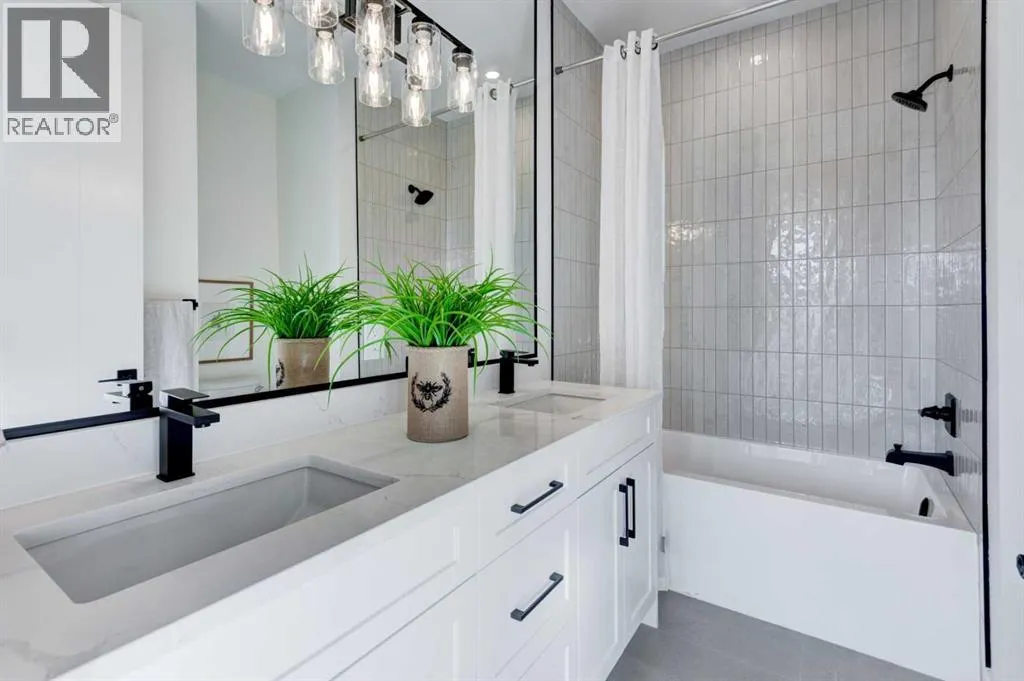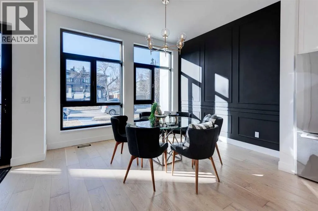 Welcome to 3716 44 Street SW, a brand-new, beautifully designed duplex with a fully legal basement suite located in the highly desirable community of Glenbrook. This thoughtfully built home offers over 2,600 sq. ft. of professionally developed living space and is perfectly suited for families, professionals, or investors seeking modern inner-city living with income potential. Built with quality craftsmanship and attention to detail, the property comes complete with comprehensive New Home Warranty coverage, providing peace of mind and long-term value.From the moment you arrive, the contemporary exterior design makes a strong first impression with clean architectural lines, large windows, and modern finishes that blend seamlessly into the neighborhood. The landscaped front approach welcomes you into a bright and functional interior designed for everyday living and entertaining. The main floor features a spacious open-concept layout and wide-plank engineered hardwood flooring that enhances the sense of space and warmth throughout. The front living area is highlighted by an elegant fireplace feature wall and oversized windows that allow natural light to pour in, creating an inviting atmosphere.The dining area transitions effortlessly into a stunning chef-inspired kitchen that serves as the heart of the home. Complete with quartz countertops, custom cabinetry, soft-close drawers, under-cabinet lighting, premium stainless steel appliances, and a large central island, this kitchen provides ample prep space and seating for casual dining or entertaining guests. The thoughtful layout ensures both style and functionality, making it ideal for hosting gatherings or enjoying family meals. A well-appointed two-piece powder room completes the main level.Upstairs, you will find three generously sized bedrooms, each offering privacy and comfort. The primary bedroom is designed as a luxurious retreat featuring a spacious walk-in closet and a spa-inspired ensuite complete with du al vanities, a freestanding soaker tub, a fully tiled glass shower, and heated flooring in the ensuite bathroom for added comfort during colder months. The additional bedrooms are well-proportioned and ideal for family members, guests, or home office use. Convenient upper-level laundry adds to the practicality of the layout.One of the most valuable highlights of this property is the fully developed legal basement suite, built to city standards with a separate private entrance. The suite includes its own modern kitchen, comfortable living area, spacious bedroom, full bathroom, dedicated laundry. Whether used as a mortgage helper, rental income opportunity, or private space for extended family, the legal suite significantly enhances the versatility and financial appeal of the home.This property has been constructed with comfort and efficiency in mind, incorporating energy-efficient windows, modern insulation (id:27476)