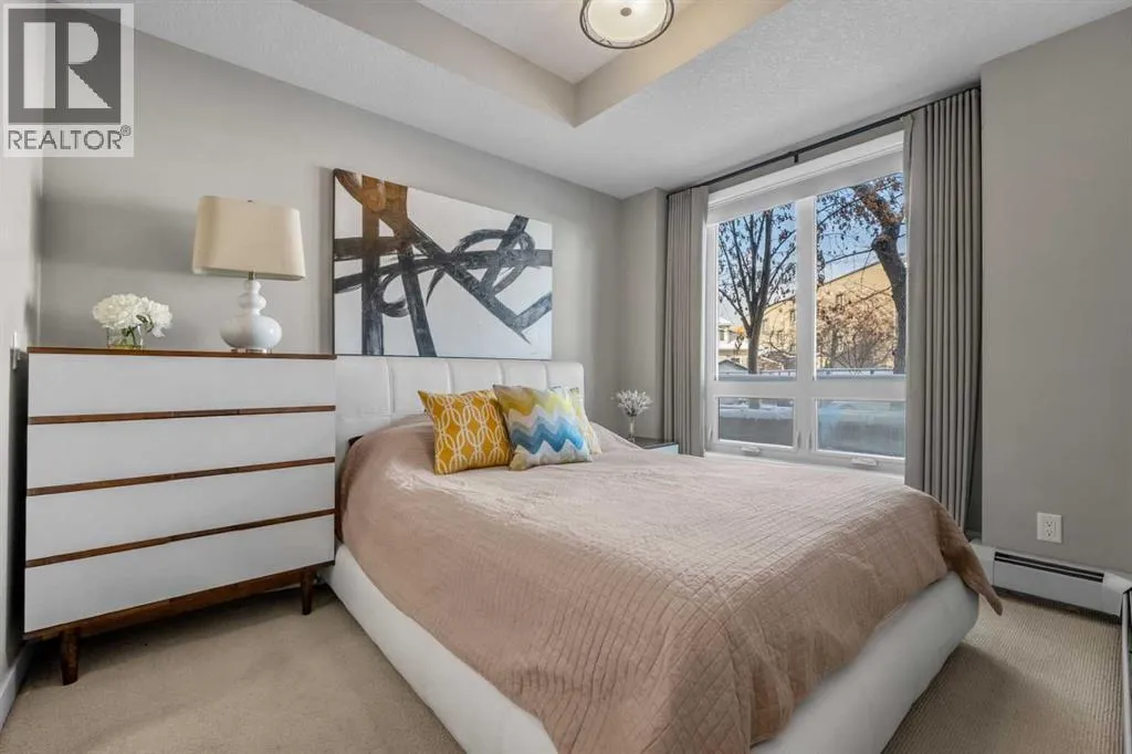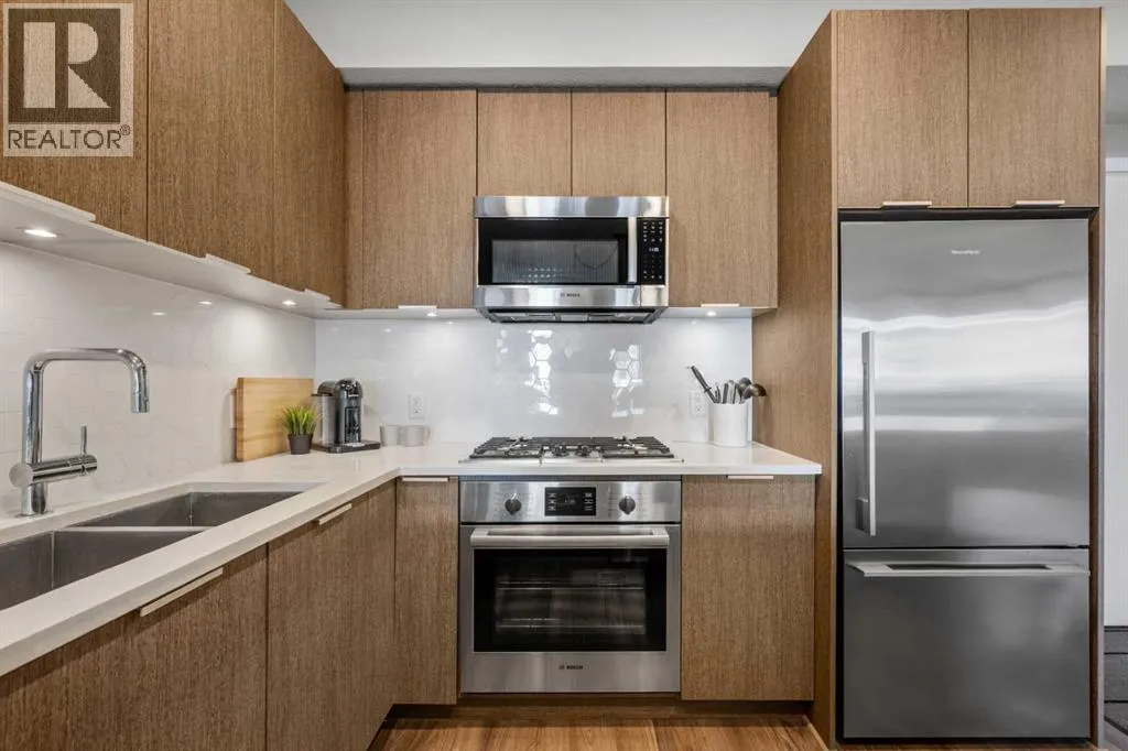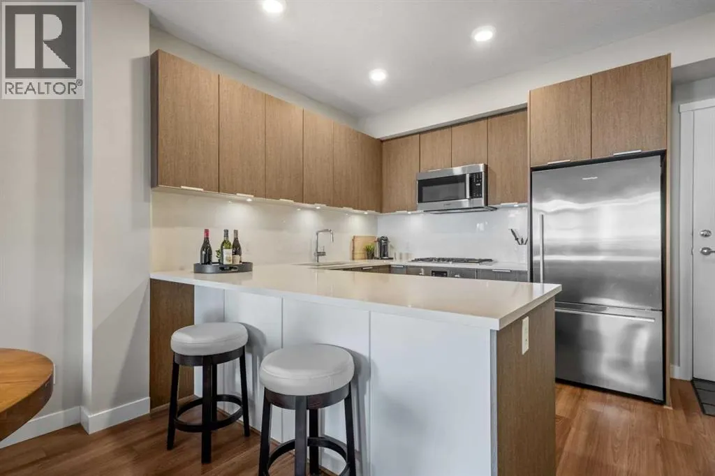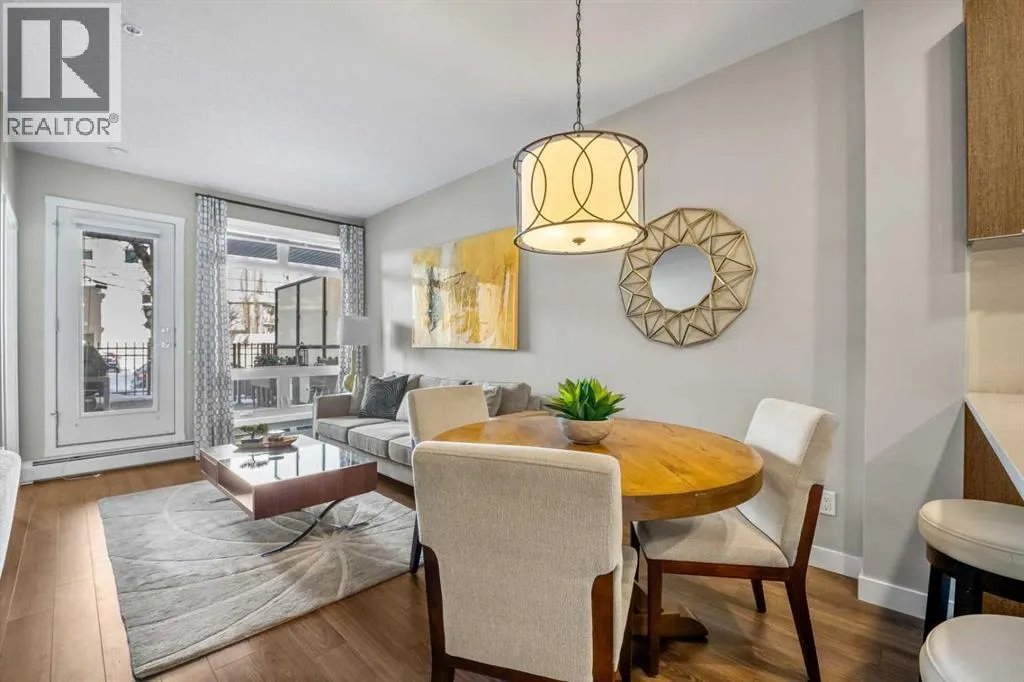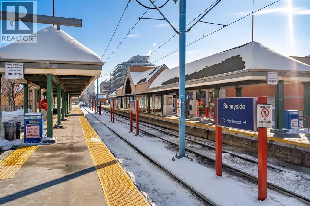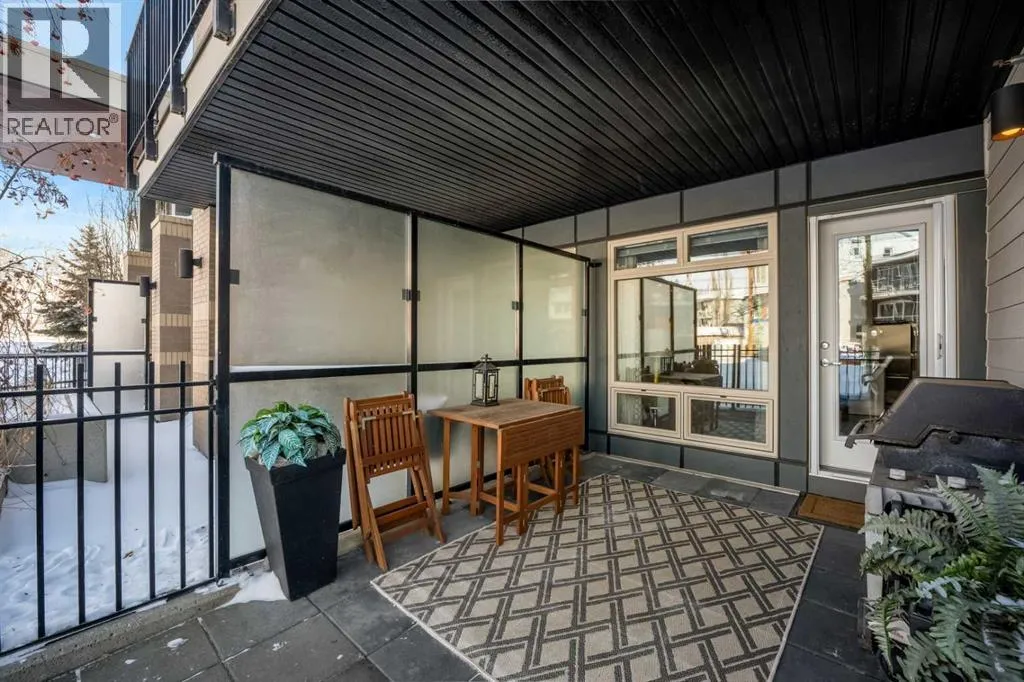 Located in the sought after Ven of Kensington, this ground floor one bedroom apartment offers modern construction, direct outdoor access, and an exceptional west Sunnyside location just steps from Kensington and minutes to downtown.Measuring 580 square feet, the layout is bright and efficient, enhanced by 9 foot ceilings that create an open, comfortable feel. The kitchen features quality stainless steel appliances and flows into the main living area, while in suite laundry adds everyday practicality. The bedroom and full bathroom are well proportioned, making the home equally suitable for personal use or rental income.The standout feature is the spacious private patio. Larger than most upper floor balconies, it provides direct gated access to the street, a rare advantage in apartment living. For dog owners, this location is especially appealing, with the Rosedale Off Leash Area and McHugh Bluff Playground directly across the street, offering immediate access to green space and walking paths.Built in 2015, the Ven offers secure underground parking with one titled stall included, along with an assigned storage unit. The parkade also features a workshop and two bike storage areas, ideal for those who take advantage of the nearby Bow River pathway system and quick downtown cycling routes.Sunnyside continues to attract first time buyers, investors, and adults in transition who value walkability and connection. Kensingtonâs cafés, restaurants, and daily services are only minutes away, and the Sunnyside CTrain station makes car optional living realistic. A well located, low maintenance home that combines convenience, comfort, and long term appeal in one of Calgaryâs most established inner city communities. (id:27476)