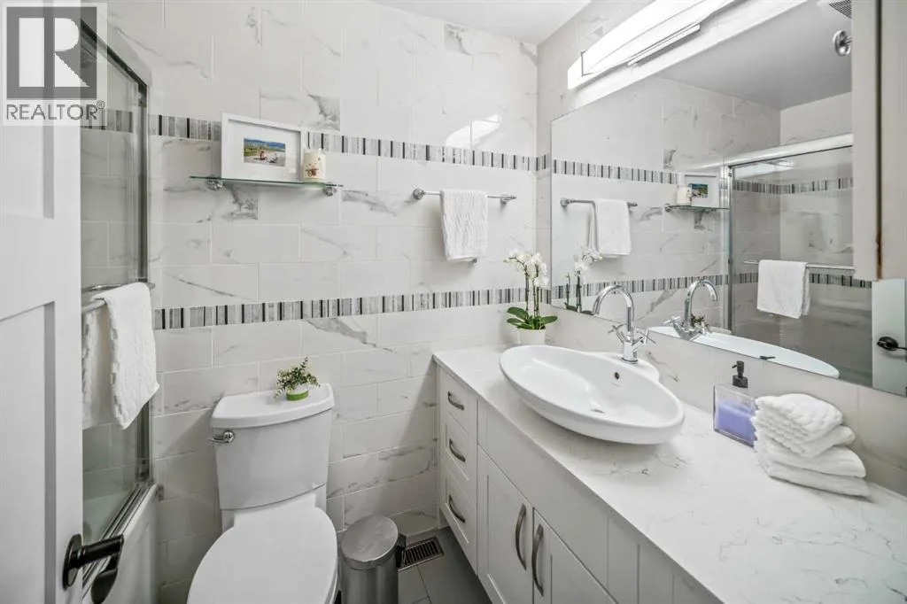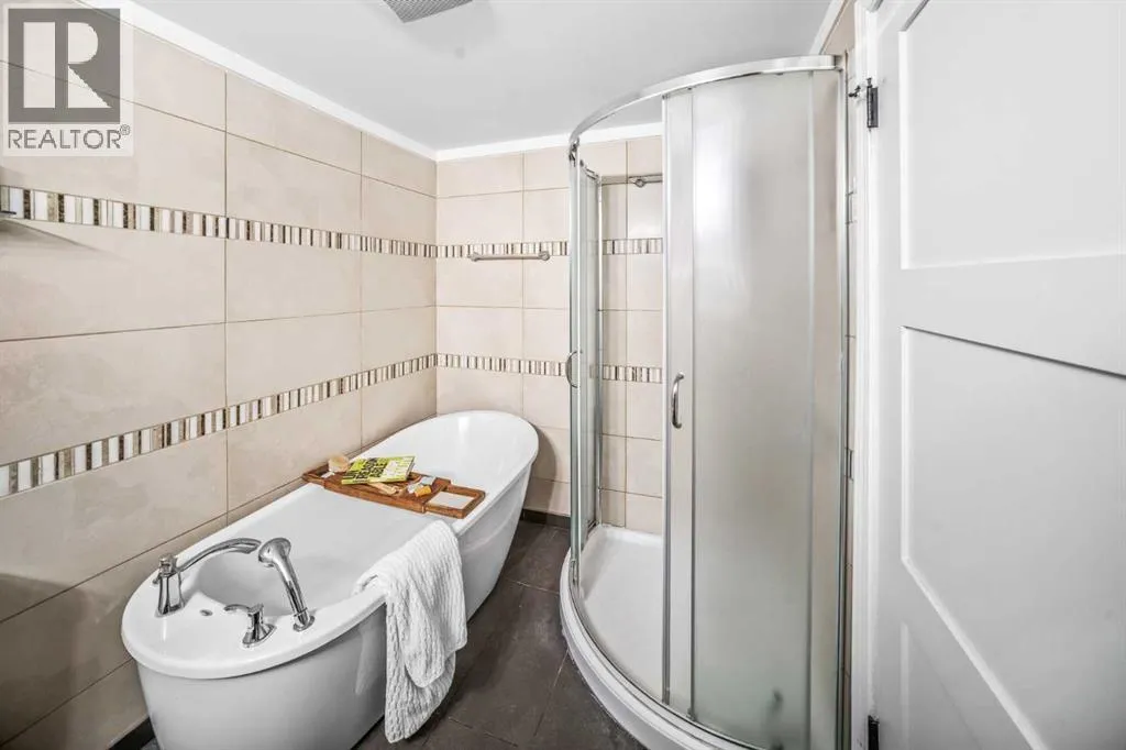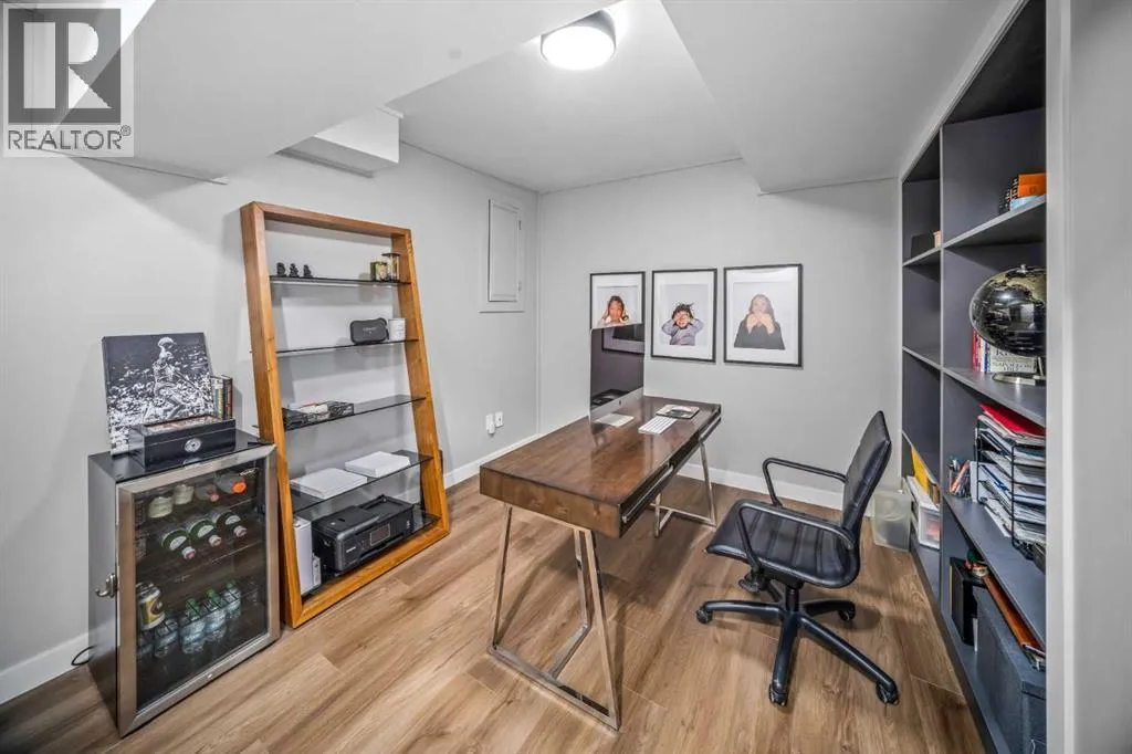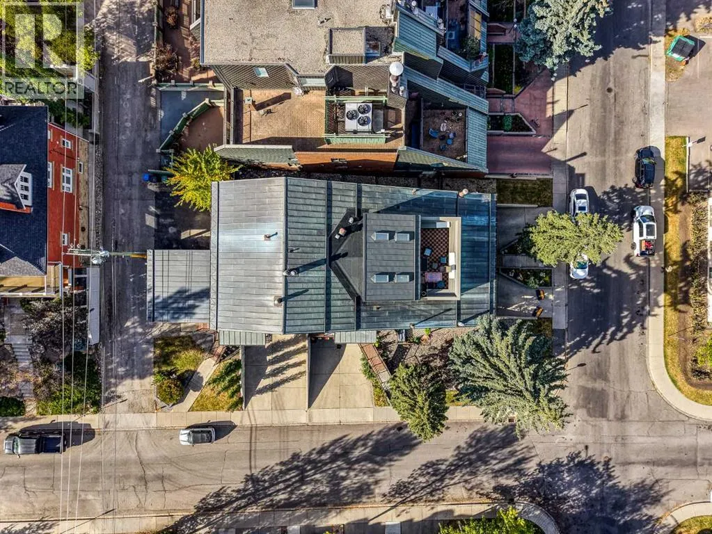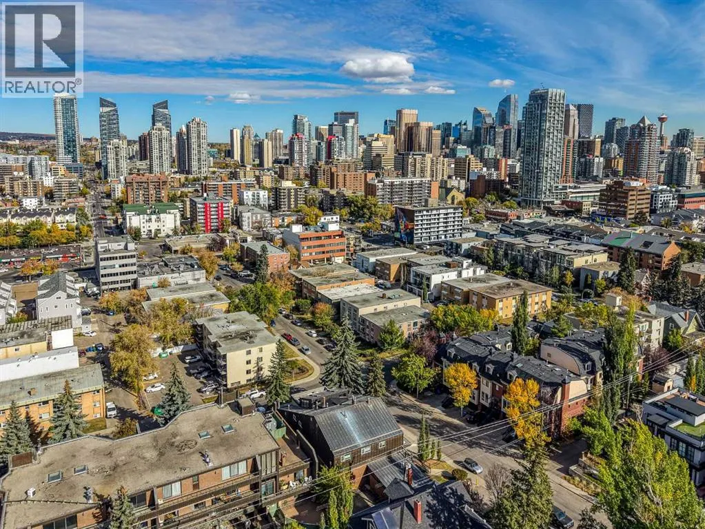 Welcome to Copper Castle â a bold, unique, and one-of a-kind complex in Calgaryâs inner-city. Defined by its copper and brick exterior. This distinctive industrial-modern design is far from your typical townhouse. Quietly tucked between the vibrant 17th Avenue and the prestigious community of Upper Mount Royal this location is truly unmatched. Offering over 1,300 sqft of bungalow-style living, this unit delivers all the modern upgrades in the comfort of single-level living.Inside, an spacious open floor plan. Large triple-pane windows face the front of the unit. The living room is anchored by a modern two-sided gas fireplace, creating warmth and comfort. The generous size dining room flows seamlessly into the contemporary galley kitchen - featuring white shaker cabinetry, stainless steel KitchenAid appliances, subway tile backsplash, and marble-granite countertops. Through the kitchen is your walk-in pantry and your main-floor laundry room.Both bedrooms are generously sized. The primary features a walk-in closet and a fully tiled 4-piece ensuite, complete with a shower and freestanding soaker tub.A separate stairwell leads directly to your oversized garage (with driveway), providing exceptional storage and parking flexibility. At the rear of the garage â a recently updated flex space that creates the perfect setup for a home office, gym, or creative studio. Additional storage space is found in the utility room. This home is also equipped with central AC and a newer hot water tank (2021). Whether you're looking to downsize or if you are buying your first home, this home is one you wonât want to miss. Book your showing today! (id:27476)