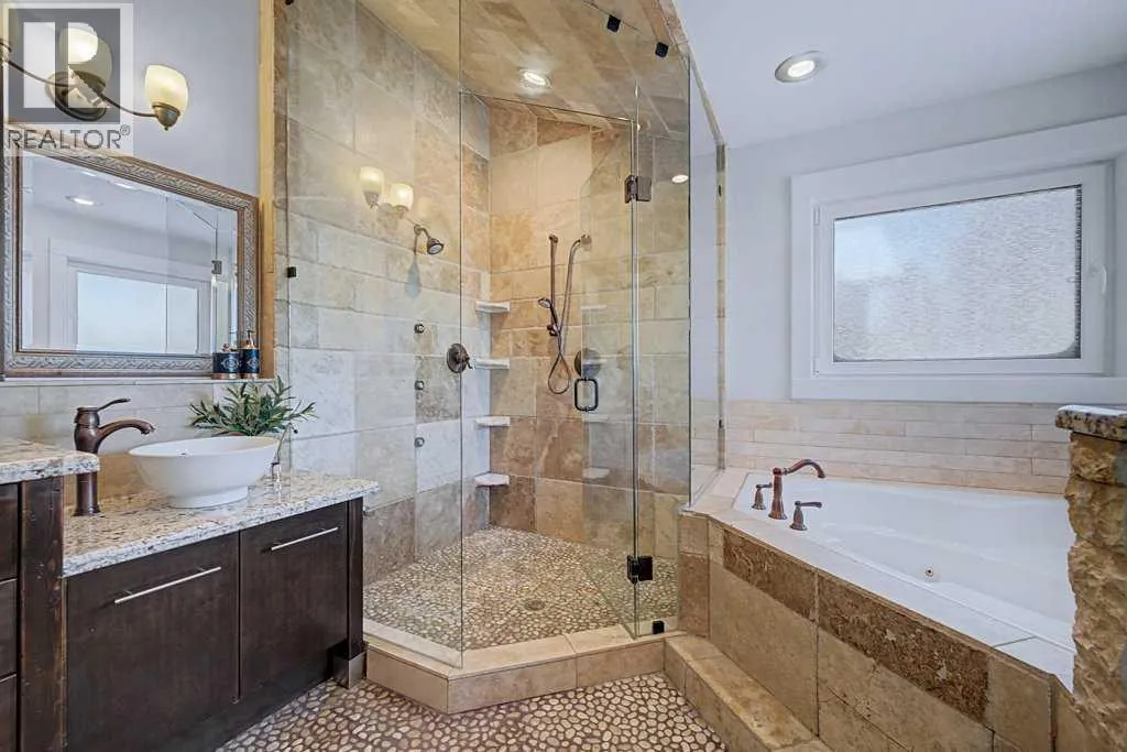 Luxury, location, and exceptional craftsmanship come together in this remarkable 3,650 sq. ft. estate home, ideally situated just steps from the prestigious Winston Golf Course and surrounded by beautiful green space and pathways, all while being only 10 minutes to downtown. This is a rare opportunity to own a home that offers not only stunning design but incredible value for money at this price point. From the moment you enter the grand, newly expanded front foyer, you are greeted by soaring 9- and 12-foot coffered ceilings, rich Brazilian cherry hardwood floors, natural stone, granite, and striking copper accents that create warmth and timeless sophistication. Over $200,000 in recent renovations have elevated this home even further, including all-new European windows and doors that flood the space with natural light, a dramatic elongated marble fireplace that anchors the main living area, and app-controlled LED lighting throughout the home that allows you to customize the ambiance with the touch of a button. The European-inspired gourmet kitchen is both refined and welcoming, designed for gathering and entertaining with its generous sit-up island, semi-formal dining space, and open-concept layout that flows effortlessly into the cozy living area. Two oversized copper sinks add distinctive character, while the custom millwork and curated finishes speak to the quality of construction throughout. A breathtaking curved travertine staircase featuring marble floors and copper spindles leads to the upper level, where an open office or media lounge provides flexible family space alongside four spacious bedrooms. The primary suite is a true retreat, offering a spa-inspired ensuite complete with a stone steam shower, heated pebble flooring, and a large walk-in dressing room designed for everyday luxury. An upper-level TV area adds yet another comfortable space to unwind. The fully developed lower level continues the homeâs vintage, high-end character with a custom wine room , inviting lounge, workout or yoga room, and heated acid-stained concrete floors that create a warm and intimate atmosphere for relaxing or hosting guests. Outside, the large backyard is bathed in natural sunlight and features a new expansive deck and hot tub, making it perfect for summer evenings and year-round enjoyment. An oversized attached garage adds practicality to this exceptional property. Captivating in character, meticulous in craftsmanship, and thoughtfully upgraded throughout, this home delivers a rare blend of luxury, warmth, comfort, and location. Opportunities like this â especially so close to the coveted Winston Golf Course. If your looking for a cookie cutter, this isn't it. (id:27476)