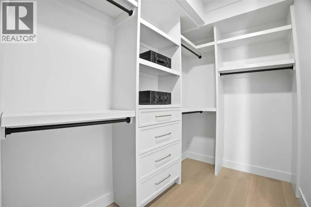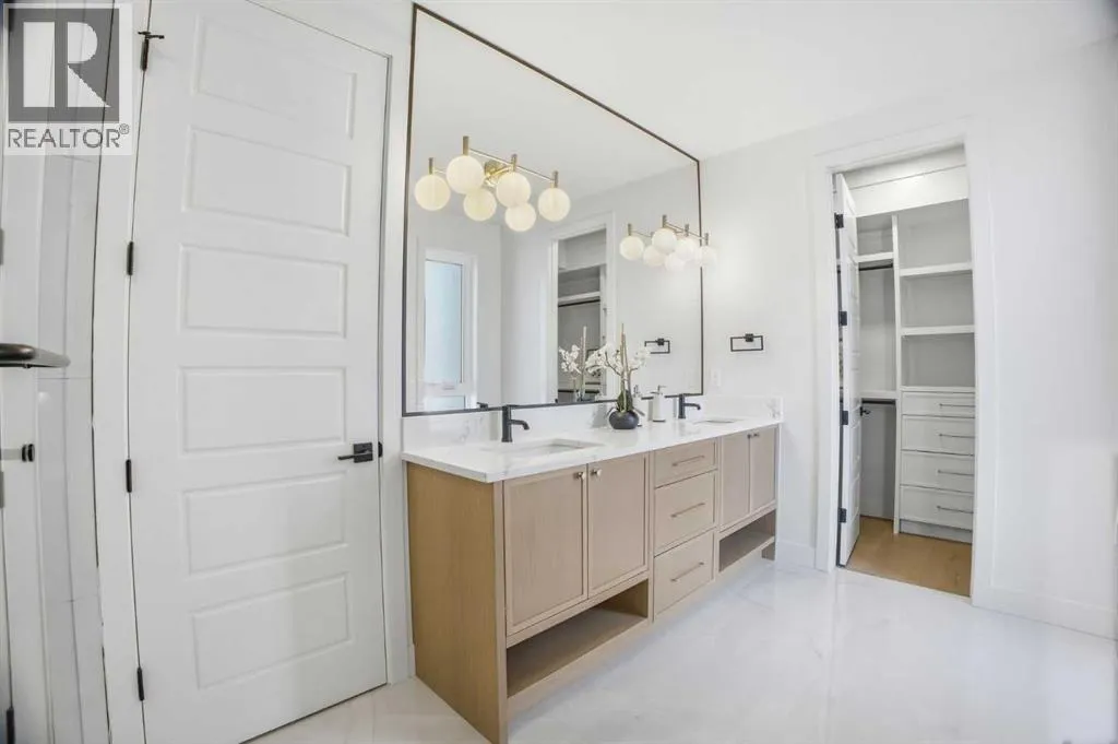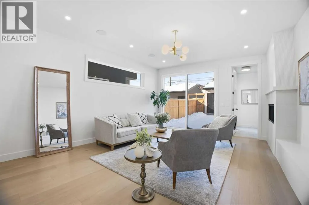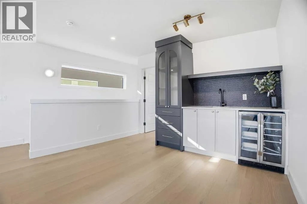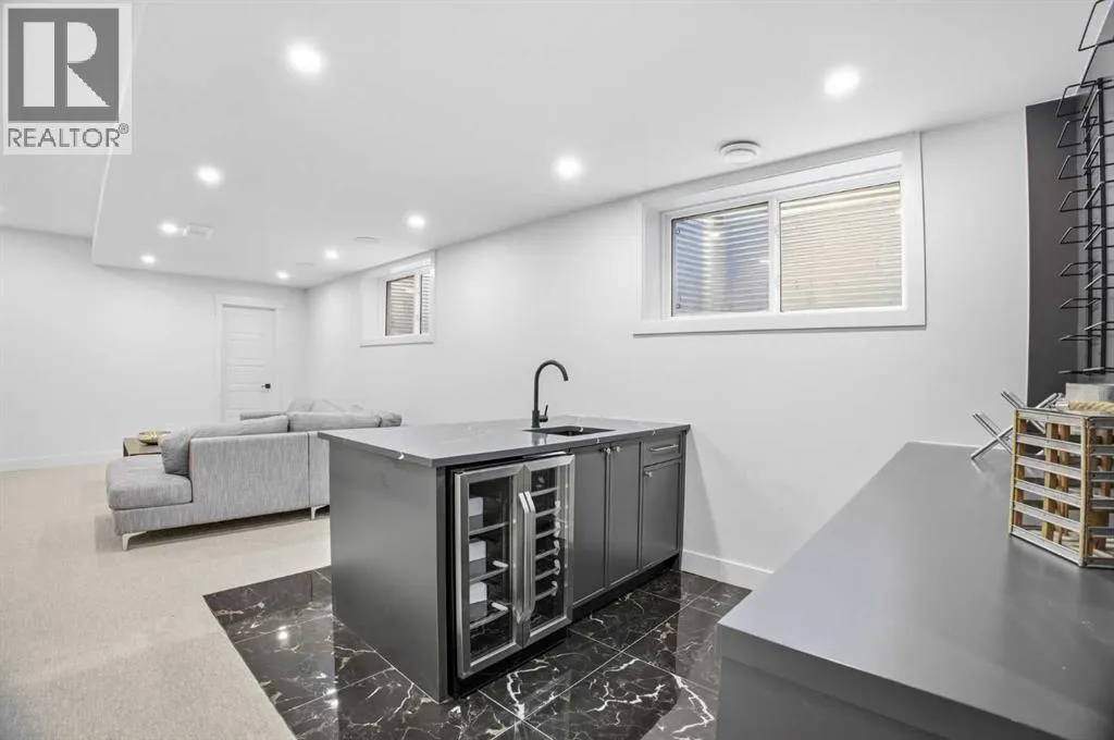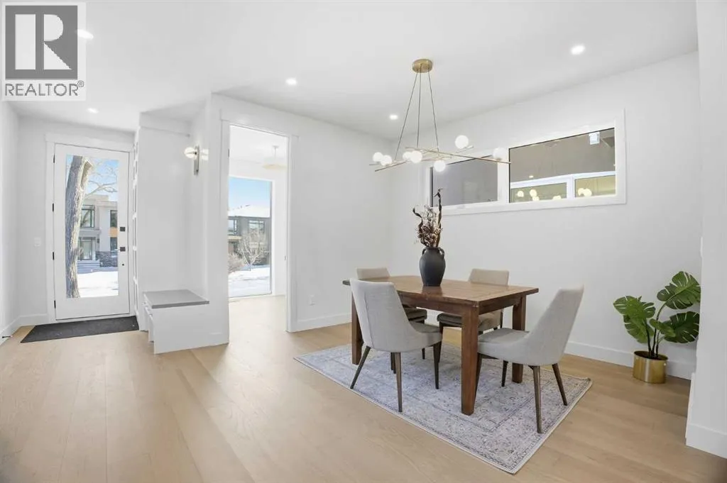 Located on a quiet street in sought after Richmond and situated on an extra deep 135â lot allowing extra back yard space, this newly built and beautifully curated 4+1 bedroom residence offers panoramic views and over 4,200 sq ft of exceptional living space. The open, airy main level features hardwood floors, soaring ceilings, and an abundance of natural light. A stylish dining area with a designer fixture provides generous space for hosting, while the tastefully finished kitchen impresses with quartz countertops, a large island/eating bar, extensive storage, and high end appliances. The living room is anchored by a striking feature fireplace and custom built ins. A dedicated den/office is tucked just off the foyerâideal for working from home. Completing the main level are a 2 piece powder room and a well appointed mudroom with built in bench and storage. The second level hosts three spacious bedrooms, a 5 piece Jack & Jill bath, and a laundry room with sink and ample cabinetry. The expansive primary retreat captures gorgeous views and includes a private balcony, dual walk in closets, and a luxurious 5 piece ensuite with dual sinks, a freestanding soaker tub, and a glass enclosed shower. The third level offers a versatile loft with access to a large west facing deck and a convenient wet barâperfect for a media room, studio, or additional office space. A generous bedroom with its own 4 piece ensuite is ideal for guests. The fully developed basement is designed for entertaining, featuring a spacious family/media room with wet bar and wine storage. A fifth bedroom, 4 piece bath, and dedicated storage room complete the lower level. Additional highlights include rough in for air conditioning and built in speakers. Outside, enjoy the sunny west facing backyard with a patio and access to the double detached garage. This prime location offers close proximity to schools, shopping, vibrant Marda Loop, public transit, and effortless access to Crowchild Trail. (id:27476)