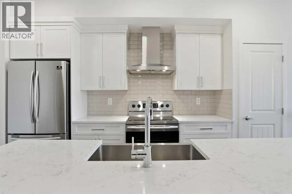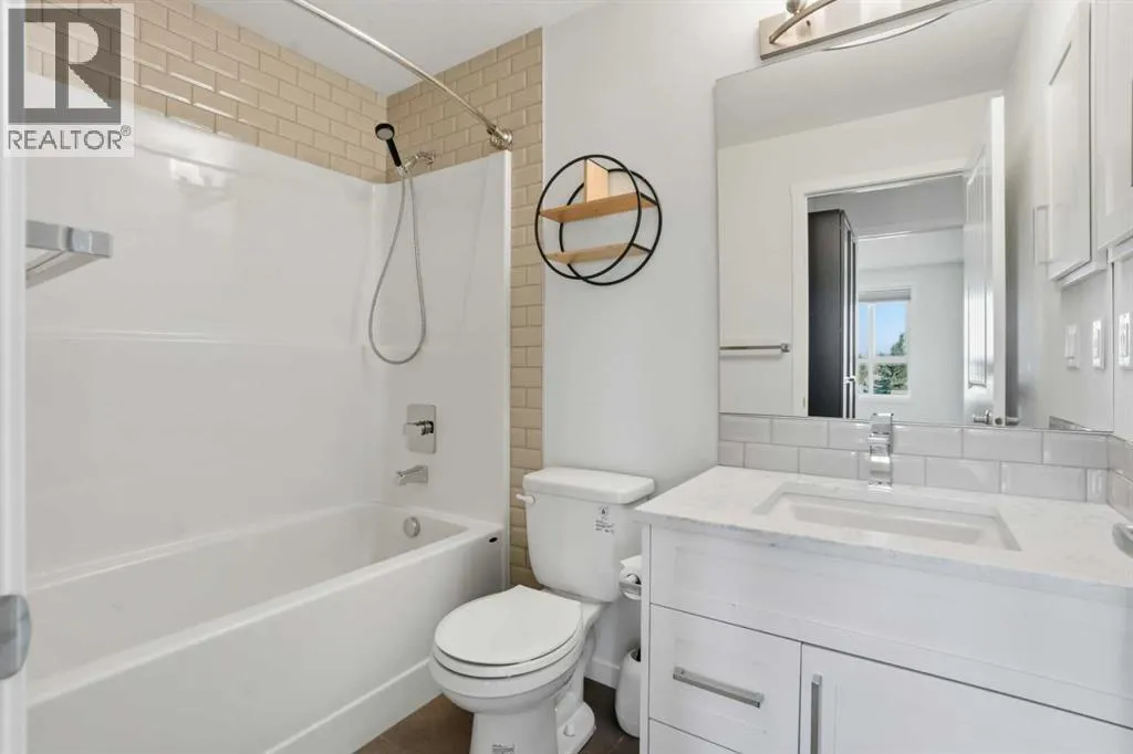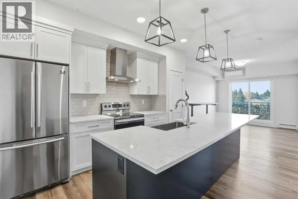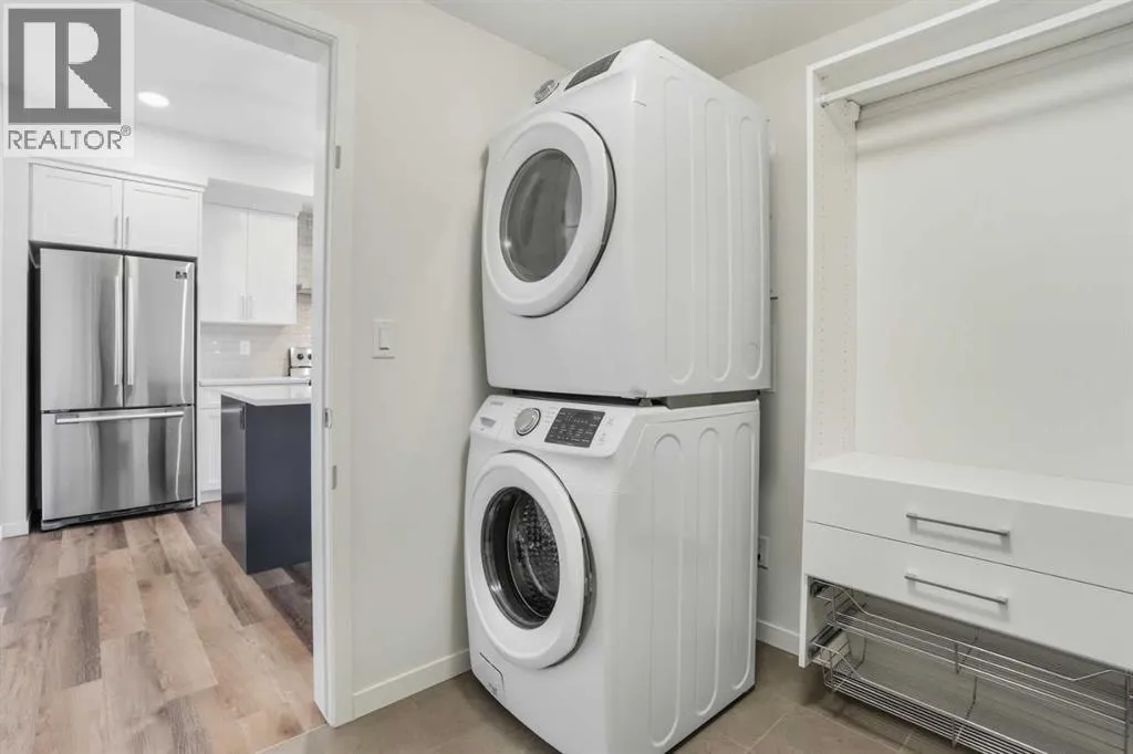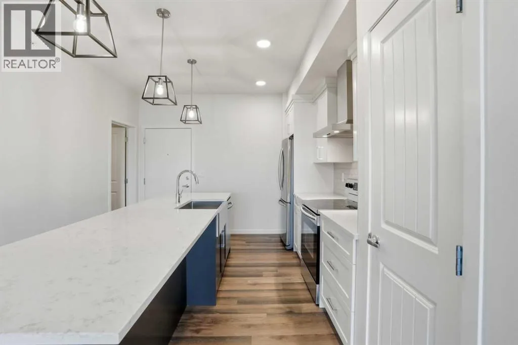 Available for immediate possession! Don't miss your opportunity to own this BRIGHT, TOP FLOOR CONDO featuring stylish vinyl flooring, upgraded finishes, AC, and custom California Closets! The beautifully upgraded kitchen features quartz countertops, stainless steel appliances, large undermount farmhouse sink, full pantry, and an island with a UNIQUE 2-SIDED BREAKFAST BAR that offers table-style dining rare for this type of condo! The primary bedroom is complete with a customized walk-in closet! A full bath serves the primary bedroom and guests. Youâll love the extra storage space and custom shelving in the spacious laundry room! This unit comes with 2 titled parking spaces (one underground, one above ground stall) and a convenient assigned storage locker. Just steps to many community parks, ponds, tennis courts, and playgrounds, and a short drive to The Golf Centre at Harvest Hills. This great location will have you driving just 10 minutes to the Calgary Airport, 20 minutes to downtown, and 5 minutes to the Stoney Trail ring road. (id:27476)