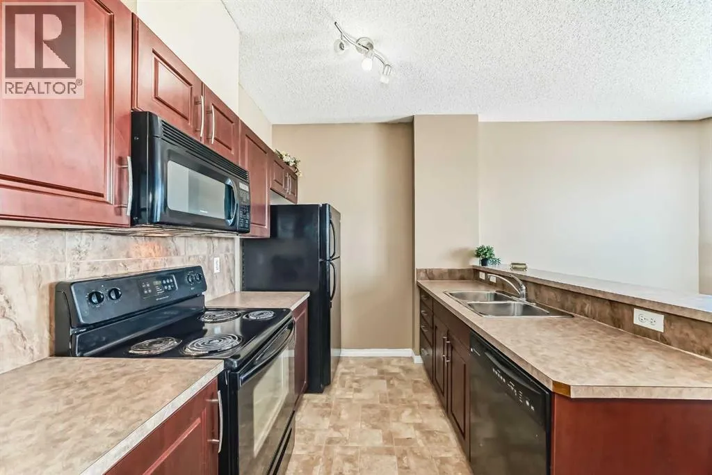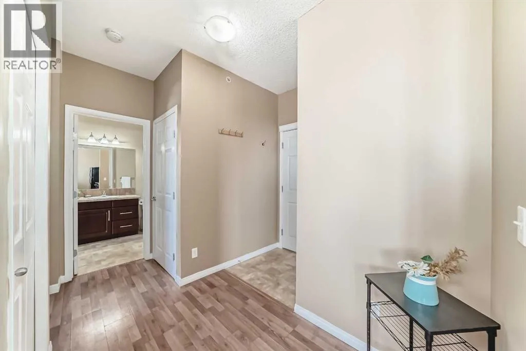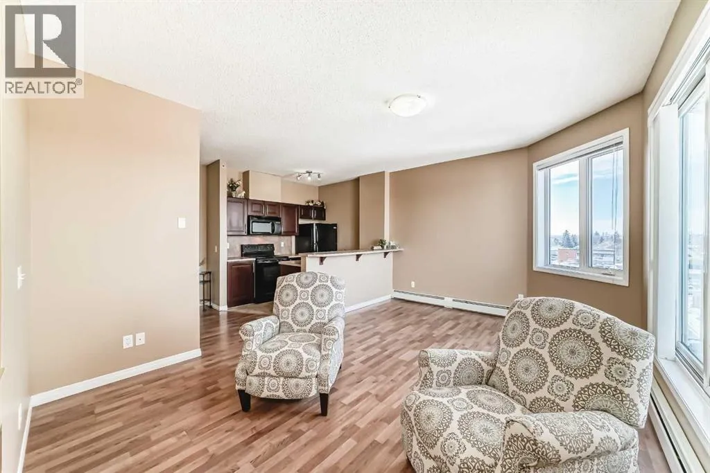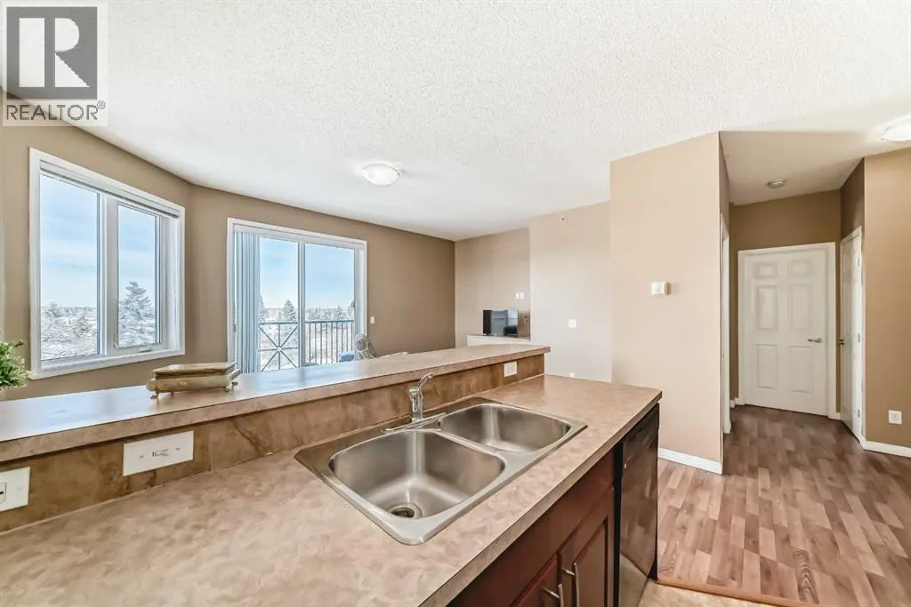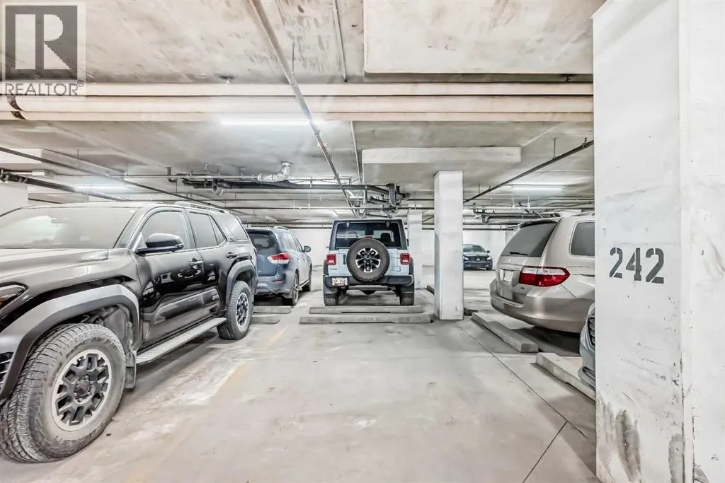 ** Price Reduced from $197,999 to $194,900**. Discover elevated urban living in this bright and beautifully maintained one-bedroom corner condo at Bella Casa. Perched on the top floor, this spacious unit boasts a thoughtfully designed open-concept layout with 9-foot ceilings and an abundance of natural light throughout.The well-appointed kitchen offers generous cabinetry and a raised breakfast bar that flows seamlessly into the inviting living room, complete with a cozy electric fireplaceâperfect for relaxing evenings at home. Step onto your private balcony and take in stunning panoramic views of downtown Calgary and the Rocky Mountains.The oversized primary bedroom features a convenient walk-through âHis & Hersâ closet leading to a full 4-piece bathroom, combining comfort and functionality. This home also includes titled underground parking, along with visitor and accessible parking for added convenience.Residents of Bella Casa enjoy access to a beautifully landscaped central courtyard with a gazebo and BBQ areaâideal for entertaining or unwinding outdoors. This pet-friendly building (with board approval) is perfectly situated near shopping, dining, and transit, offering quick and easy access to downtown Calgary.Condo fees cover all utilities except electricity, making budgeting simple. Immediate possession is availableâdonât miss your chance to call Bella Casa home. (id:27476)