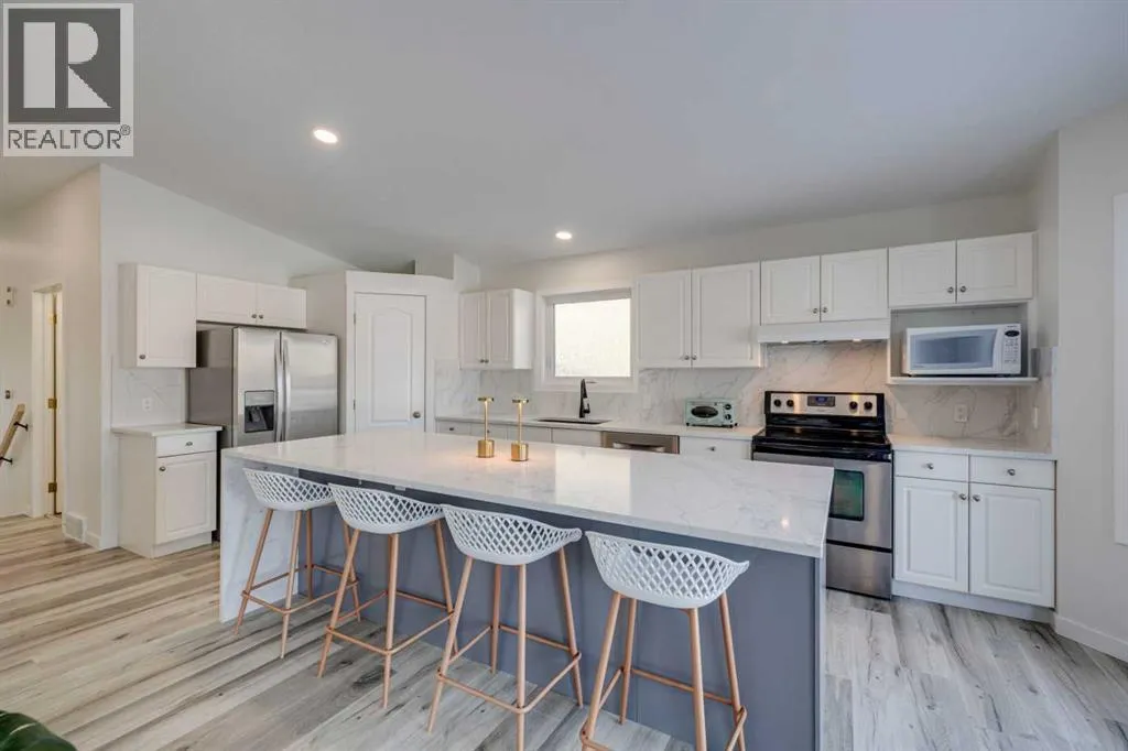 Welcome to this immaculate, fully renovated bungalow in the highly sought-after community of Somerset. From the moment you arrive, the pride of ownership and meticulous attention to detail are unmistakable, showcasing the exceptional care this home has received.Ideally situated backing onto a park and just steps from schools, playgrounds, and everyday amenities, including excellent restaurants. This property also offers convenient access to both Macleod Trail and Stoney Trail, making commuting a breeze.Vaulted ceilings elevate the bright and airy main floor, where a thoughtfully designed layout blends comfort with modern style. The spacious primary retreat features a private 4-piece ensuite, while a versatile front-facing flex room provides the perfect space for a home office, playroom, or optional additional bedroom. Every room reflects a move-in-ready finish, offering a seamless transition for the next fortunate homeowner. Extensive updates completed between 2022 and 2025 (see supplements for the full list of improvements) ensure peace of mind and lasting value. The sun-filled kitchen is designed for both entertaining and daily living, highlighted by a corner pantry, a generous 9-foot island, and elegant French doors that open onto the back deckâcreating a natural extension of your living space. The fully finished basement continues the homeâs bright, open feel with large new triple-pane windows and a flexible layout. This level includes a spacious family room, a full bathroom, ample storage, one large bedroom, and an additional bedroom currently set up as a home gym, ideal for growing families or guests. Outside, the low-maintenance backyard is truly an entertainerâs retreat. Enjoy the beautifully crafted deck and built-in stone firepit, perfect for summer gatherings, evening relaxation, or simply taking in the peaceful park views behind you. With its extensive upgrades, thoughtful design, and prime location, this exceptional bungalow offers the perfect balance of luxury and everyday comfort. Homes like this one rarely become available in Somerset. Donât miss your opportunity to call one of Calgaryâs most welcoming communities home. (id:27476)