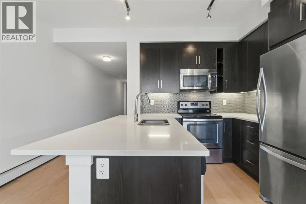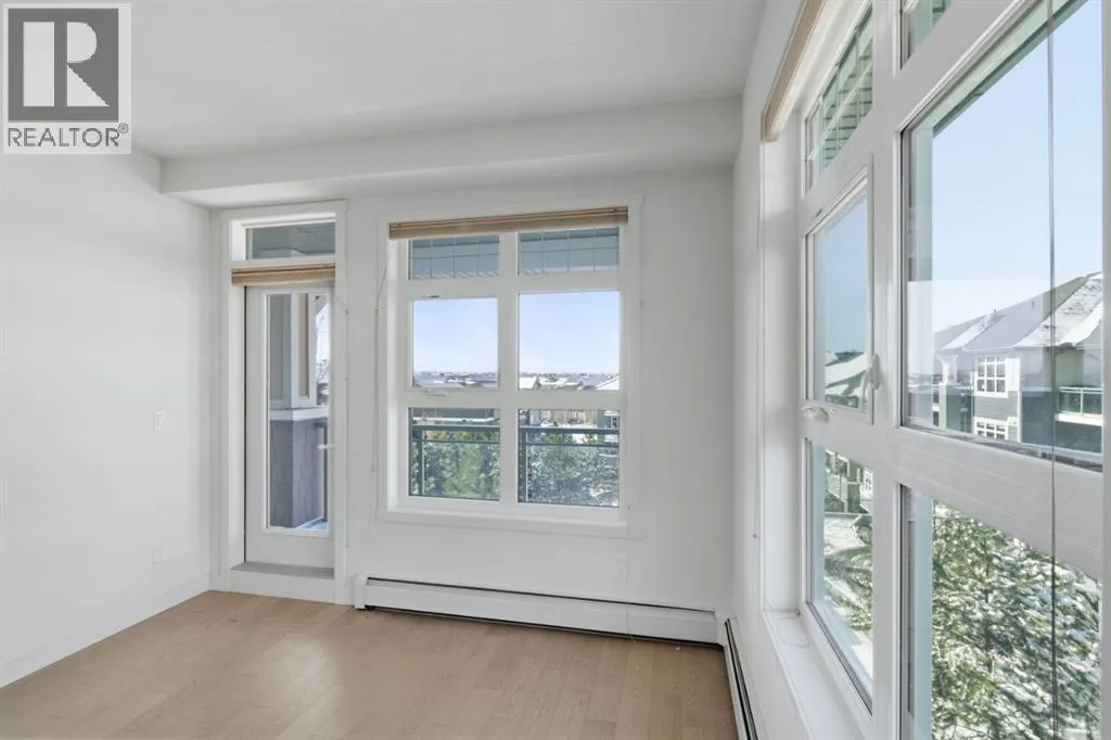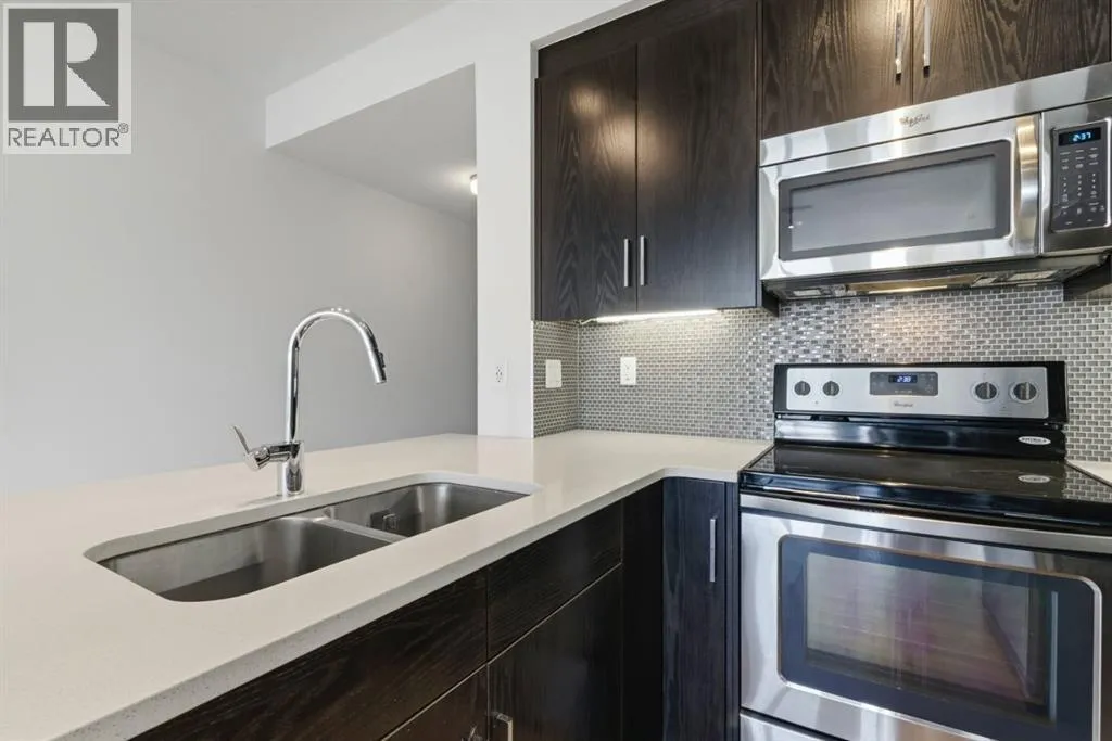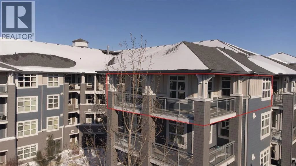 Welcome to one of the best layouts in Canoe at Auburn Bay, a 934 SQ. FT. top-floor corner condo flooded with natural light and offering stunning courtyard and mountain views. The showstopper? A massive 190 SQ. FT. WRAP-AROUND COVERED BALCONY with gas line, giving you extended outdoor living space and panoramic exposure you simply donât get with standard units. Inside, enjoy 9â ceilings, extra-tall windows, luxury wide-plank engineered flooring, and a smart open-concept design with a dedicated office nook. The kitchen impresses with quartz countertops, full-height tile backsplash, soft-close cabinetry, under-cabinet lighting and a peninsula perfect for entertaining. The spacious primary suite features its own private ensuite, while the second bedroom and full bath offer flexibility for guests, roommates, or work-from-home living. Added value includes 2 TITLED underground parking stalls, assigned storage cage, and in-suite laundry. Plus, enjoy exclusive access to Auburn Bayâs private lake lifestyle where you can enjoy the beach, splash park, tennis courts, fishing pier, skating rink, fitness equipment, and year-round community events. Top-floor corner units with wrap-around balconies and TWO parking stalls are rare! Don't miss out. (id:27476)