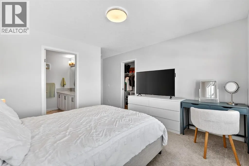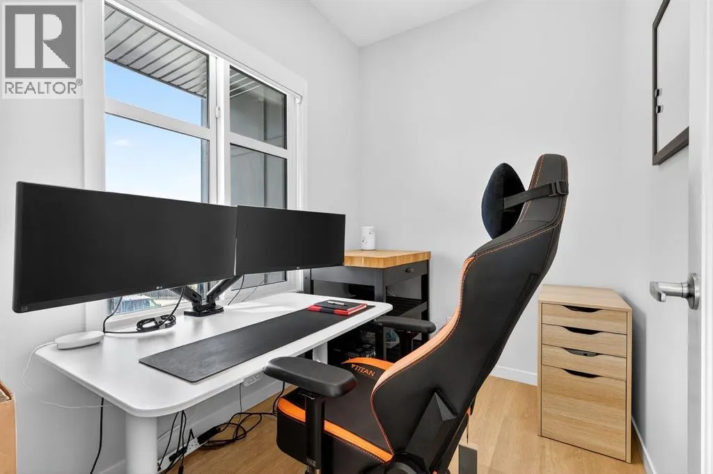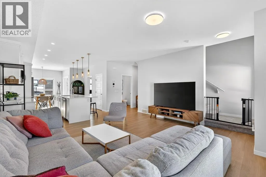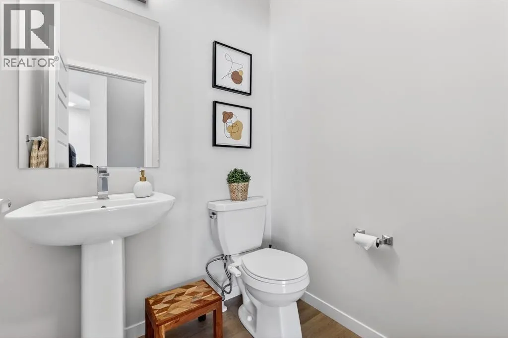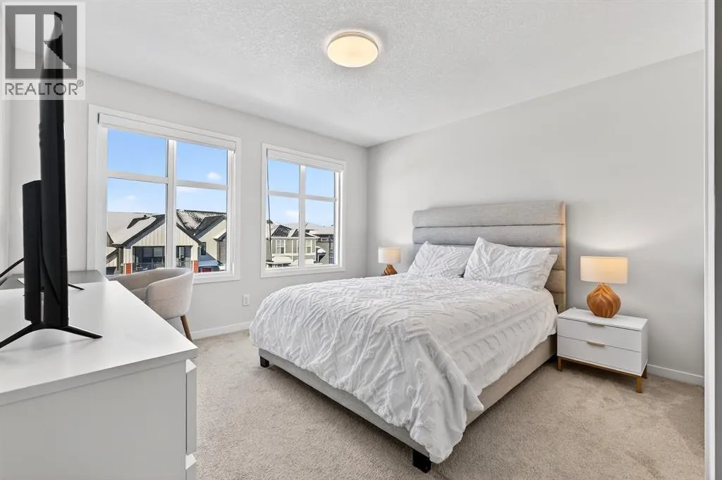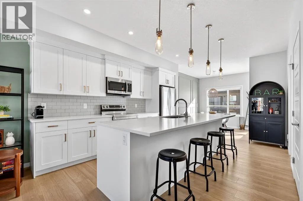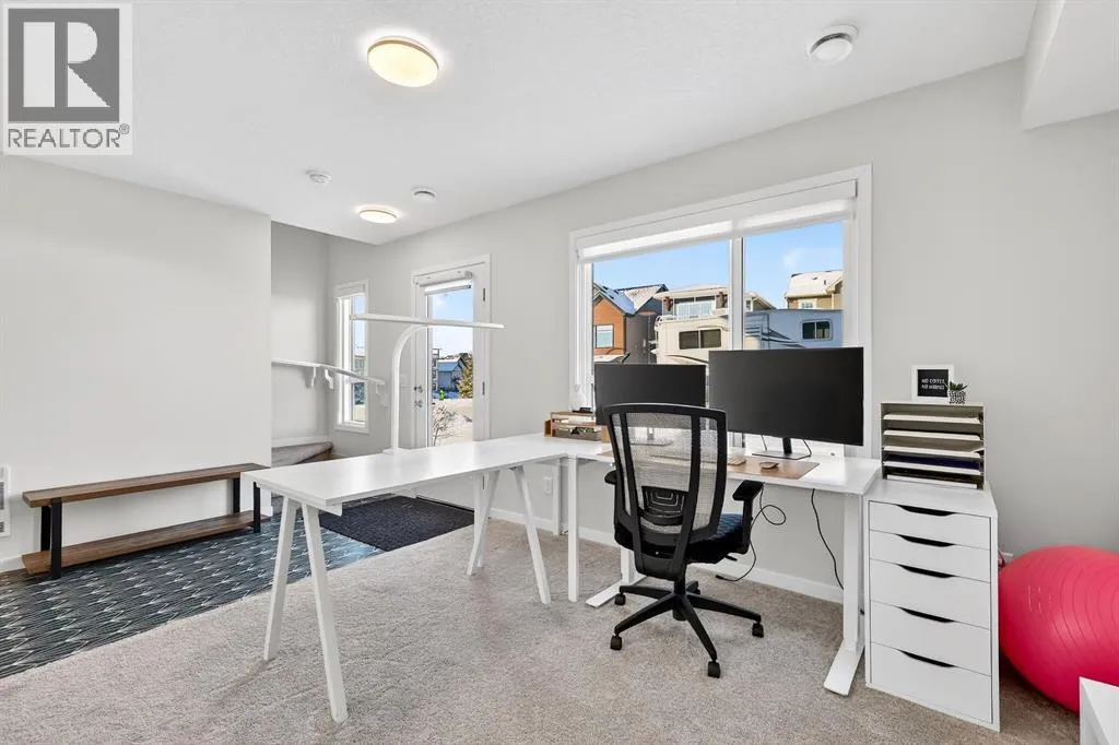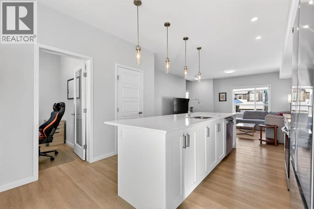 Welcome to Cranston, where light, space, and modern design converge in a 2022-built townhome that feels as elevated as it is effortless. Offering 1,876 square feet of above-grade living space, this impeccable residence invites you to step into something more refined - where clean architectural lines, thoughtful upgrades, and serene pond views quietly signal that youâve found the one. From the moment you enter, a versatile flex space on the first level unfolds with possibility, ready to become your home gym, studio, executive office, or private retreat. Upstairs, 9-foot ceilings and an open-concept layout create a sense of expansiveness, while natural light beams through both east and west-facing windows, illuminating the luxury vinyl plank flooring. The kitchen is both refined and functional, featuring stainless steel appliances, full-height cabinetry, a large pantry, and a breakfast bar island that naturally becomes the heart of the home. An enclosed office overlooking the glass-railed balcony offers an inspiring workspace with serene pond views, while the balconyâs gas line makes outdoor entertaining effortless. A roomy half bath completes this thoughtfully designed level.The third floor delivers privacy and comfort, with a spacious laundry room offering additional storage and a west-facing primary bedroom that captures warm afternoon light. The deep walk-in closet and elegant ensuite - complete with dual sinks, quartz countertops, and an oversized shower - create a daily ritual of calm and convenience. Two additional generously sized bedrooms share a well-appointed four-piece bathroom, providing flexibility for family or guests. Beyond aesthetics, this 2022-built Cranston townhome is equipped for the future with a brand new air conditioner, hot water on demand, a heat recovery ventilator, fibre optic high-speed internet, and an oversized insulated double attached garage with a double driveway comfortably fitting four vehicles. The garage is already equipped wit h an electrical panel for a future EV charger, blending practicality with forward-thinking design. Visitor parking within the complex and additional street parking ensure convenience for guests, while pet-friendly policies with board approval make it easy to bring every member of the family home. Overlooking a scenic wet pond and located near the river pathways of Fish Creek Park, shopping, schools, and everyday amenities, this home offers easy access to the ring road and Deerfoot Trail, connecting you seamlessly to the rest of Calgary. (id:27476)