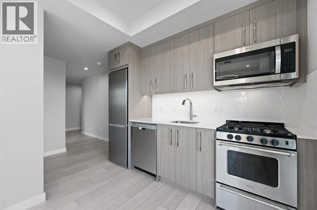 Experience modern city living at Frontier, Trumanâs newest boutique development in the heart of Kensingtonâone of Calgaryâs most vibrant and connected neighbourhoods.This thoughtfully designed 1-bedroom, 1-bathroom home offers a smart layout that blends style with functionality. The sleek kitchen boasts quartz countertops, full-height cabinetry, and stainless steel appliances, flowing seamlessly into a bright open-concept living space. A standout feature of this unit is its serene view of the landscaped inner terraceâa rare urban retreat that brings natural greenery and calm right to your window. The bedroom is bright and welcoming, while the bathroom features clean lines and high-quality finishes for an elevated everyday experience.Frontier residents enjoy exclusive amenities including a landscaped outdoor terrace, state-of-the-art fitness centre, modern co-working spaces, and secure bike storageâideal for those seeking both convenience and lifestyle.Just steps from boutique shops, cozy cafés, acclaimed restaurants, river pathways, LRT stations, and the downtown core, this location places the best of Calgary right at your doorstep.*Photos are of a similar unit. (id:27476)