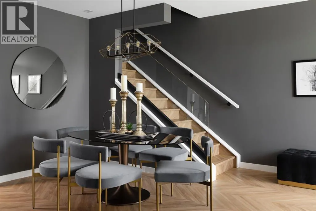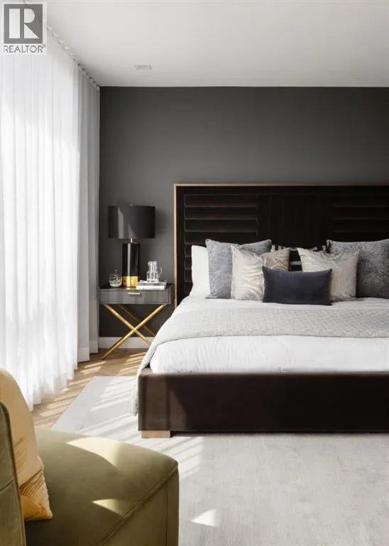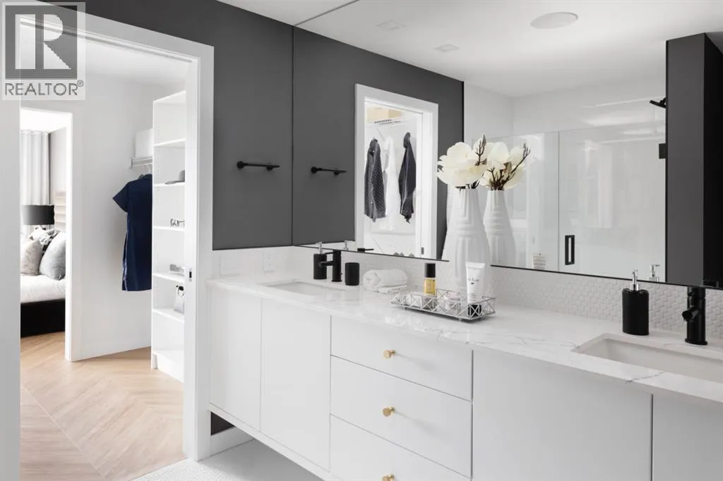 Welcome to Gateway, located in the vibrant, master-planned community of West District. This stunning concrete-constructed, two-level brownstone offers an exceptional combination of modern elegance and everyday convenience. Featuring 3 bedrooms, 3 bathrooms, plus main floor den, upper floor bonus room and the added bonus of 2 titled underground parking stalls, this home is the epitome of sophisticated urban living. Step inside to experience unparalleled craftsmanship and luxurious details at every turn. Year-round comfort is ensured with air conditioning, while Chevron wide-plank luxury flooring adds a touch of refinement throughout. Each bathroom is a spa-like retreat, enhanced by custom penny round mosaic tiles. The painted ceilings further elevate the ambiance, giving every space a polished and refined feel. The chef-inspired kitchen is the heart of this home. With its super matte finishes and striking brushed gold hardware, the kitchen is both stylish and functional. High-end appliances, including a gas cooktop, wall oven, and a spacious 36" Fisher & Paykel integrated fridge, make meal prep a pleasure. The paneled dishwasher, soft-close custom cabinetry, under-cabinet lighting, and quartz countertops with a matching backsplash complete this elegant culinary space, perfect for both cooking and entertaining. Designed with both comfort and practicality in mind, the open-concept floor plan features floor-to-ceiling windows that flood the home with natural light. These expansive windows open to a private patio, creating seamless indoor-outdoor living. The primary suite offers its own private balconyâideal for enjoying a quiet morning coffee or a peaceful evening sunset. Two additional bedrooms, full bathroom, and versatile workspace complete the upper level. Additional conveniences include an in-suite washer and dryer, making laundry a breeze. Set in an exclusive community, Gateway offers the perfect blend of luxury, location, and lifestyle. Stay tuned for an u pcoming photo gallery that will showcase the beauty and elegance of this exceptional residence. (id:27476)