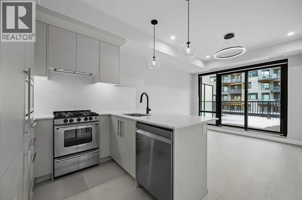 Welcome to Plaza West District by Truman â where urban energy meets community soul in the heart of Calgaryâs most exciting new neighbourhood. This brand-new 2-bedroom, 2-bathroom residence offers thoughtfully designed, open-concept living with contemporary finishes throughout. The bright living and eat up bar area flow seamlessly into a modern kitchen featuring premium appliances and ample storage, making it ideal for both everyday living A large balcony extends your living space outdoors.The primary bedroom includes a well-appointed ensuite, while the second bedroom and additional full bathroom provide flexibility for guests, family, or a home office. This home also includes a titled underground parking stall for secure and convenient access.Residents of Plaza enjoy access to premium amenities, including a fully equipped fitness centre and an ownersâ lounge. Located steps from shopping, dining, and Radio Park, and with convenient access to downtown Calgary, this home offers an exceptional opportunity to live in one of the cityâs most sought-after new urban communities. Live better. (id:27476)