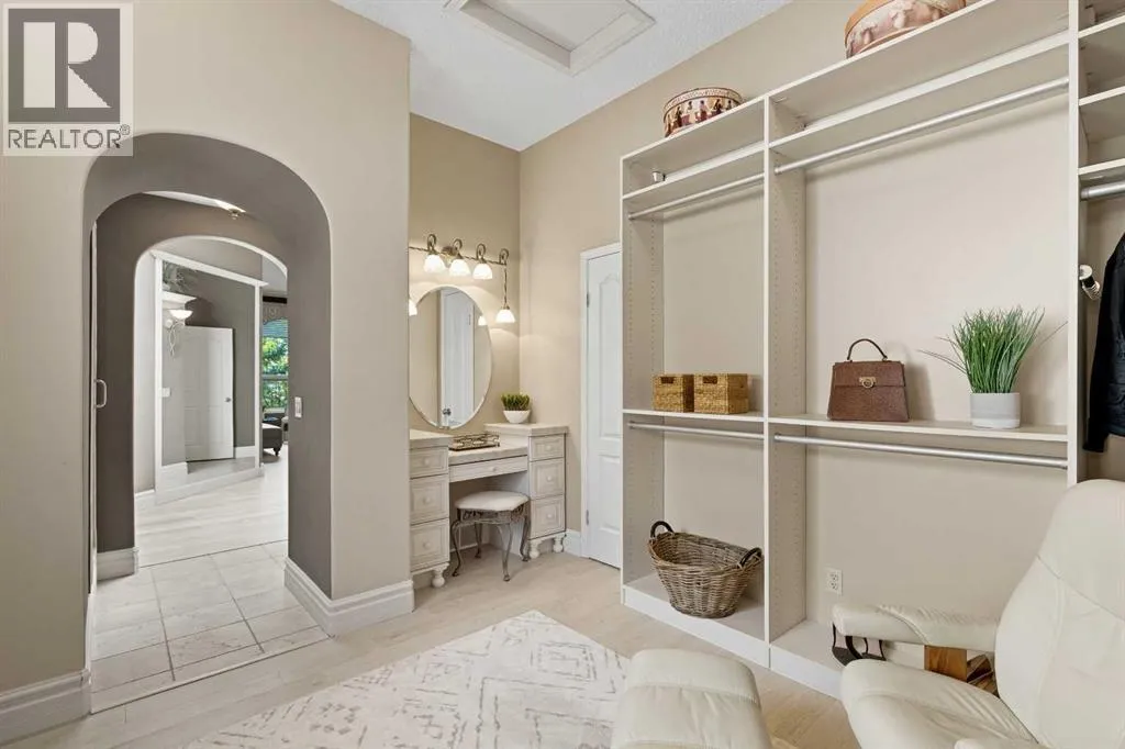 Back on Market again, due to financing! This beautifully maintained estate-style bungalow offers the perfect blend of sophistication, comfort, and practicality, ideal for those ready to embrace a more relaxed lifestyle without sacrificing space or style. From the moment you arrive, youâll be greeted by stunning landscaping with a grand aggregate driveway and lush gardens. Step inside and discover elegant crown moldings, graceful archways, and soaring ceilings that set a tone of timeless luxury. Modern lighting, expansive windows, and brand-new flooring throughout showcase the homeâs open and inviting character. The formal dining room provides the perfect setting for special occasions, while the open-concept kitchen features classic white cabinetry, granite countertops, and a generous island designed for both cooking and conversation. The adjoining living room, with its cozy fireplace and freshly painted walls, is a comfortable yet refined space for everyday living and entertaining. The primary bedroom is a true retreat. A see-through fireplace separates a serene reading nook from the spa-inspired ensuite, where a jetted tub offers indulgent relaxation. The massive dressing room is every divaâs dream, complete with custom shelving, a mounted TV, and a valet door with direct access to the laundry room. The fully developed walkout basement is equally impressive. Nearly floor-to-ceiling windows flood the expansive recreation room with natural light, creating atranquil atmosphere, while the large wet bar makes this level ideal for hosting gatherings. Two oversized bedrooms, including one with a walk-in closet, and a full bathroom provide plenty of space for guests or extended family. Outdoors, the professional landscaping continues with irrigation, low-maintenance mulch gardens, and mature greenery that provide shade and privacy. Both the front and backyard feel grand yet manageable, perfectly suited for those who want beauty without heavy upkeep. Conveniently located c lose to the 201, this one-of-a-kind bungalow delivers timeless charm and modern convenience, all for under a million. This home is more than just a downsizing option. It is a lifestyle upgrade. With thoughtful updates, timeless details, and spaces designed for both relaxation and entertaining, it is the perfect next chapter for those ready to enjoy comfort, class, and convenience without compromise. (id:27476)