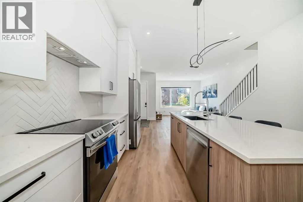 WELCOME TO THIS BEAUTIFUL HOME IN ALTADORE. Experience urban living in one of Calgaryâs most sought-after communities. This newly built 4-plex offers over 2,100 sq. ft. of developed living space, including a thoughtfully designed upper level spanning 1,543 sq. ft.The main floor features a gourmet kitchen with an abundance of cabinetry, quartz counter tops, a breakfast bar for casual dining, and premium stainless steel appliances. The dining area connects seamlessly to the kitchen, creating the perfect setting for entertaining family and friends. Soaring 10-foot ceilings and expansive windows flood the home with natural light, while the spacious living room provides plenty of room for furniture and relaxation. A large mudroom with storage closet and a convenient 2-piece bathroom complete the main floor.Upstairs, youâll find three generously sized bedrooms. The primary suite offers a walk-in closet and a luxurious 4-piece en suite. A full 5-piece main bathroom and upstairs laundry add comfort and convenience.The fully developed basement expands your living space with a spacious recreation room, a generous bedroom, and an additional 4-piece bathroomâperfect for guests or family. This home also includes central air conditioning and a water softener, providing comfort and convenience for all your needs.Enjoy outdoor living in your private fenced front yard, perfect for barbecues, and a fully landscaped lot. The attached single garage features high ceilings, providing ample storage for all your needs.Situated in the heart of Altadore, this residence offers easy access to an array of amenities. Stroll to local shops, cafes, and parks, with quick connections to 33 Avenue, 14 Street, Crowchild Trail, and 17 Avenue. River Park, Riverdale Park, and the Golf & Country Club are all nearby, making this location truly exceptional. (id:27476)