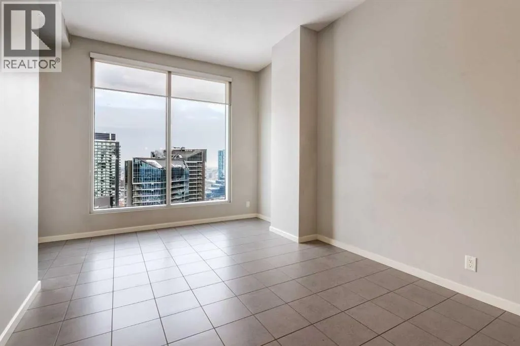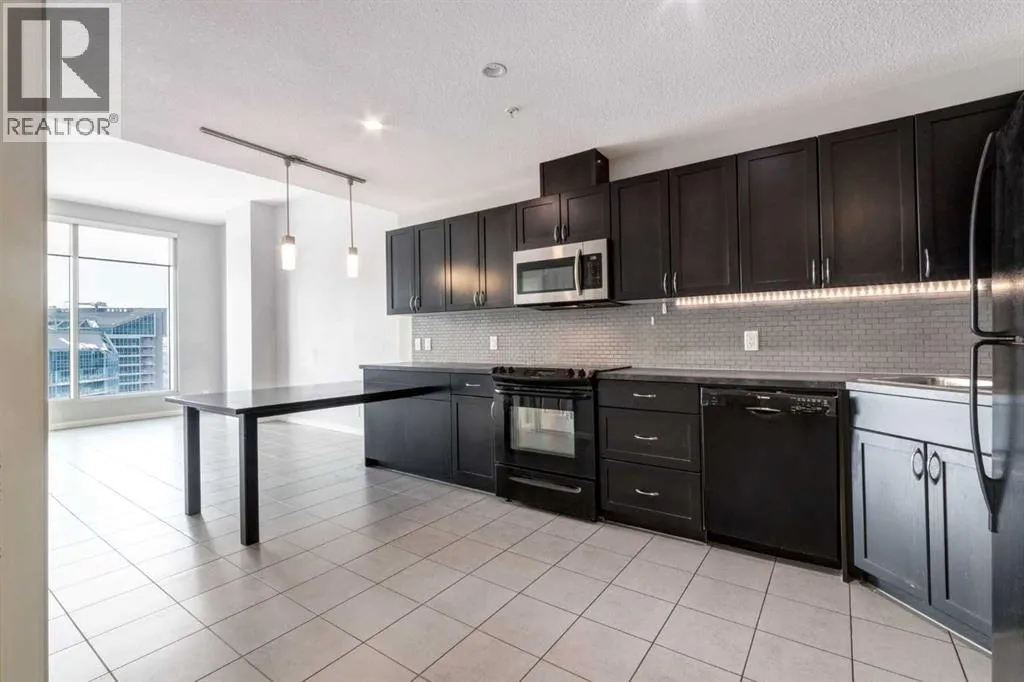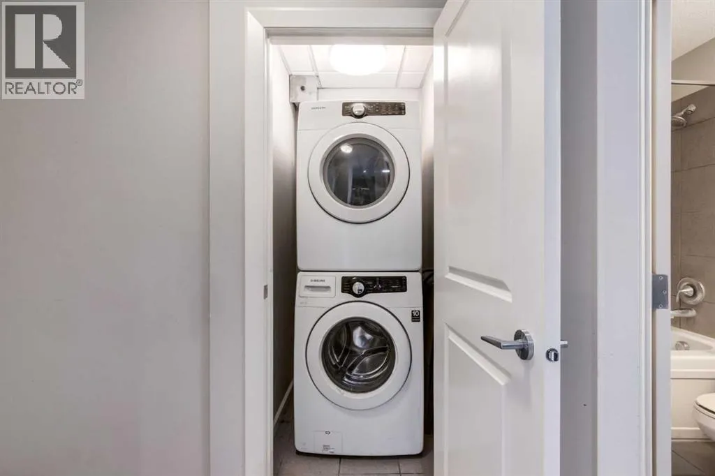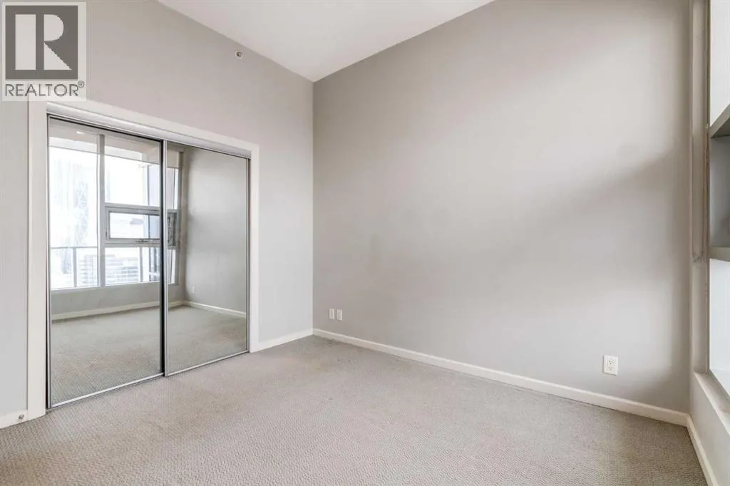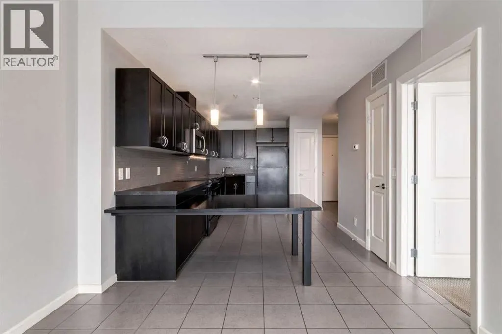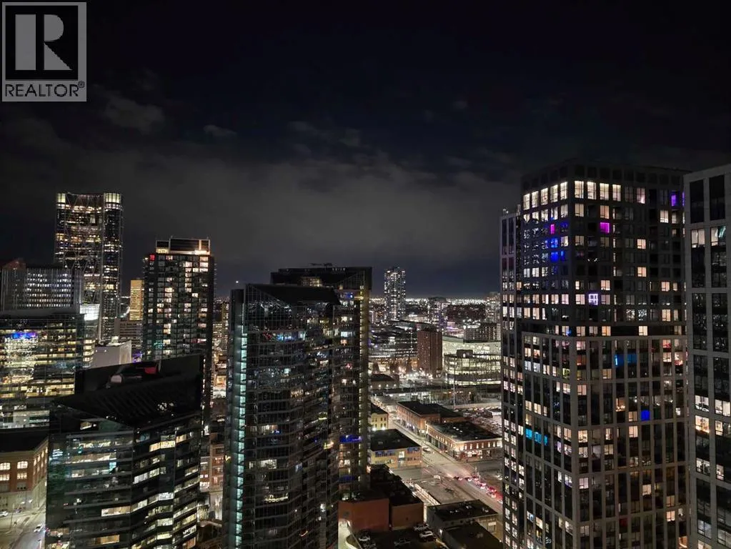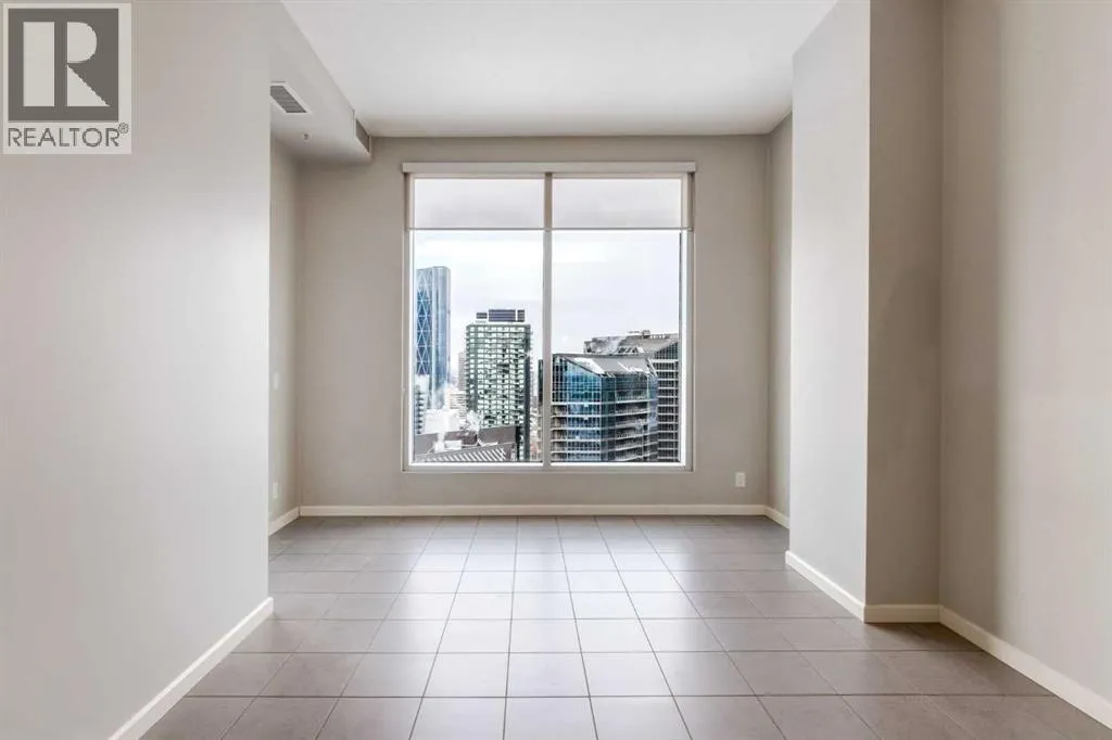 Spectacular Downtown Skyline Views from the 27th Floor! Welcome to this stylish 1-bedroom, 1-bathroom condo offering 589 sq. ft. of modern living space in the desirable Nuera building. Perched on the 27th floor, this home showcases breathtaking 180-degree downtown skyline views, including the Calgary Tower, through stunning floor-to-ceiling windows. The open-concept layout is bright and functional, seamlessly connecting the living and dining areas. The contemporary kitchen features mocha-stained maple cabinetry, mosaic tile backsplash, under-cabinet lighting, and built-in dining table that doubles as a workspace. Step onto your private balcony to enjoy the vibrant city views, or wake up to the skyline from the spacious primary bedroom. Additional highlights include in-suite laundry, a storage locker, and a titled heated underground parking stall. Nuera offers a fully equipped fitness centre and smart HVAC air circulation technology. Ideally located steps from downtown, the BMO Centre, LRT, and the shops and restaurants of 17th Avenue, this home delivers the ultimate inner-city lifestyle. (id:27476)