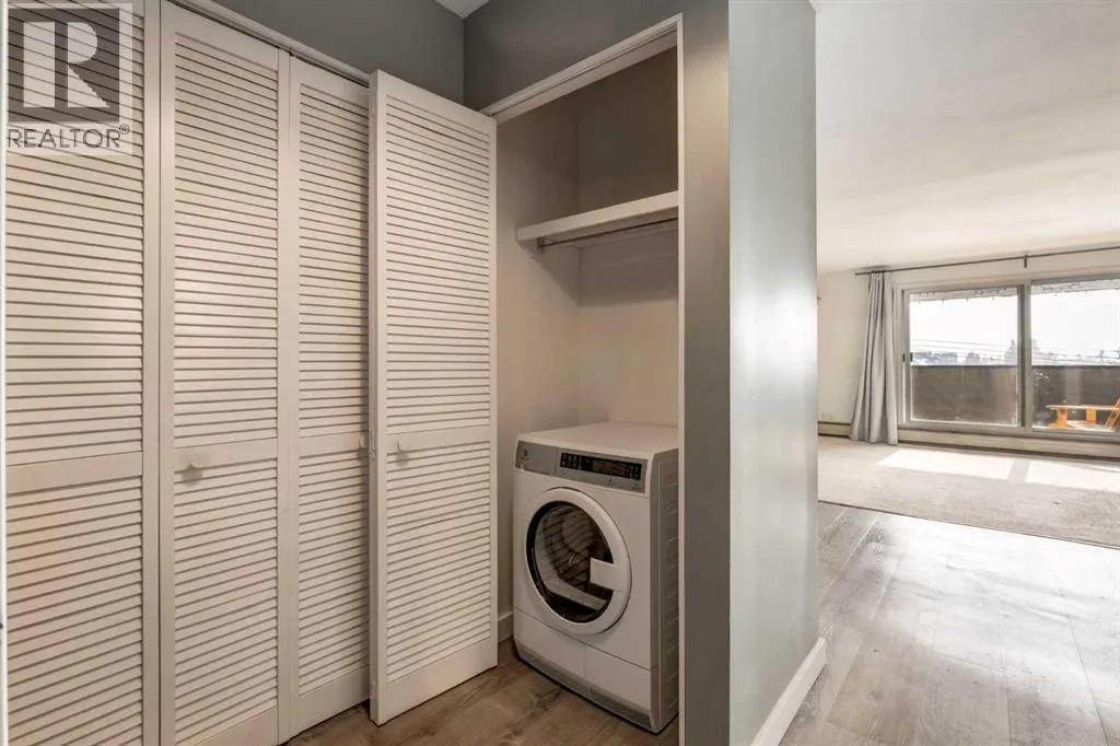 Beautifully renovated, south-facing studio extremely close to vibrant Marda Loop! This bright and stylish home offers an incredible opportunity to own in one of Calgaryâs most sought-after communities at an affordable price. Enjoy a large sunny south-facing balcony, covered parking, and low condo fees in a quiet, well-managed building.Thoughtfully designed to maximize space, the open-concept layout features a spacious foyer with storage, dedicated dining area, and a stunning kitchen complete with stainless steel appliances, including an Electrolux washer with digital display and slim refrigerator/freezer. Designer tile, modern cabinetry, and a fresh colour palette create a contemporary feel throughout. The living area offers custom wraparound bookcase/storage and flows seamlessly into the bedroom space, with plenty of natural light enhancing the integrated layout. There is an assigned storage unit right across the hall from the unit, which is great for your seasonal items.Located just steps to 17 Ave SW, parks, shopping, and minutes to downtown, this is the perfect home for a first-time buyer or anyone seeking a dynamic inner-city lifestyle. A massive heated storage room conveniently located across the hall is also included. (id:27476)