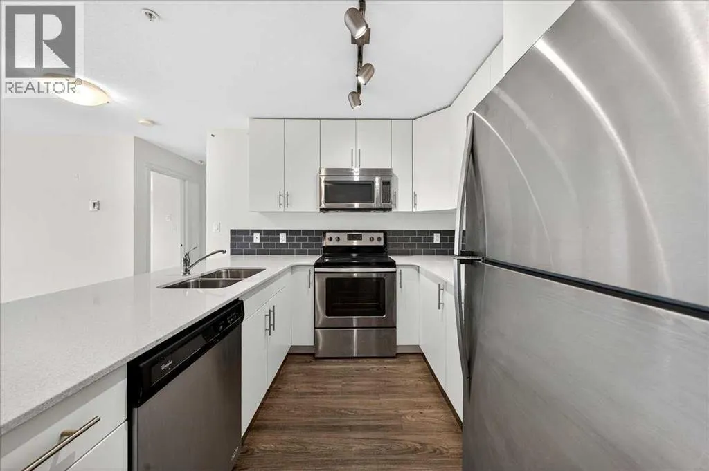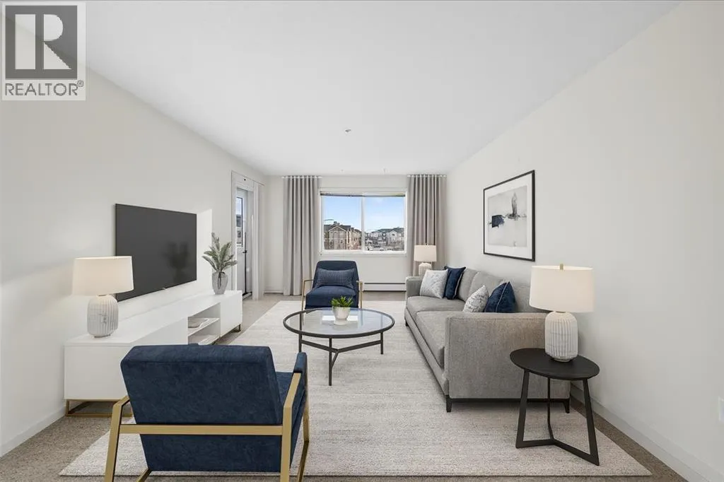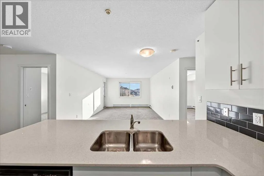 Welcome home to this inviting 2 bedroom plus den, 1 bath, 3rd floor condo in Skyview! This amazing condo features quartz countertops, stainless steel appliances, and an open layout filled with ample amounts of natural light from its large south facing windows. The home offers a comfortable blend of modern finishes and everyday practicality, making it an excellent choice for first time home buyers, investors, and downsizers alike! Ideally located near grocery stores, transit, and key amenities as well as just minutes from Stoney Trail and the Calgary International Airport this unit provides exceptional convenience for everyone. You will also enjoy a titled underground parking stall, along with access to a private fitness center, recreation room, a private dog run and a community garden where you can grow your own fruits and vegetables. Pets are permitted with certain size restrictions. A bright and welcoming condo in a growing community, ready to move in and enjoy. Book your showing today! (id:27476)