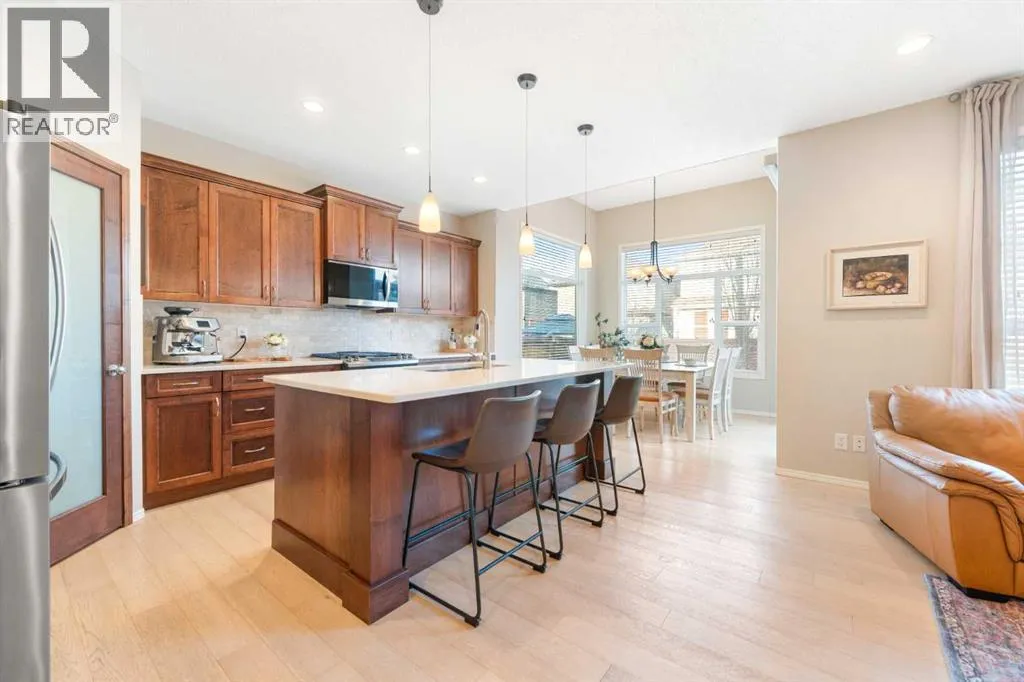 WOW! Check out your new home in the heart of Auburn Bay and you will be just a few minute drive to the LAKE, there are also numerous schools, parks, playgrounds, walking paths and ponds close by as well as the Hospital, YMCA, off leash dog park, so many shops, restaurants, bars and shopping right at your doorstep! As you enter the home you are greeted by beautiful light hardwood flooring throughout the main floor, a good sized main floor office that is perfect for the stay at home professional! The main living area is amazing with a gorgeous kitchen as the focal point of the main floor and features stainless steel appliances, gas stove with a double oven, beautiful newer quartz countertops, subway tiled backsplash, garburator, corner pantry and ample cabinet and counter space! The adjacent dining area is so bright and sunny and has vaulted ceilings and can easily accommodate an 8 person table! The main floor is completed with a cozy living room with a gas fireplace, a half bath and a mudroom with the upgraded washer and dryer! Upstairs has an awesome bonus room that you can enjoy the summer sunsets from on the balcony off of the front of the house, as you make your way down the hall the primary suite is set up perfectly with separate sinks for convenience with the soaker tub in the middle as well as a separate shower, a make up area and a walk in closet! There is also another full bathroom for the kids and 2 more bedrooms upstairs :) The basement is unfinished and has a perfect set up for future development (bedroom, bathroom and rec room) The back yard is a private and serene oasis that is private, offers numerous trees, a gas fire table to enjoy and a beautiful deck! If that isn't enough you will also appreciate the newer carpet throughout, newer fridge and dishwasher, new sinks in the bathrooms, updated hot water tank and the location is amazing! Come and have a look at your NEW HOME! (id:27476)