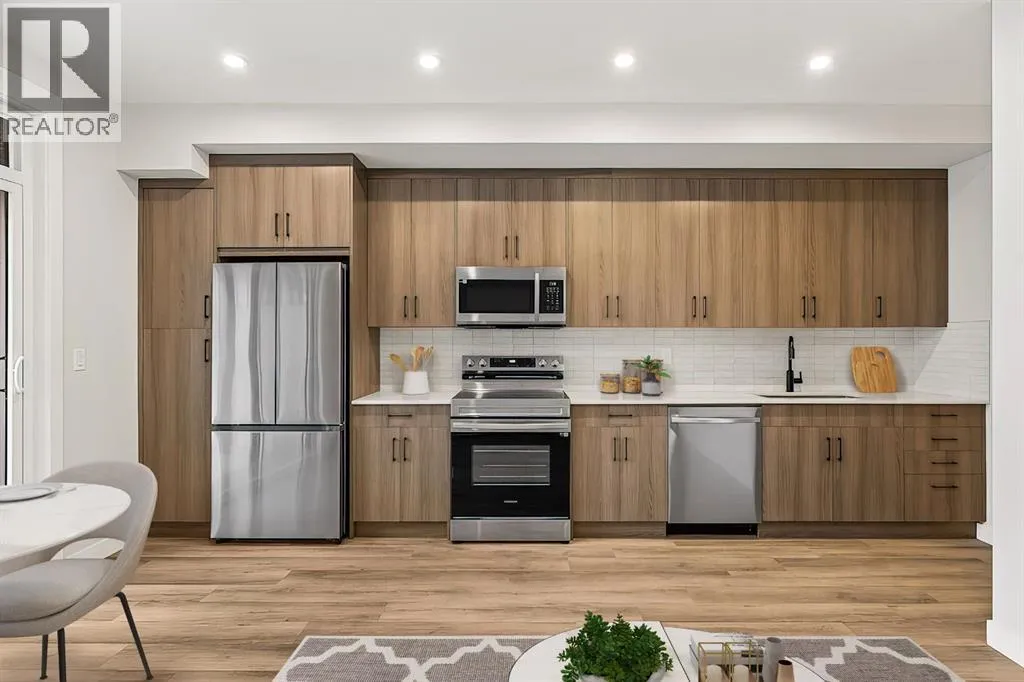 Where modern style meets everyday ease.Welcome to Unit 402 at 50 Sage Hill Walk NW, a top floor residence in a beautifully finished 2024 building designed for light filled living and effortless comfort. Step inside and the open layout instantly feels bright and uplifting as natural light moves freely through the space and highlights the clean contemporary finishes.The kitchen is sleek and polished with stainless steel appliances, streamlined cabinetry, and a built in dishwasher that keeps everything looking seamless and functional. Luxury flooring flows throughout and leads to your spacious fourth floor balcony, an elevated spot for slow mornings, fresh air breaks, or relaxed evenings above the neighbourhood.Comfort is woven into the details with air conditioning, high quality finishes, a heat recovery ventilation system for enhanced indoor air quality, in suite laundry, a titled parking stall, and underground storage that adds real everyday practicality.Outside your door, Sage Hill blends city convenience with natural surroundings. Grocery stores, boutique cafés, local restaurants, fitness studios, and major shopping centres are all minutes away. Scenic parks, walking paths, and bike routes connect you to green space without leaving the community, while Stoney Trail, Shaganappi Trail, transit routes, and YYC International Airport are all close by for easy commuting and travel.Fresh. Connected. Effortless. A home that feels as good as its location. (id:27476)