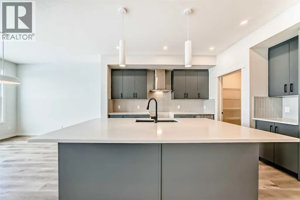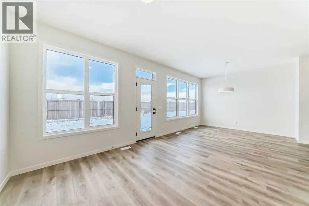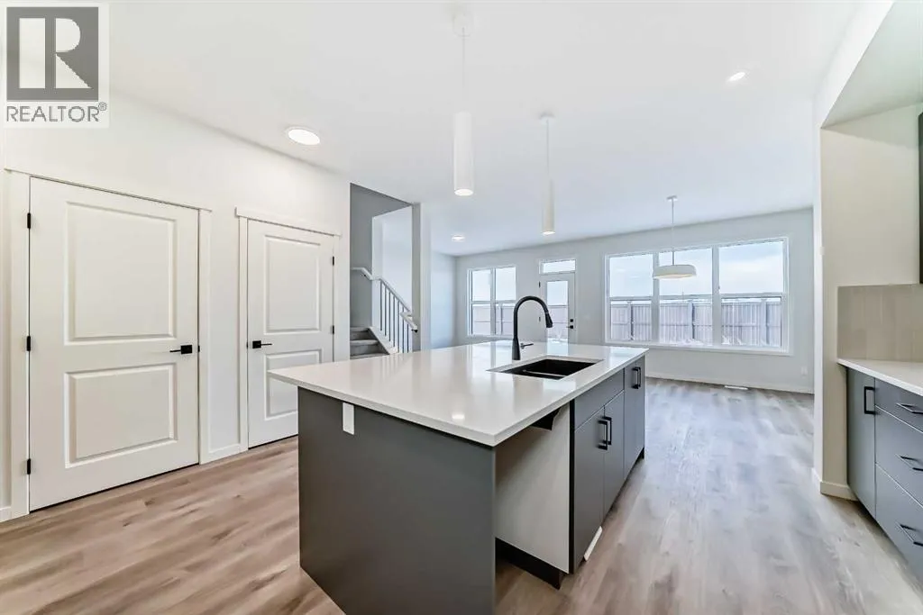 Welcome to The "Luna" a beautifully designed home in the vibrant, garden-to-table community of Rangeviewâwhere modern style, smart function, and everyday comfort come together in a layout that simply lives well. From the moment you step inside, the home feels bright and open thanks to wall-to-wall windows and an airy main floor design thatâs ideal for both busy weekdays and easy entertaining. At the front of the home, an open flex room adds incredible versatility, perfect as a home office, reading nook, homework zone, or a kidsâ playroom, giving you a dedicated space that can evolve with your lifestyle. The heart of the home is the upgraded kitchen, designed to look sharp and work hard. Youâll love the modern grey flat panel cabinetry raised to the bulkhead, paired with crisp white quartz countertops and sleek black hardware for a clean, contemporary finish. The upgraded kitchen layout offers improved flow and function, while a statement chimney hood fan is framed by a modern vertically laid, stacked subway tile backsplash that adds just the right amount of texture and style. Light wood grain vinyl plank flooring runs throughout the main level, bringing warmth and contrast to the modern palette and tying the space together beautifully. The open-concept design keeps the kitchen connected to the dining area and living room so you can cook, host, and relax without missing a beatâmade even better by all the natural light pouring in throughout the day. Upstairs is where this floor plan really shines, offering the kind of space and separation families appreciate. A large central entertainment room/bonus room becomes the natural hub of the upper level, ideal for movie nights, a gaming setup, a play area, or a cozy lounge for teens and guests. Itâs the perfect âsecond living roomâ that keeps the main floor tidy and gives everyone a place to spread out. The primary suite feels like a true retreat, offering plenty of space for a king sized bed and furniture, along with a gene rous walk in closet and a spa inspired ensuite where you can unwind at the end of the day. Two additional bedrooms are thoughtfully positioned to offer comfort and privacy, each with excellent natural light and enough room for growing kids, guests, or a dedicated second office. A well appointed secondary bathroom completes the upper level, keeping daily routines easy and organized. Downstairs, the home continues to deliver long-term value with a separate entrance and 9â foundation height, offering exciting flexibility for the future, whether your vision includes additional living space, extended family options, or potential for a future basement suite (subject to approval and permitting by the city/municipality). Outside, the west-facing backyard is a standout feature, perfect for soaking up afternoon sun, enjoying evening BBQs, or creating a patio and outdoor living space youâll actually use all summer long. Set in Rangeview, a community known for its welcoming vibe! (id:27476)