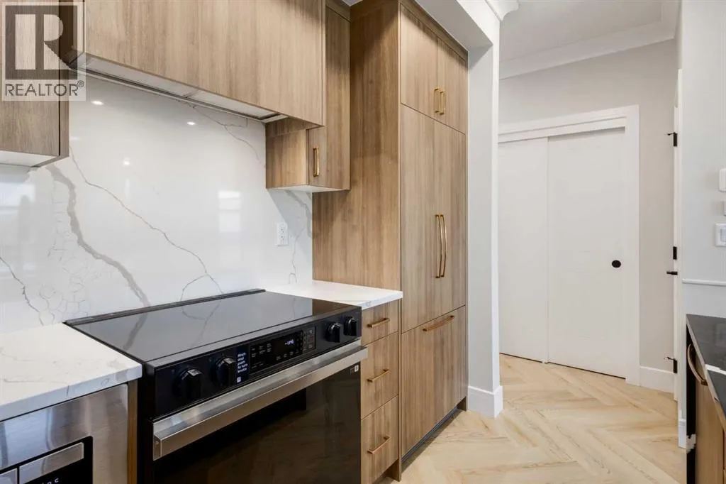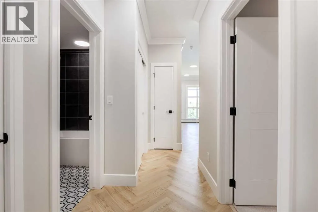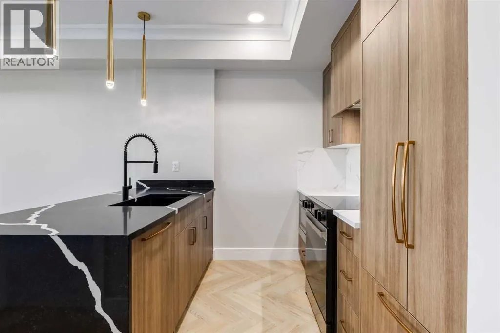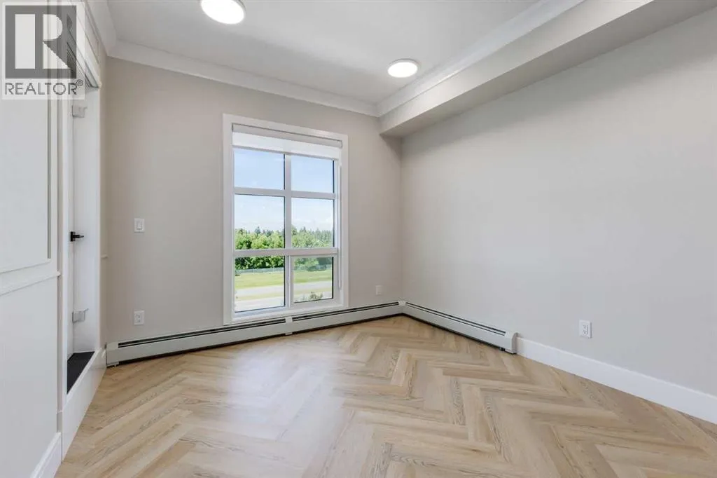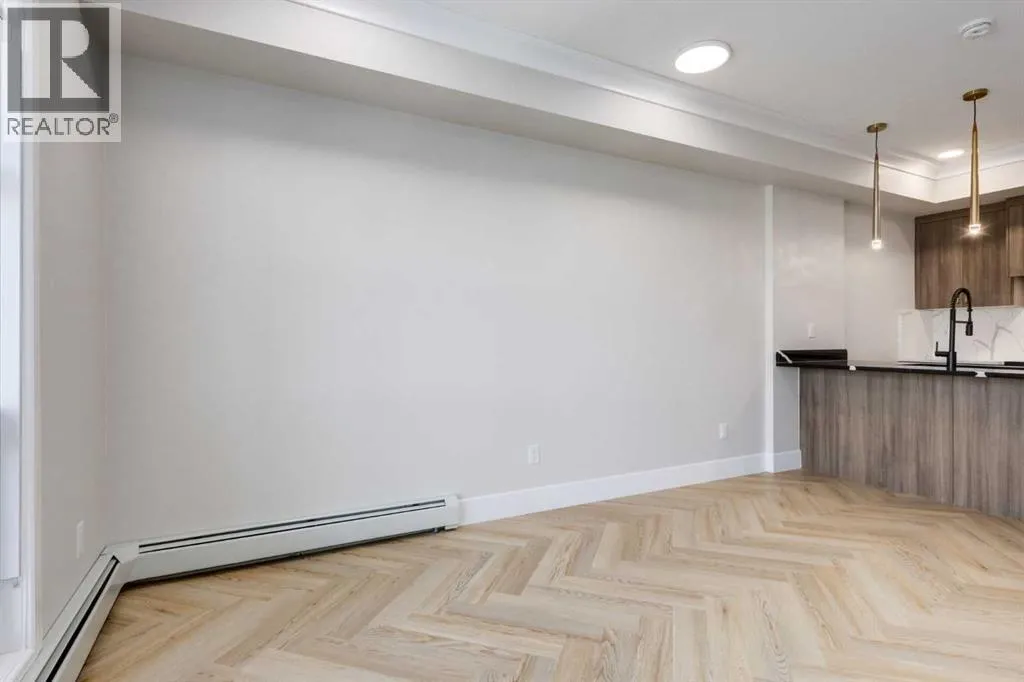 Welcome to the “Verde” floorplan by Rohit Homes—a thoughtfully designed 1-bedroom + den, 1-bathroom residence that perfectly balances comfort and style. Ideally situated on the 5th floor of Quesnay at Currie Barracks, this elevated home offers enhanced privacy along with beautiful natural light and west-facing views.Finished in the timeless Neoclassical Revival color palette, the interior showcases warm, refined tones and elegant detailing that create a sophisticated yet inviting atmosphere. The Verde floorplan is designed with both aesthetics and practicality in mind, featuring 9’ ceilings, quartz countertops with a waterfall edge, a coordinating quartz backsplash, full-height cabinetry, stainless steel appliances, designer light fixtures, and window coverings.The open-concept layout seamlessly connects the kitchen, dining, and living areas, making the space feel bright and expansive—perfect for entertaining or quiet evenings at home. The primary bedroom serves as a relaxing retreat, while the versatile den provides flexibility for a home office, study space, or additional storage. The bathroom offers a spa-inspired feel with fully tiled walls, polished finishes, and a tub/shower combination.Step outside onto your private west-facing balcony to enjoy sunset views and fresh air from your 5th-floor vantage point.This pet-friendly and AIRBNB-friendly building includes titled heated underground parking and ample visitor parking. Located just minutes from downtown, Mount Royal University, and the vibrant amenities of 17th Ave and Marda Loop, the Verde floorplan offers exceptional urban convenience paired with refined design.Don’t miss your opportunity to own this beautifully finished 5th-floor home.**Photos are taken from existing buildings of the same models and are not of the exact unit.** (id:27476)