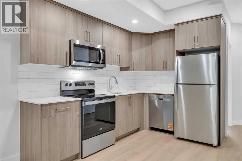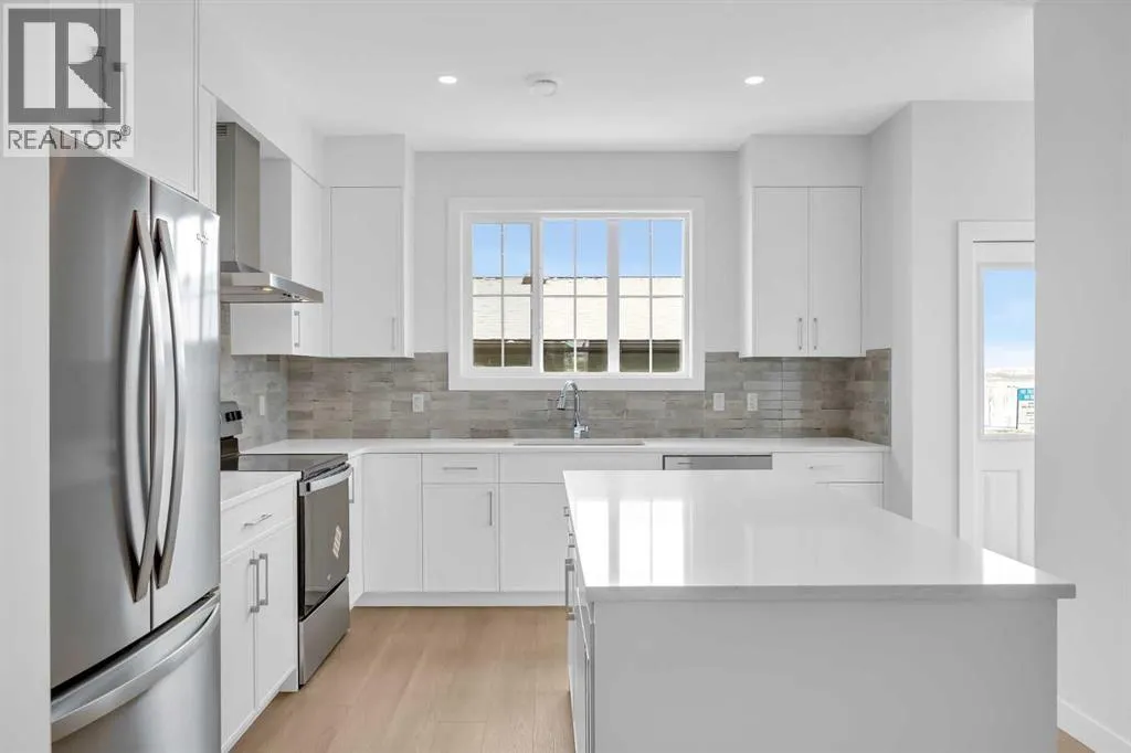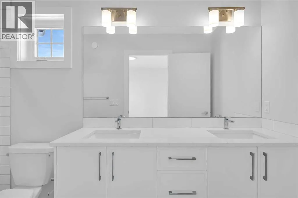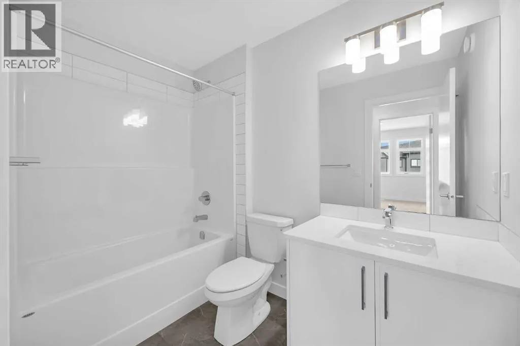 Welcome to The Edward by Partners, a brand new quick possession home in Logan Landing offering a rare fully developed two bedroom, two bathroom legal basement suite with a private side entrance. Positioned on a premium corner lot and complete with a 20â x 21â double detached garage, this home delivers exceptional flexibility for homeowners and investors alike. A rare main floor bedroom and full bathroom add immediate versatility, ideal for guests, a private office, or added living flexibility. Nine foot ceilings on both the main level and basement enhance the sense of space throughout. The kitchen is thoughtfully designed with full height cabinetry, upgraded quartz countertops with undermount sinks, under cabinet lighting, a chimney hood fan with built in microwave, and a Whirlpool stainless steel appliance package. The open concept layout connects seamlessly to the dining and living areas, creating a bright and functional environment for everyday living. Upstairs, the primary suite offers a walk in closet and a well designed ensuite with additional vanity storage, quartz surfaces, and a walk in shower. Two additional bedrooms, a central bonus room, and upper level laundry with washer and dryer included complete a layout that adapts easily to changing needs. The legal basement suite truly sets this home apart. Featuring 775 square feet of developed living space with two bedrooms, two full bathrooms, nine foot ceilings, walk in showers, and its own kitchen and living space, it functions as a fully independent residence. Whether used for consistent rental income, extended family, or mortgage support, this is a rare and highly desirable configuration. The double detached garage includes a 60 AMP subpanel and 50 AMP EV rough in, offering future ready convenience for electric vehicle charging and additional power capacity. Additional features include air conditioning rough in, knockdown ceilings, and quality finishes throughout. Located in Logan Landing with access to pa rks, pathways, and the Bow River, this property offers a strong balance of lifestyle, long term value, and income potential. (id:27476)