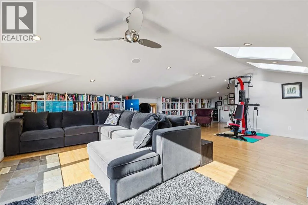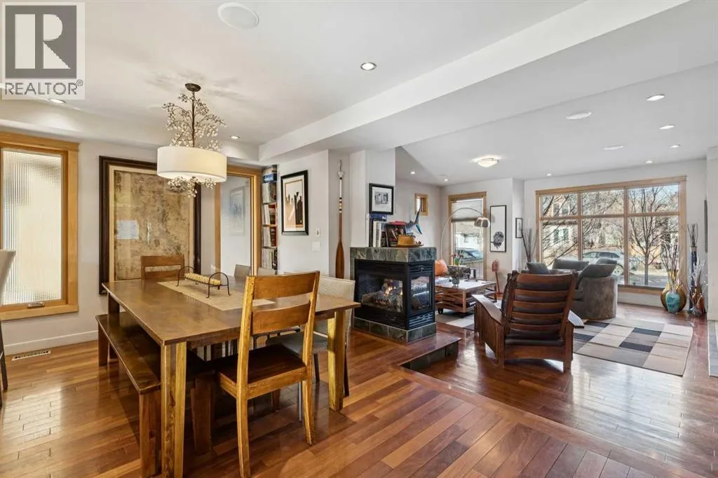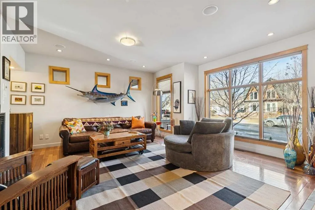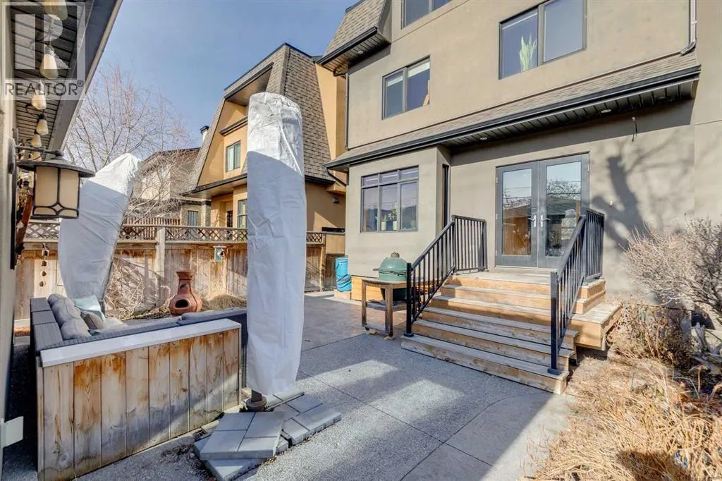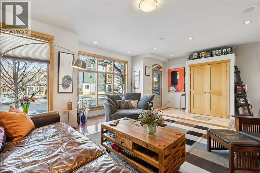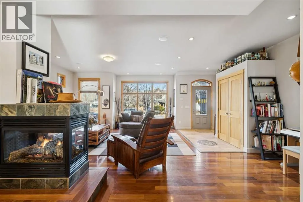 Nestled on a quiet, tree-lined cul-de-sac in sought-after West Hillhurst, this custom-built (2008) detached home offers over 3,700 sq ft of thoughtfully designed living space. Ideally located near schools, Kensington, shopping, the Bow River pathway system, downtown, and major hospitals, the setting seamlessly combines inner-city convenience with the tranquility of a low-traffic street. The bright, open main level is designed for both everyday living and entertaining. A spacious front living room is elegantly separated from the dining area by a three-sided gas fireplace. The expansive kitchen features premium appliances, extensive cabinetry, and a large, functional island. Just off the kitchen, a generous mudroom and private powder room provide practical separation for busy family life. Upstairs, the second level offers two well-proportioned bedrooms with ample closet space and a full four-piece bath. The primary retreat is a true sanctuary, complete with vaulted ceilings, its own gas fireplace, custom built-in cabinetry, a large walk-in closet, and a beautifully appointed ensuite featuring a tiled walk-in shower, fully jetted tub, and double vanity. A full laundry room completes this level. The third floor presents a versatile loft with skylights, south-facing windows, and a full four-piece bathroom with additional storage, creating a warm and inviting space ideal for entertaining, a home office, or a guest suite. The fully developed basement includes a flexible bedroom or exercise room with a walk-in closet, along with a spacious recreation room featuring a wet barâperfect for family gatherings or movie nights. Additional features include hardwood and tile flooring throughout (no carpet), multi-zone built-in sound wiring, central air-conditioning, low-maintenance landscaping, a sunny south-facing backyard with stamped concrete patio, and a double detached garage. Solidly constructed and meticulously maintained, this timeless home was designed to endure for gene rations. (id:27476)