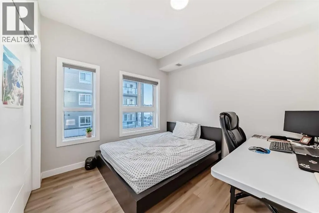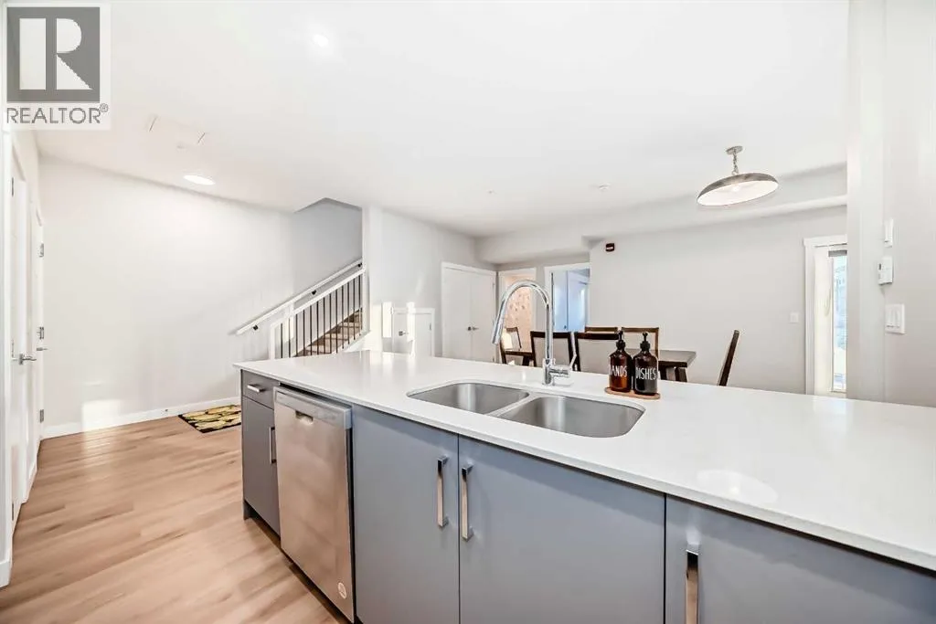 | 3 BEDS | 2 BATHS | END UNIT | BALCONY + WRAP AROUND ROOFTOP PATIO | UNDERGROUND PARKING | Welcome to this bright and open concept end unit townhome located in the community of Skyview. The main level features a modern kitchen complete with stainless steel appliances, quartz countertops, and a matching island that flows seamlessly into the dining and living areas. A door leads to the first balcony, perfect for enjoying your morning coffee or relaxing outdoors. This level also offers two good-sized bedrooms and a full 4-piece bathroom. Upstairs, a spacious bonus room provides additional living space and opens onto the large wrap around rooftop patio, ideal for entertaining or enjoying the outdoors. With no neighbours above, the primary bedroom offers added privacy and features its own 3-piece ensuite, a generous closet, and direct access to a secondary private entrance to the unit, offering additional convenience and flexibility. Enjoy peace of mind with condo fees that include heat, water, snow removal, and more. The home also comes with a heated underground parking stall, ample visitor parking, and dedicated bicycle storage. Conveniently located close to schools, shopping, Costco, the airport, and major roadways for easy commute. Do not miss this opportunity. Call your favourite agent to book a showing today. (id:27476)
